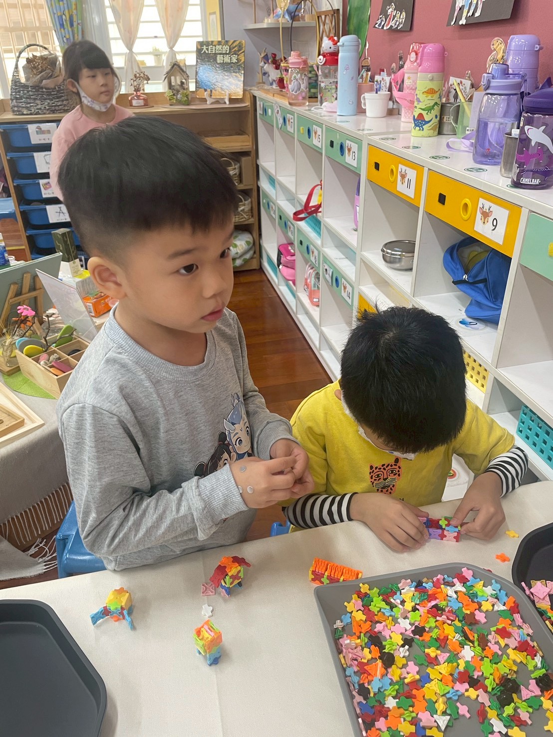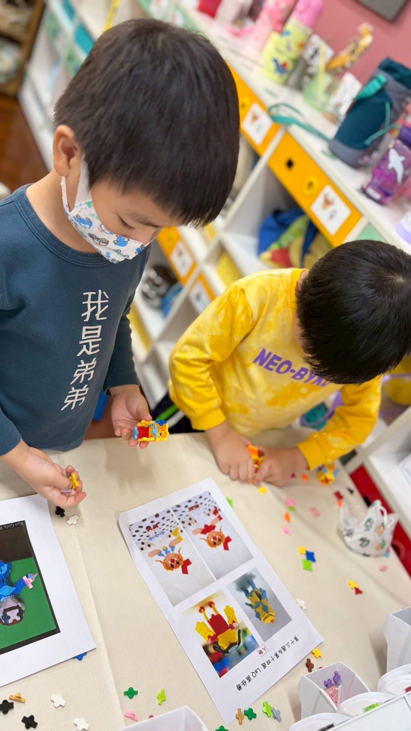 11/25 今天作品分享時間,請學習區的小高手們分享看「步驟圖」與操作的過程,透過口說傳授學習的歷程。孩子們可以透過老師提供的各種鷹架~仿作圖、步驟圖、說明書、挑戰卡…,自學與共學成為學習的主體,更能激發主動學習的動機與成就感喔!