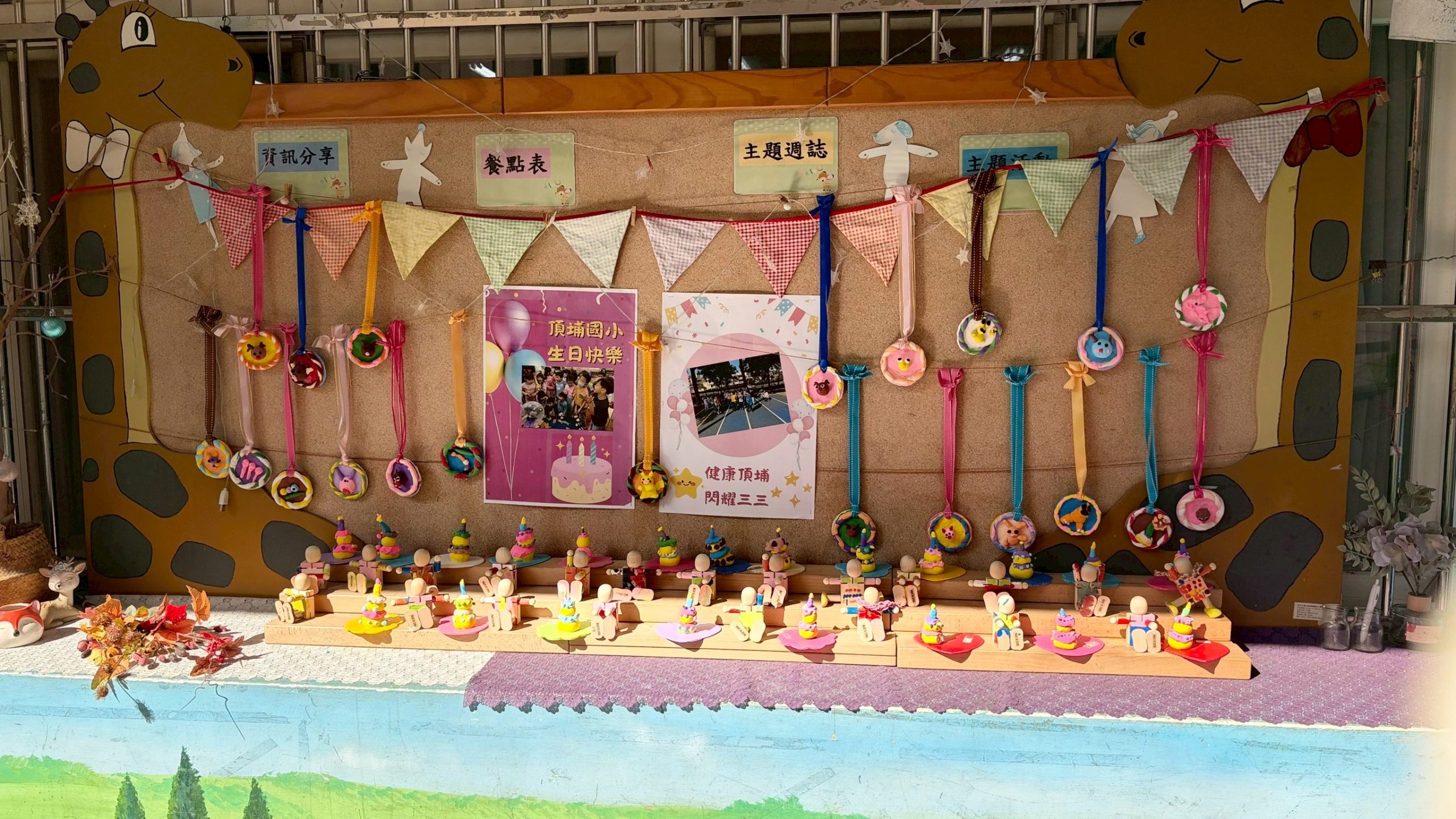 11/28 今天和孩子們分享花鹿班校慶海報~<頂埔國小,生日快樂!>和<健康頂埔,閃耀三三>,用慶生與跑步的照片代表校慶意象。窗台前的校慶主題作品「小小生日蛋糕」、「小花鹿獎牌」和「運動小木頭人」,孩子們能參與佈置並喜愛自己的作品。
