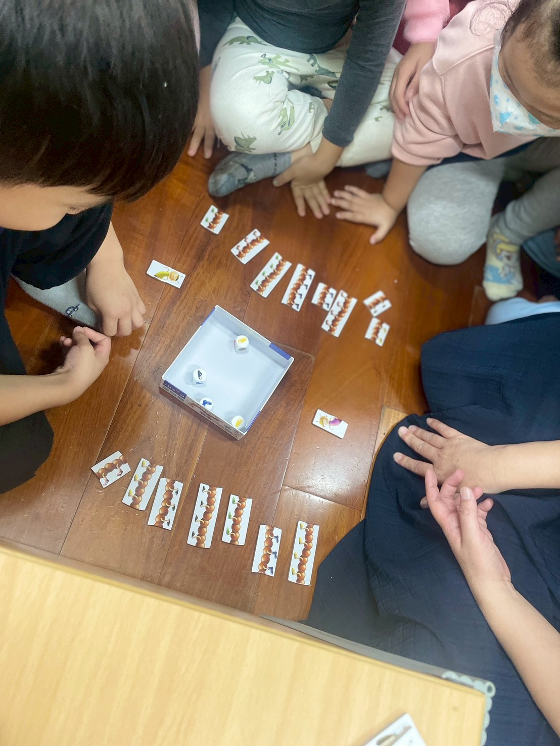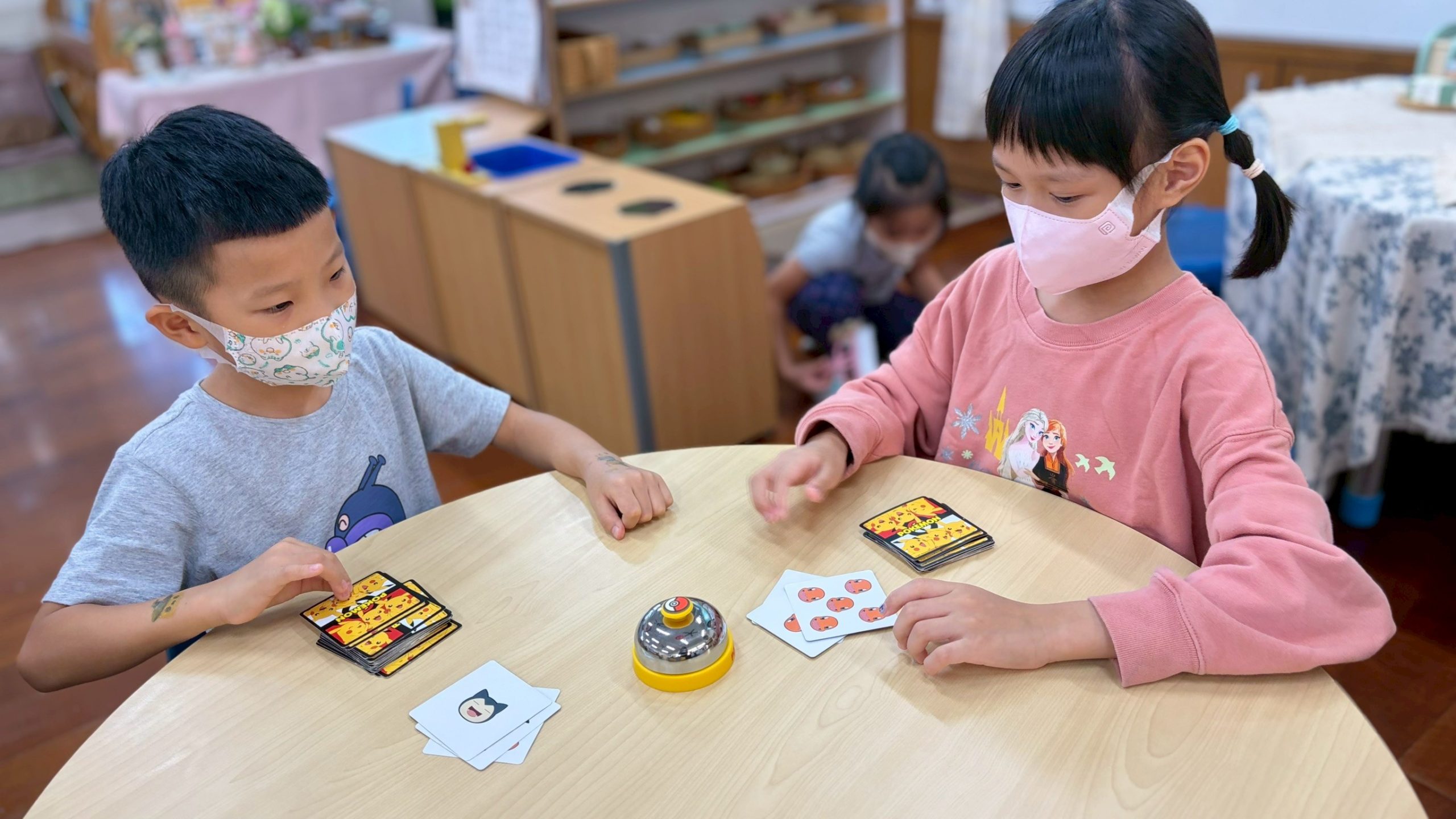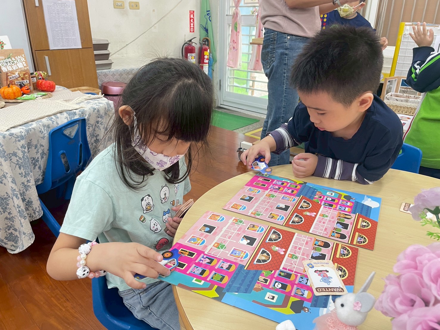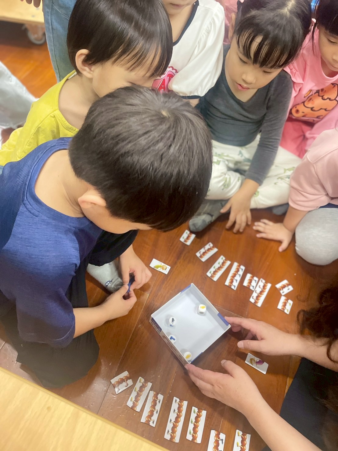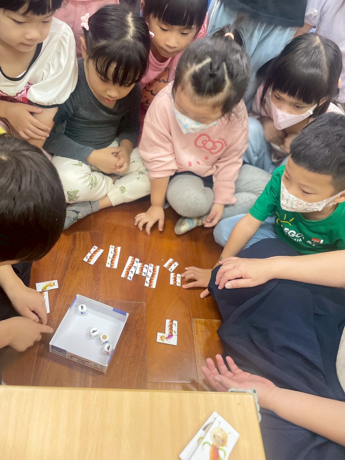 11/5 今天學習區任務~桌遊區,介紹眼明手快心臟病(中班)、寶可夢心臟病(大班)和蜈蚣曬鞋三款遊戲,在共玩中學習規則,並增進數學概念與反應力,也要和棋藝區一樣培養「勝不驕、敗不餒」的精神喔!