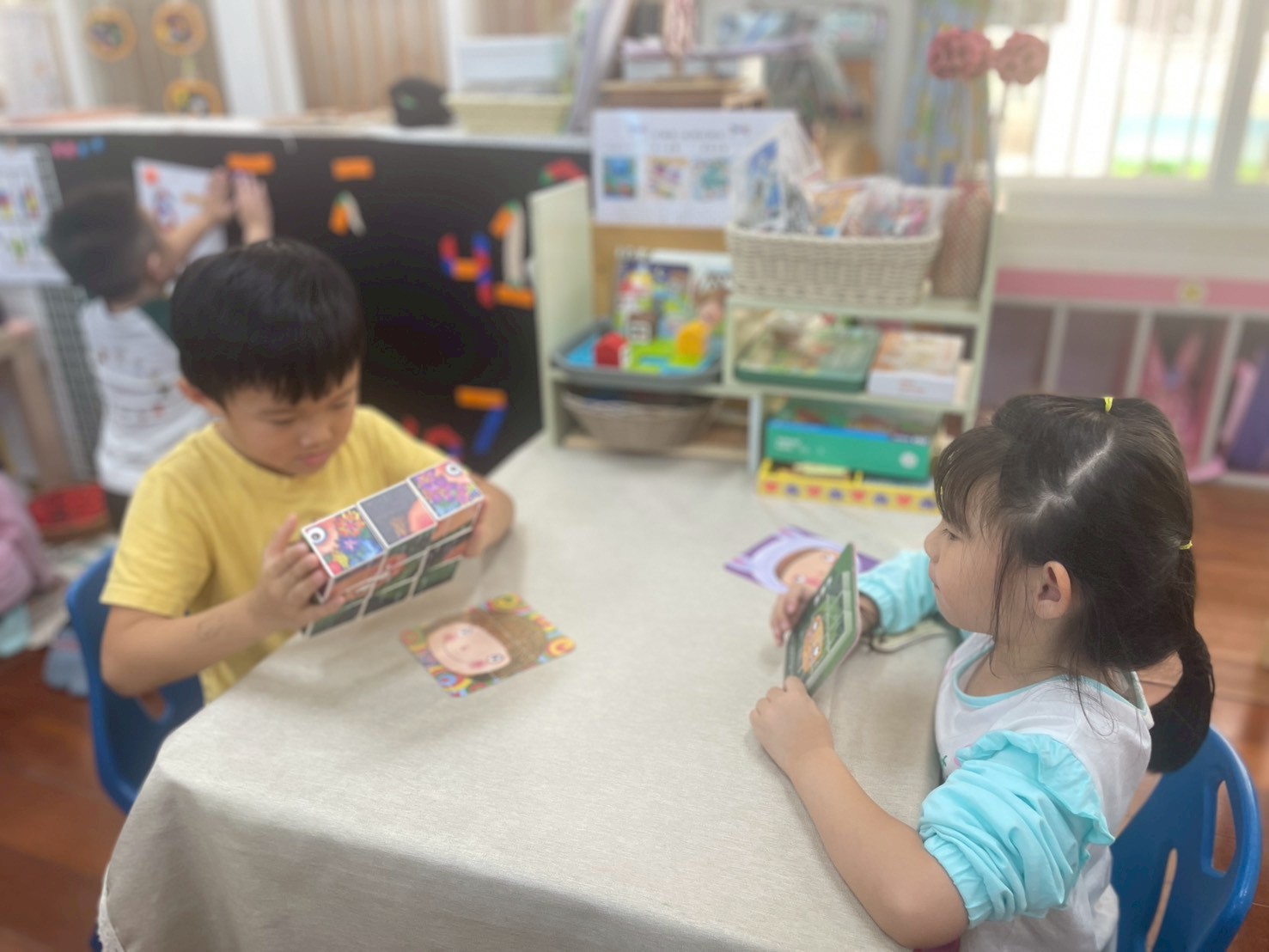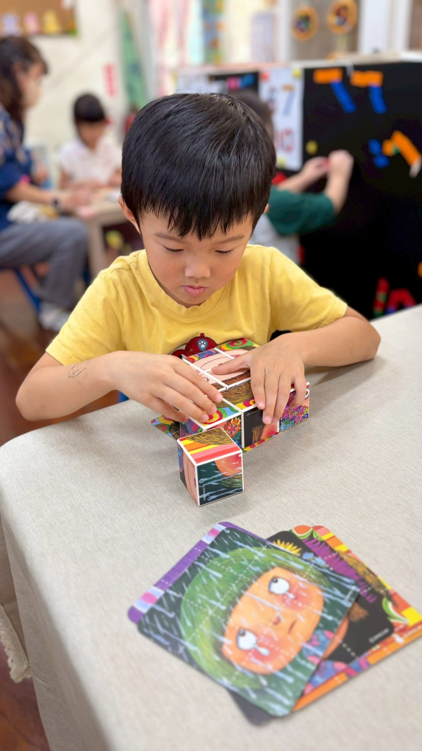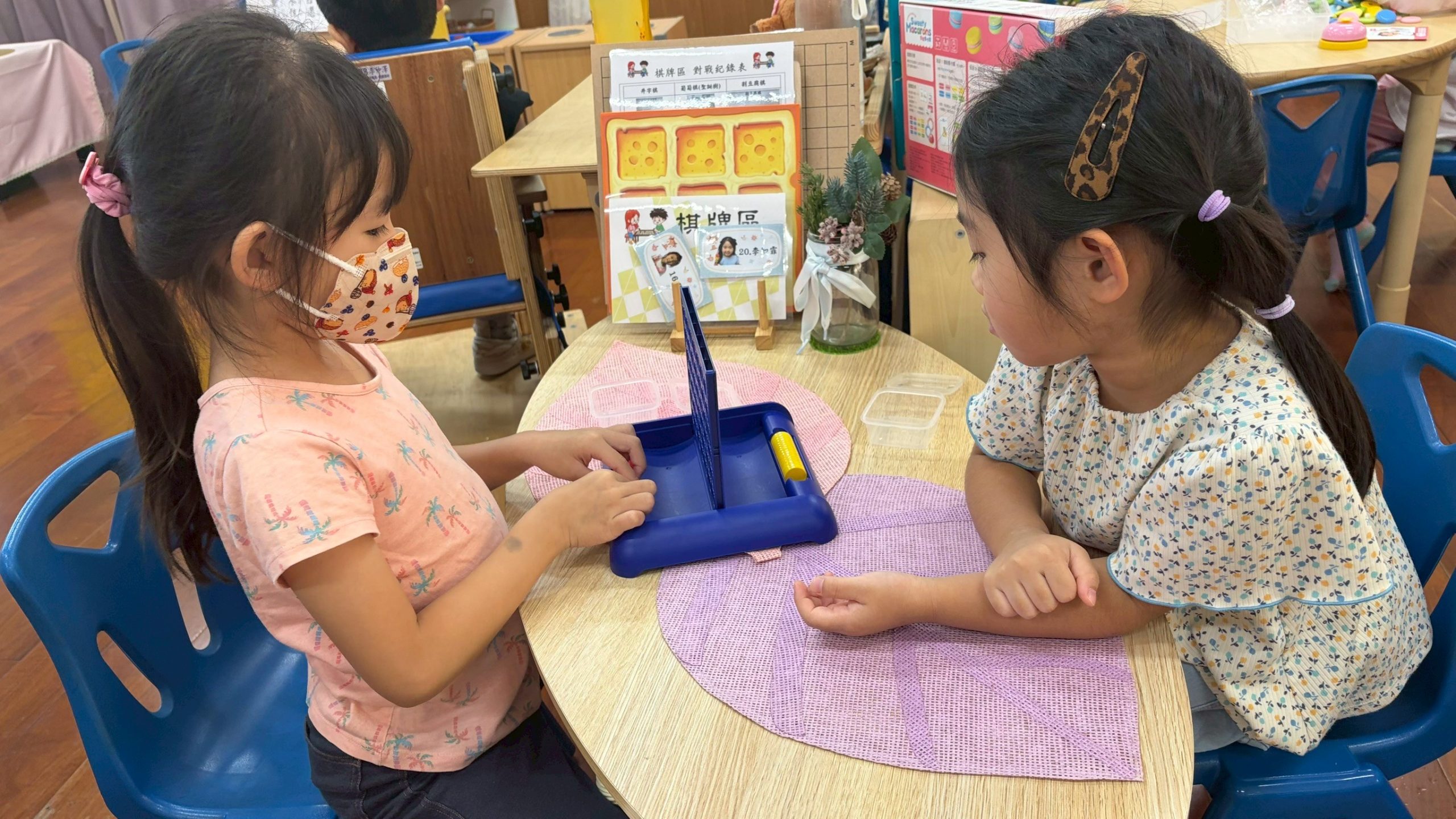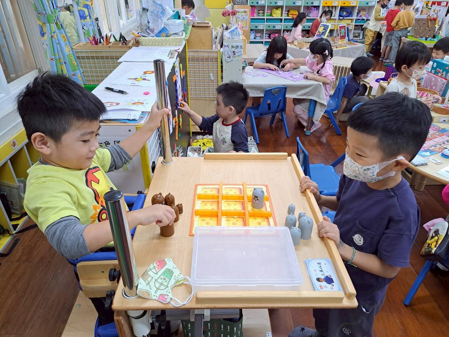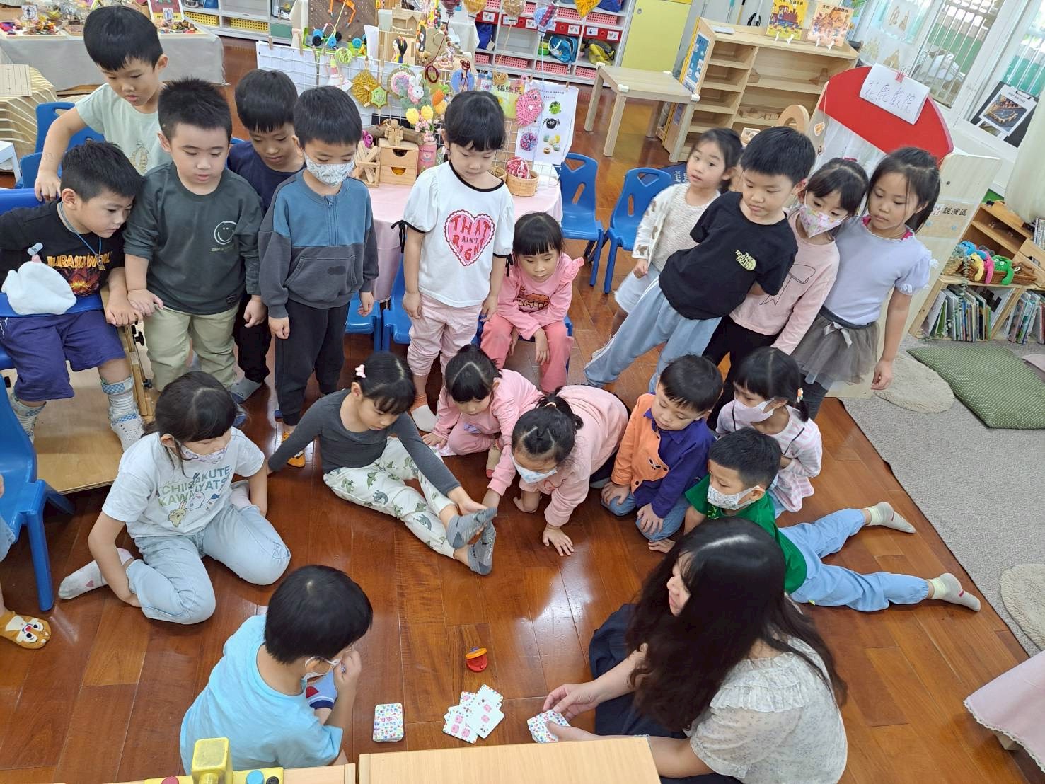 11/5 今天學習區任務~桌遊區,介紹眼明手快心臟病(中班)、寶可夢心臟病(大班)和蜈蚣曬鞋三款遊戲,在共玩中學習規則,並增進數學概念與反應力,也要和棋藝區一樣培養「勝不驕、敗不餒」的精神喔!