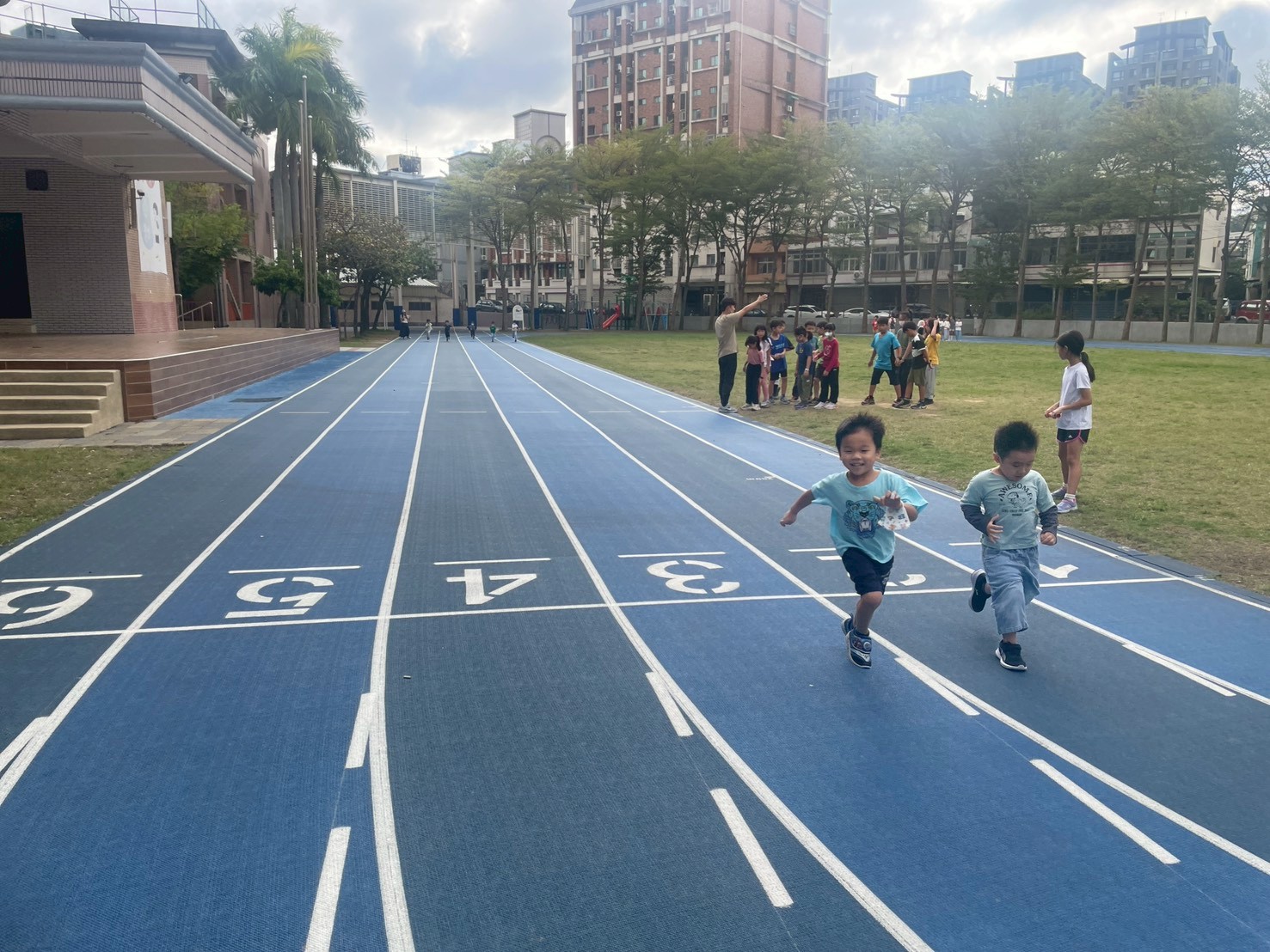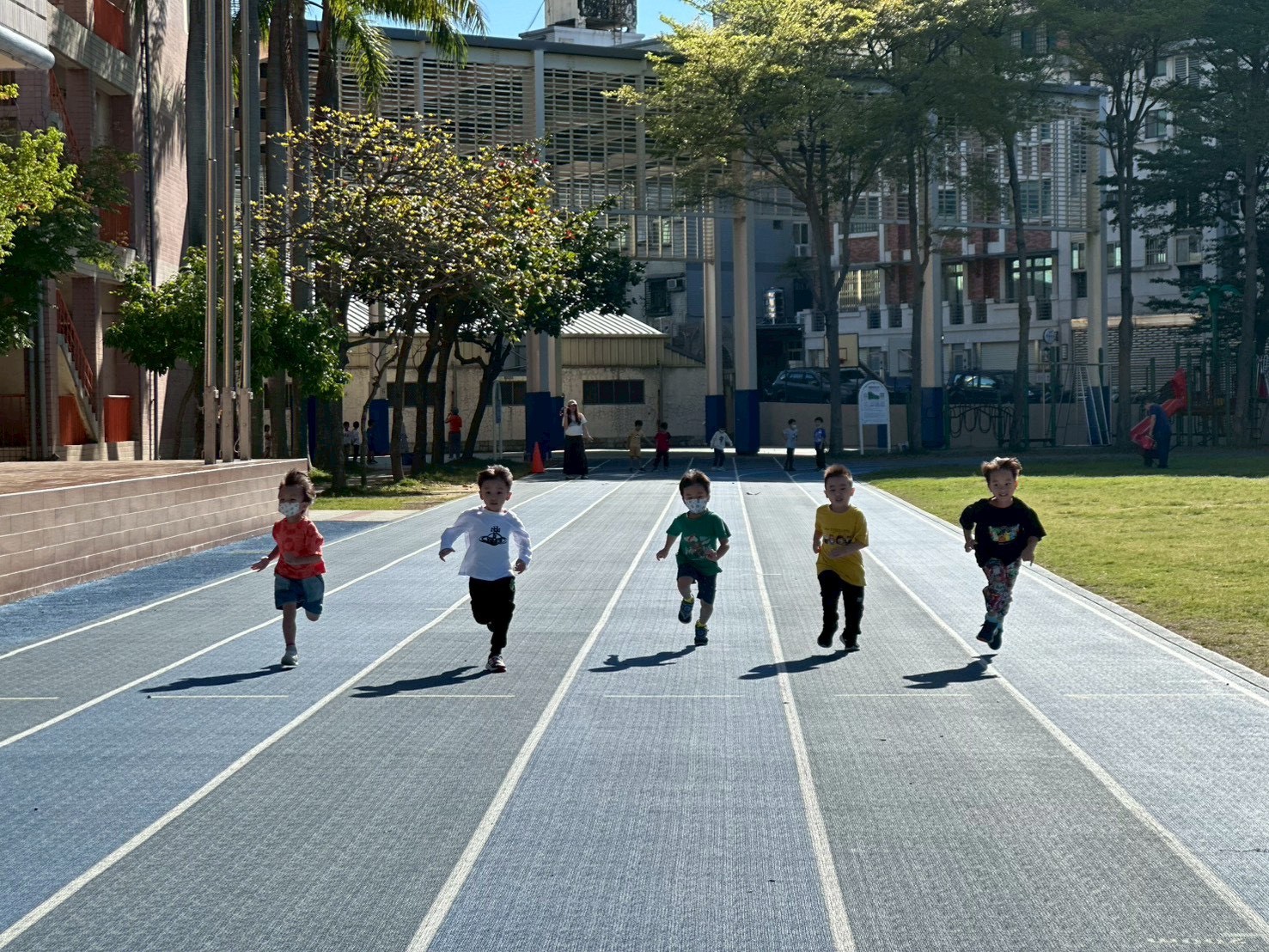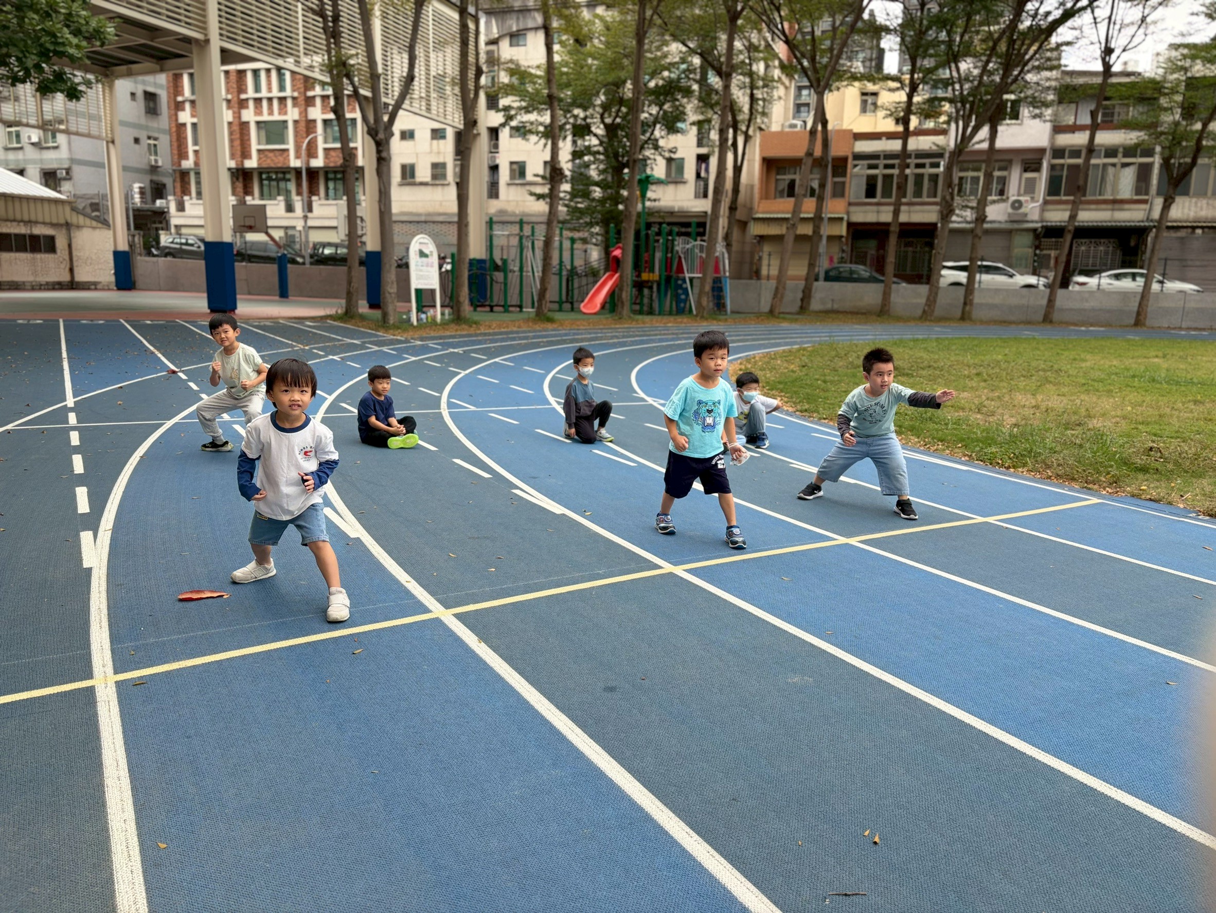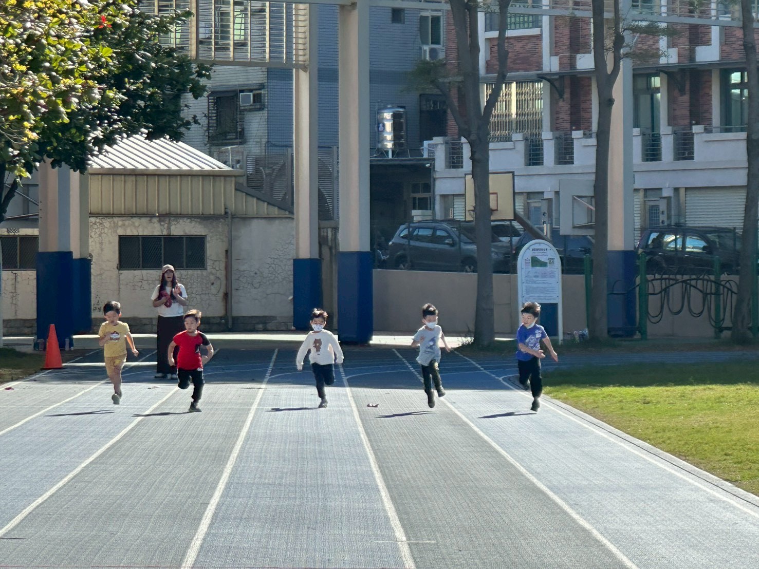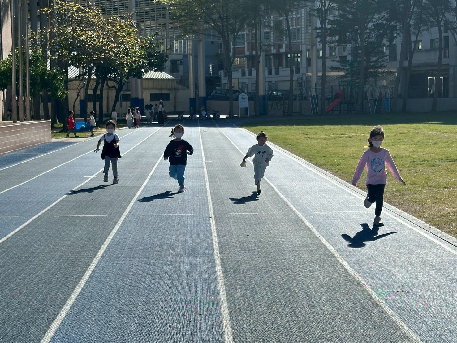 11/6 為了迎接本月的重要活動~校慶運動會,孩子們開始分組練習60 公尺賽跑,跑步前的安全約定是:鞋袋要綁好、要跑在自己的跑道、認真向前跑。暖暖的秋陽下,紅通通的小臉兒,一起蓄勢待發~。