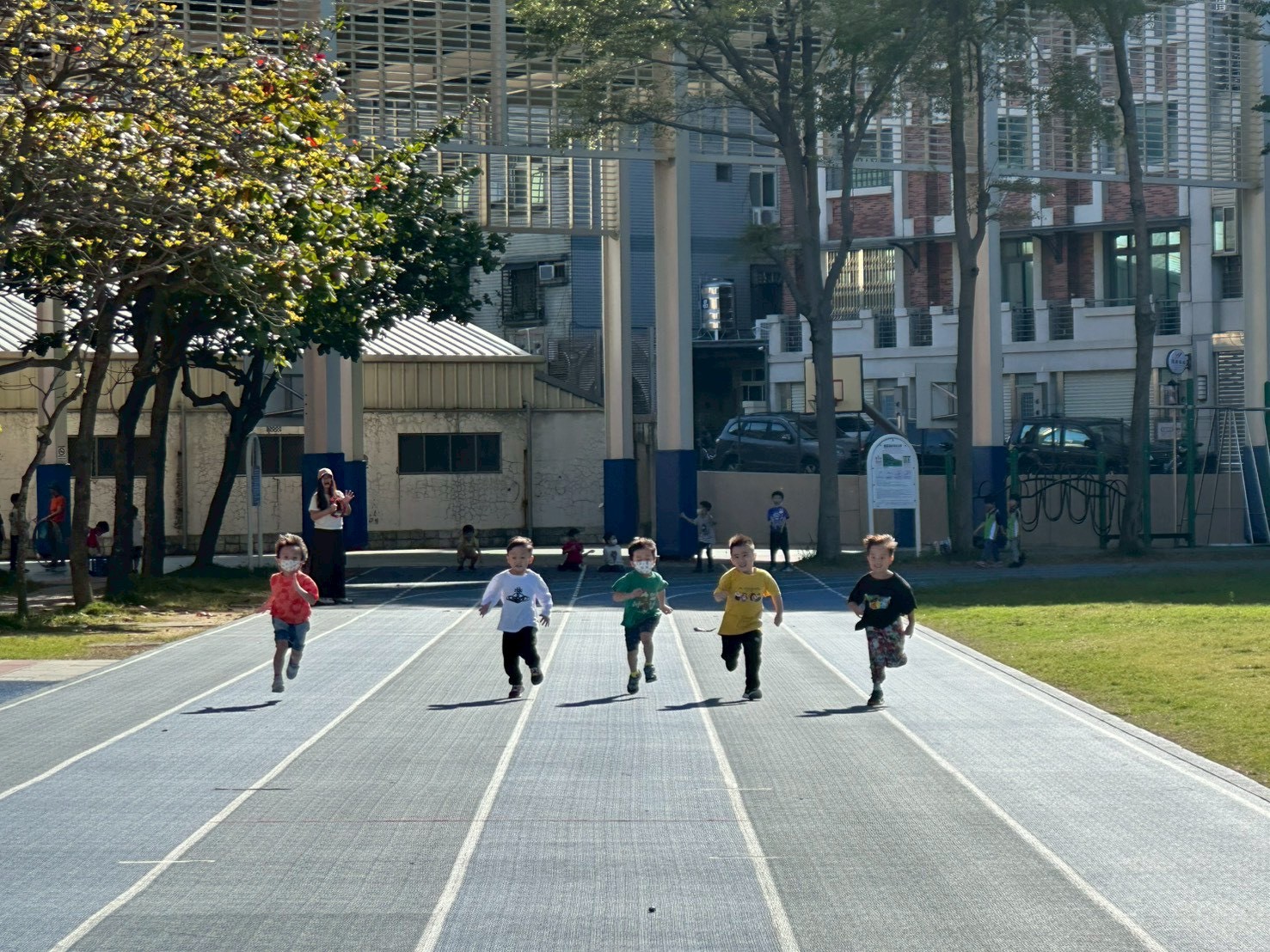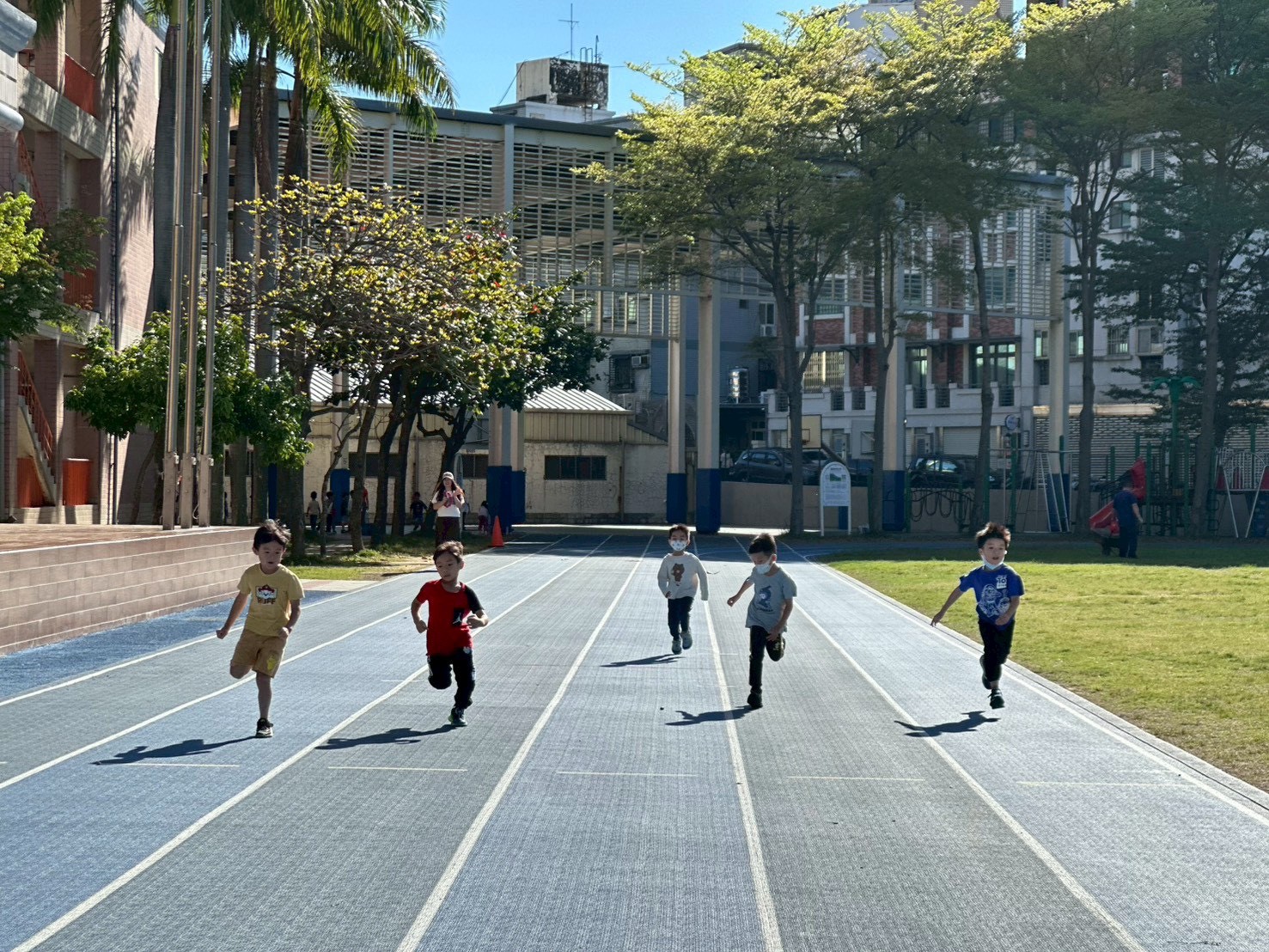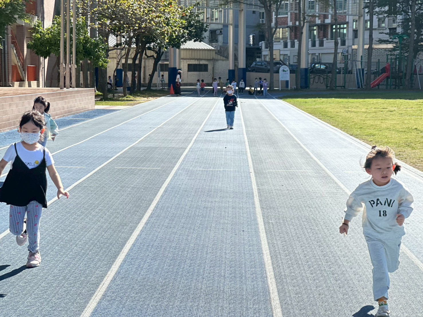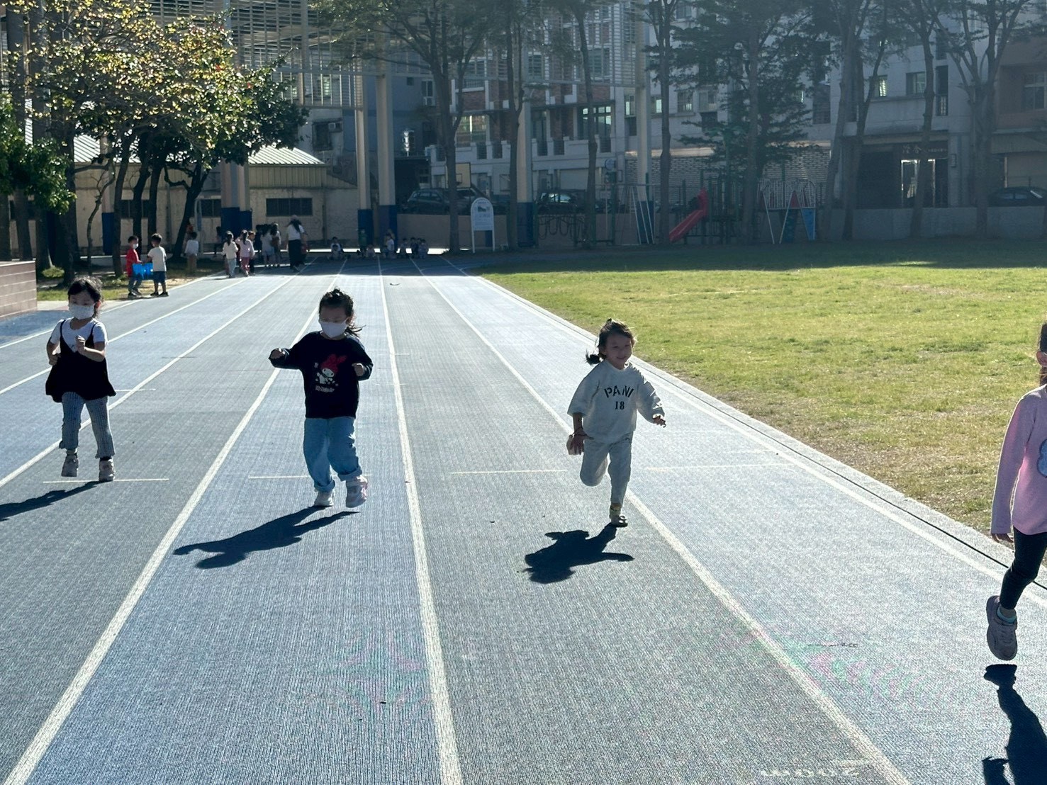11/6 為了迎接本月的重要活動~校慶運動會,孩子們開始分組練習60 公尺賽跑,跑步前的安全約定是:鞋袋要綁好、要跑在自己的跑道、認真向前跑。暖暖的秋陽下,紅通通的小臉兒,一起蓄勢待發~。