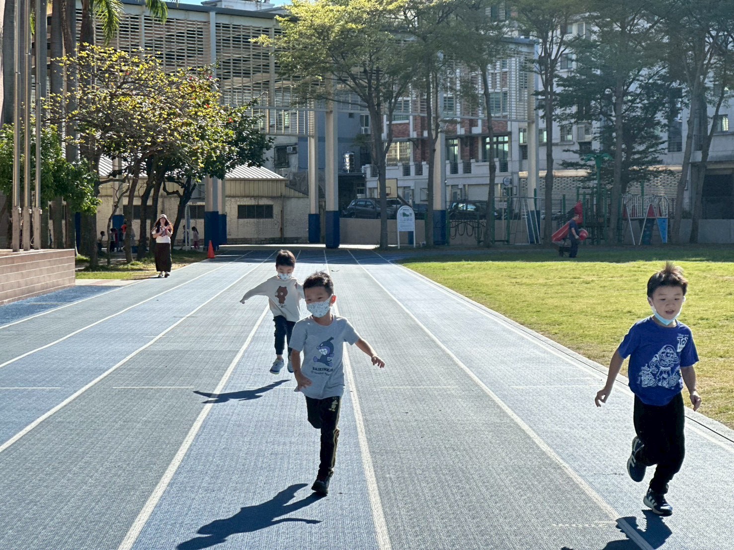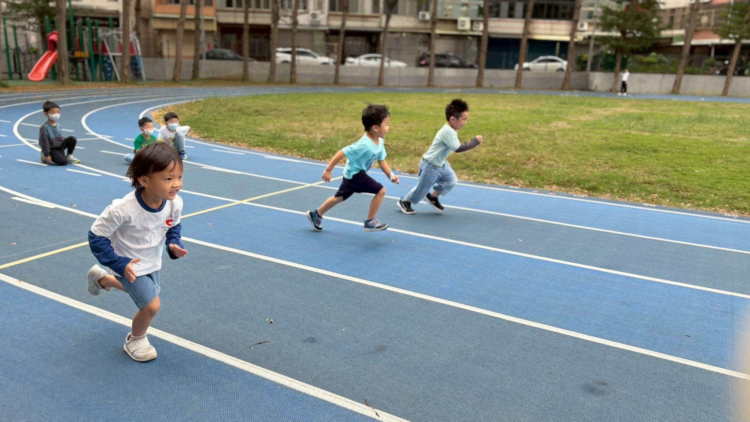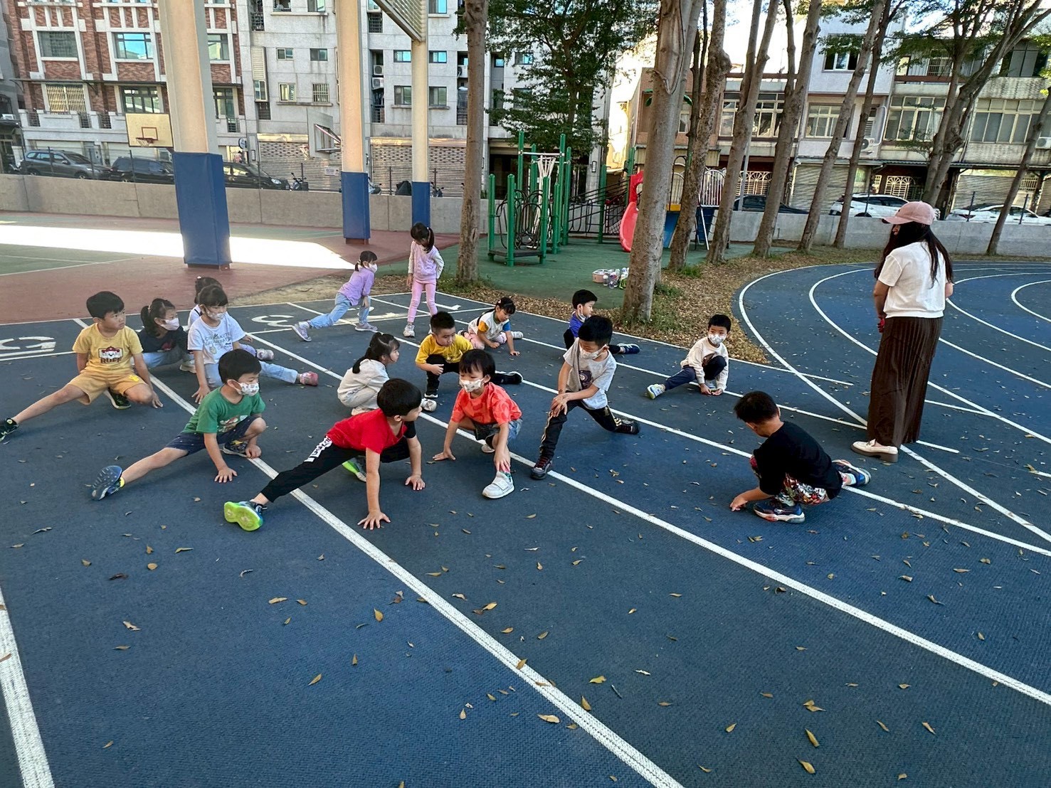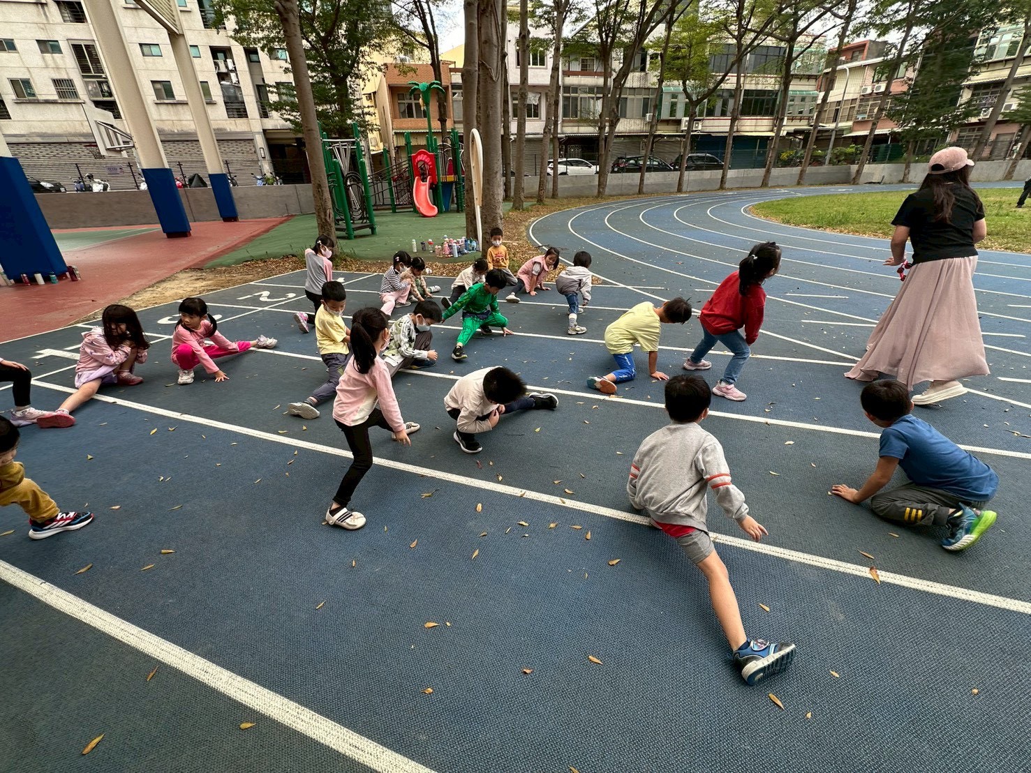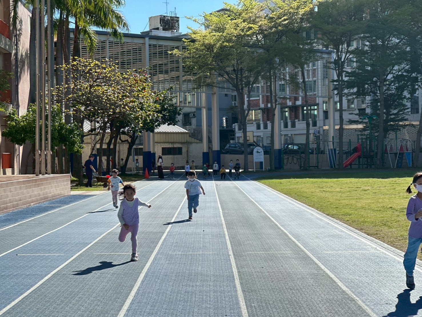 11/6 為了迎接本月的重要活動~校慶運動會,孩子們開始分組練習60 公尺賽跑,跑步前的安全約定是:鞋袋要綁好、要跑在自己的跑道、認真向前跑。暖暖的秋陽下,紅通通的小臉兒,一起蓄勢待發~。