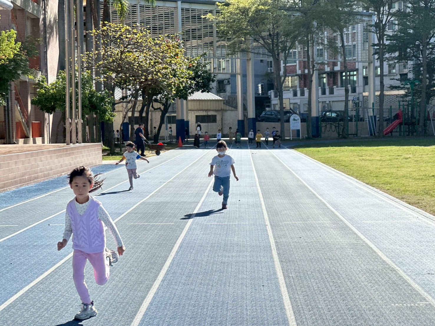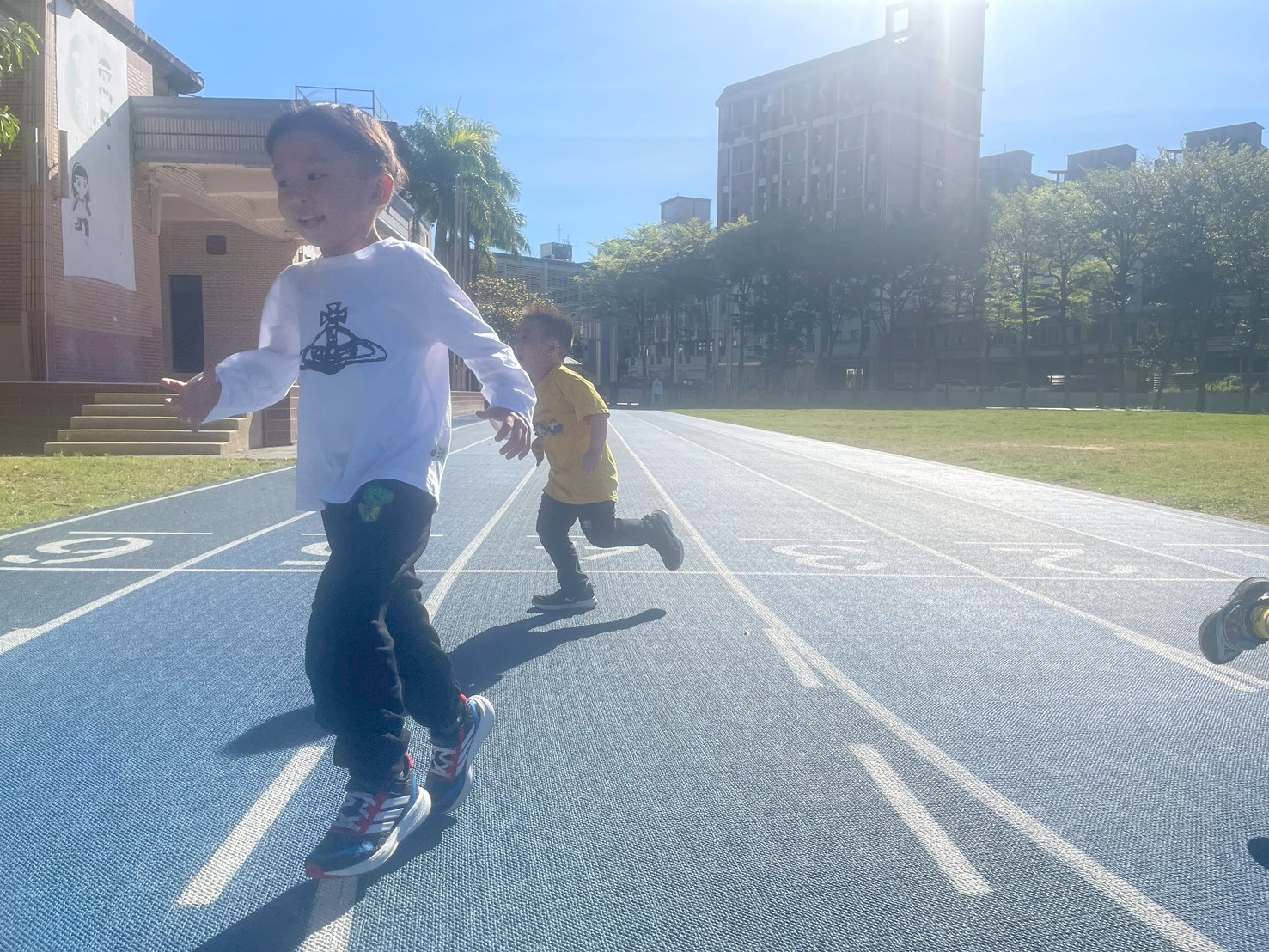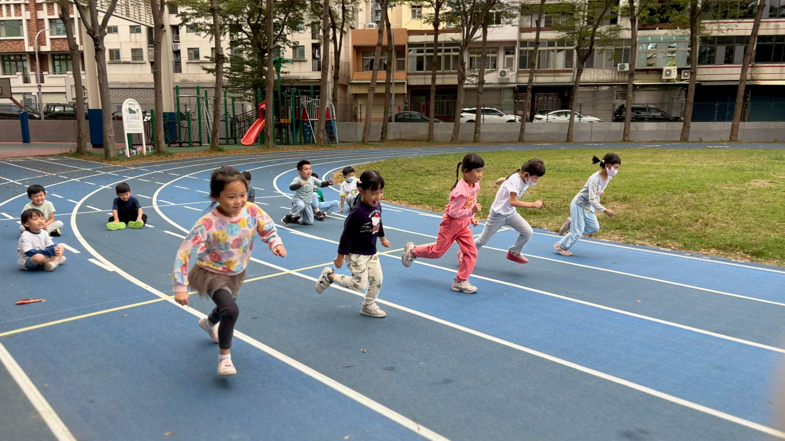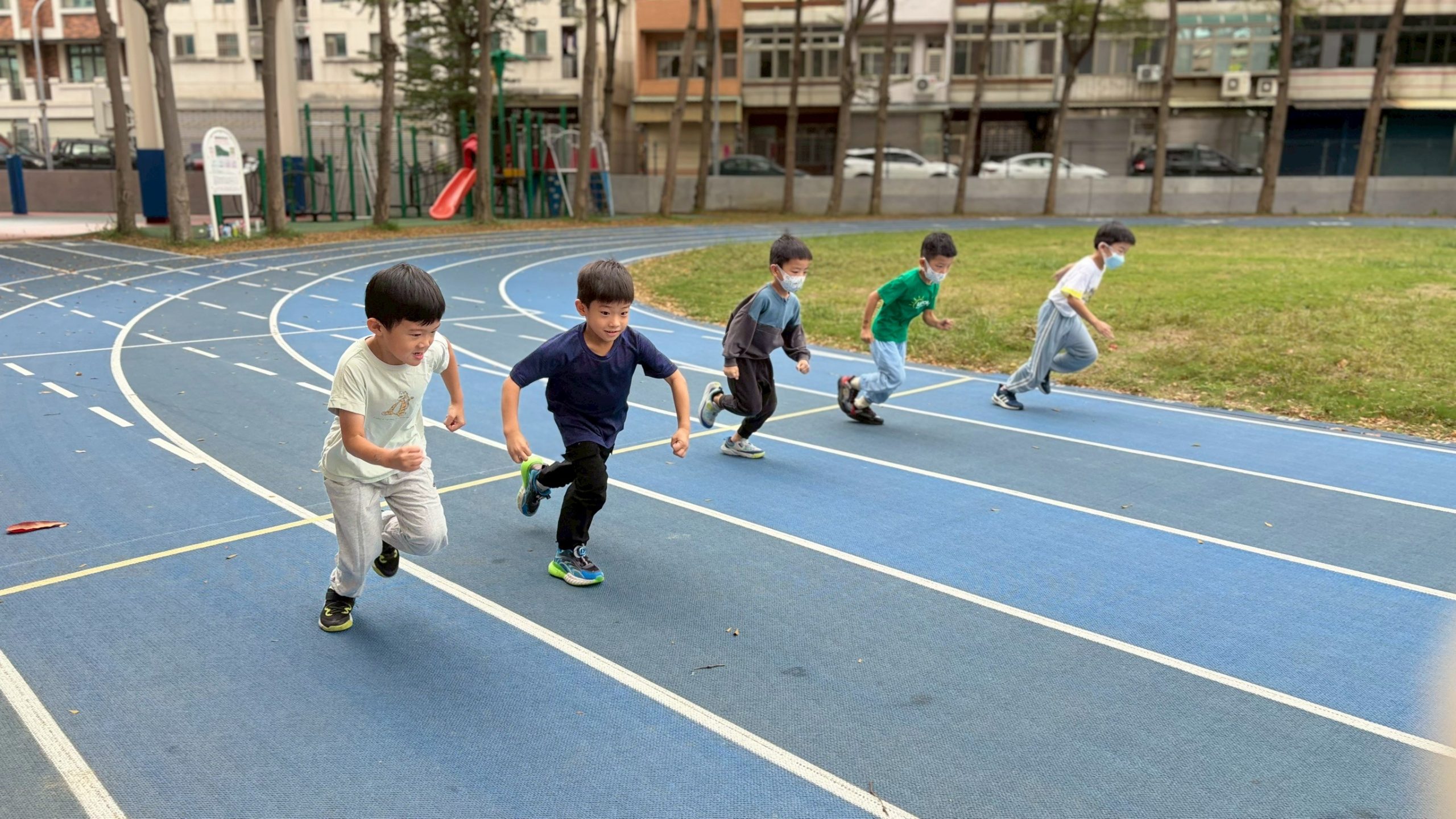 11/6 為了迎接本月的重要活動~校慶運動會,孩子們開始分組練習60 公尺賽跑,跑步前的安全約定是:鞋袋要綁好、要跑在自己的跑道、認真向前跑。暖暖的秋陽下,紅通通的小臉兒,一起蓄勢待發~。