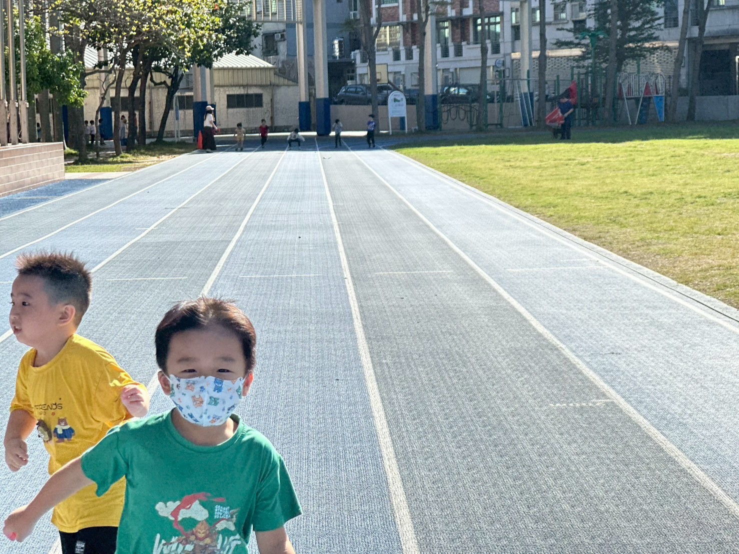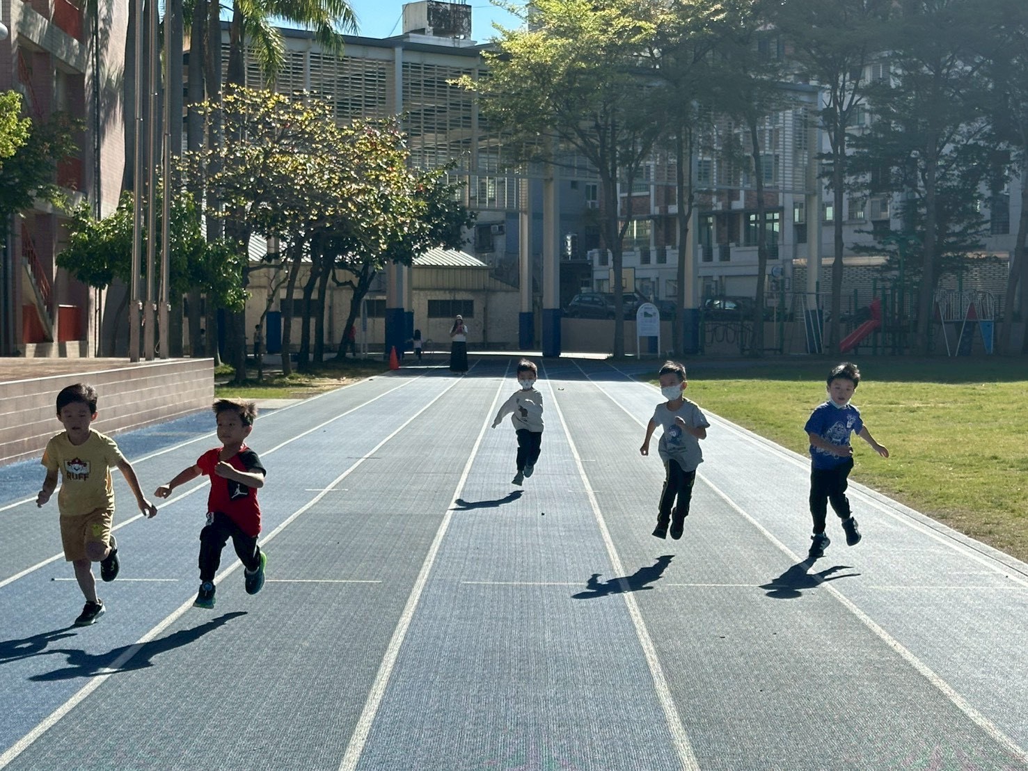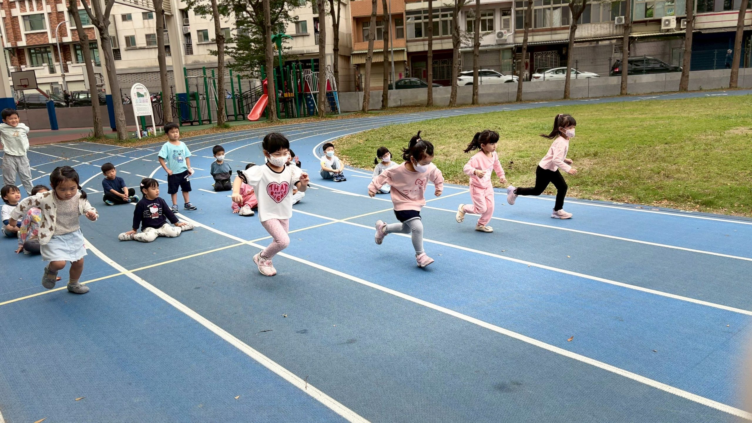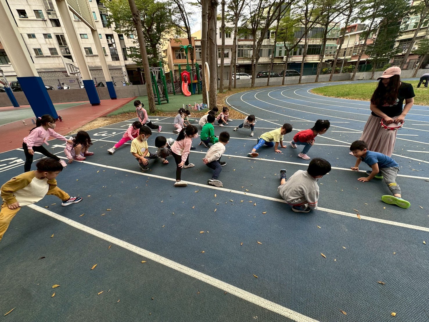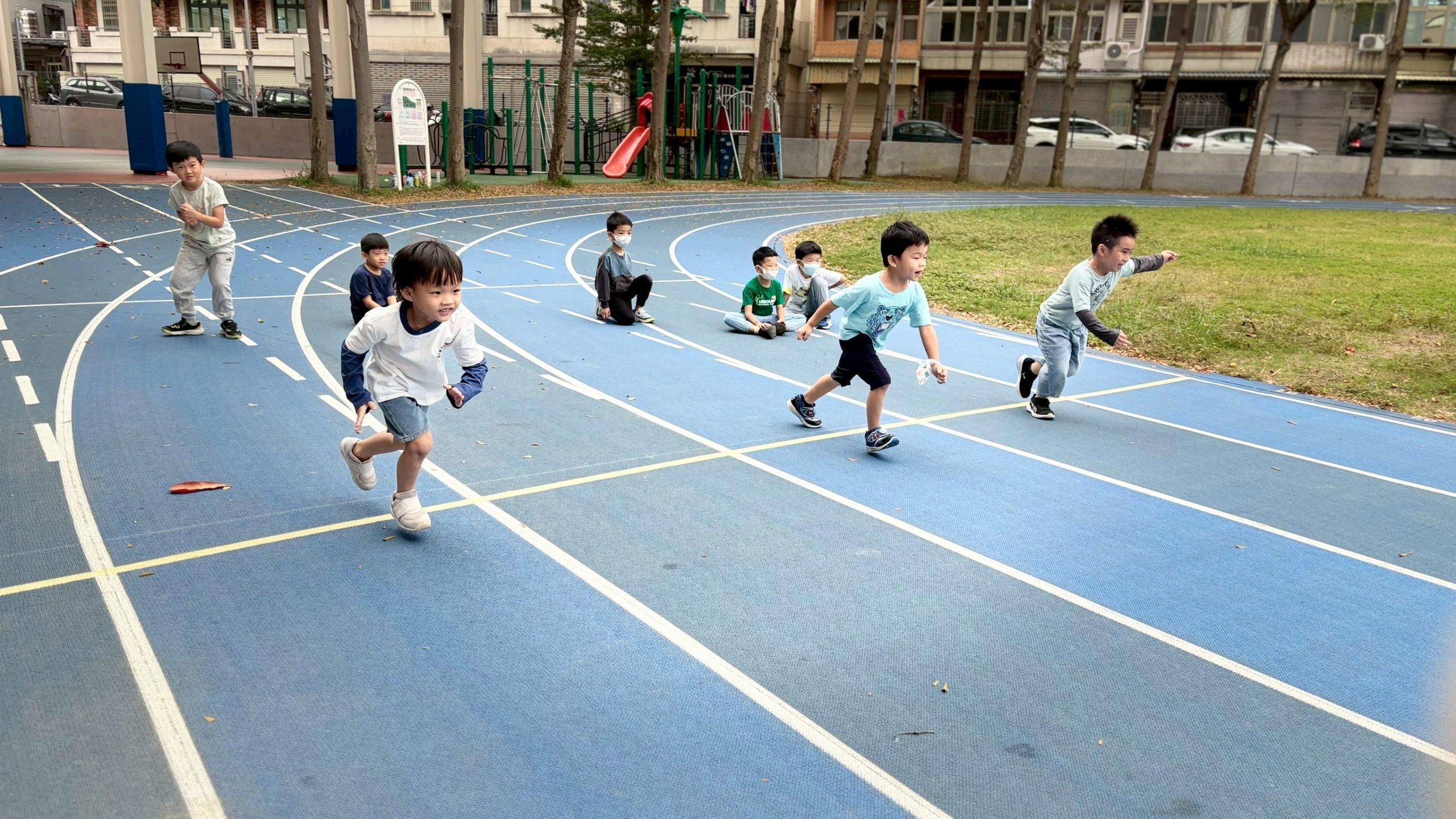 11/6 為了迎接本月的重要活動~校慶運動會,孩子們開始分組練習60 公尺賽跑,跑步前的安全約定是:鞋袋要綁好、要跑在自己的跑道、認真向前跑。暖暖的秋陽下,紅通通的小臉兒,一起蓄勢待發~。