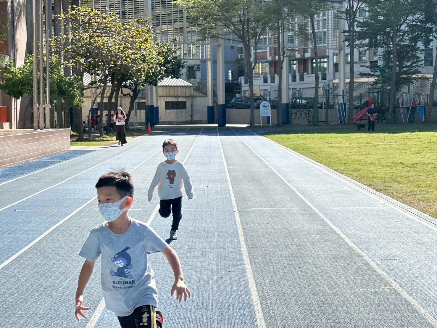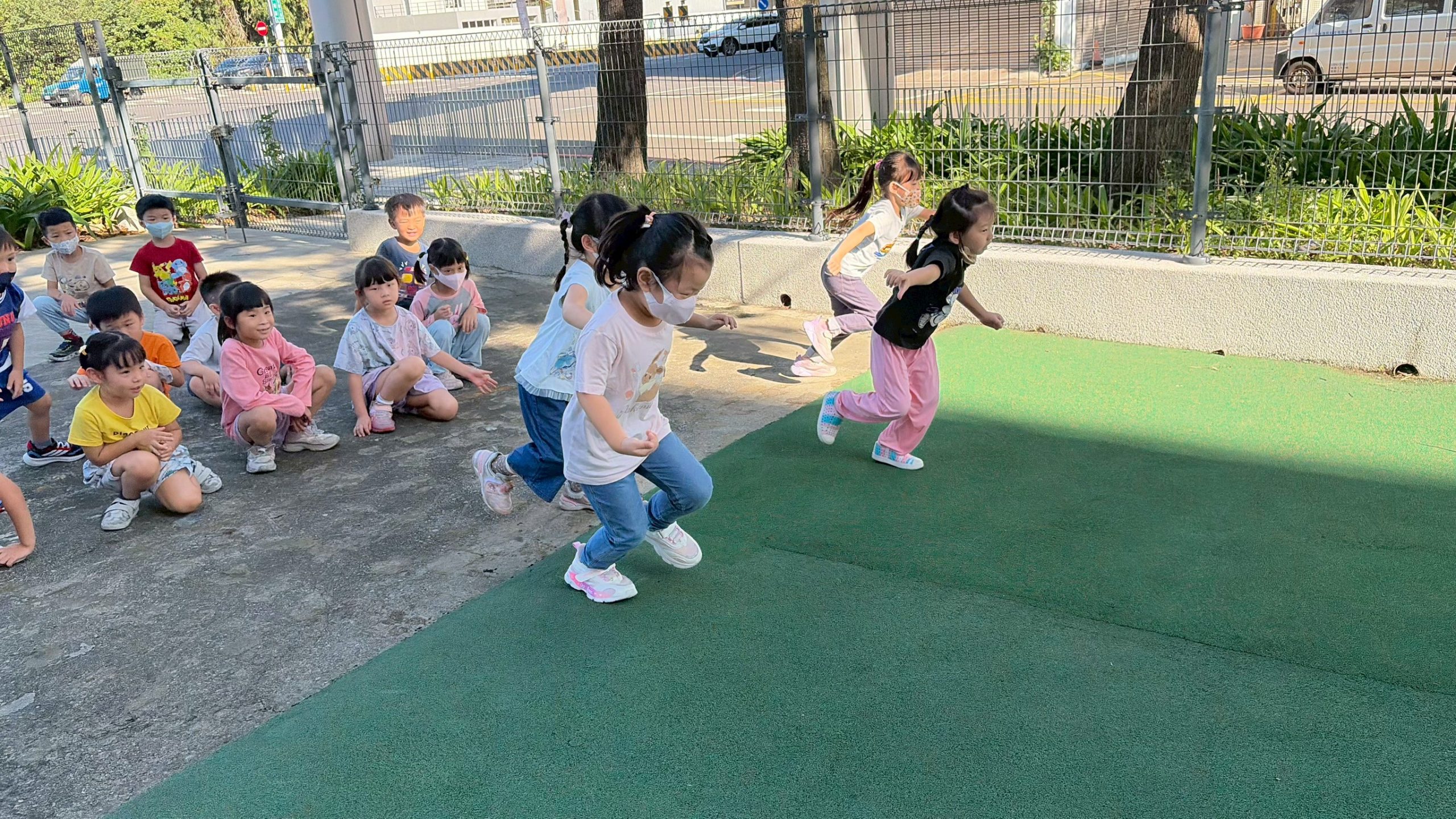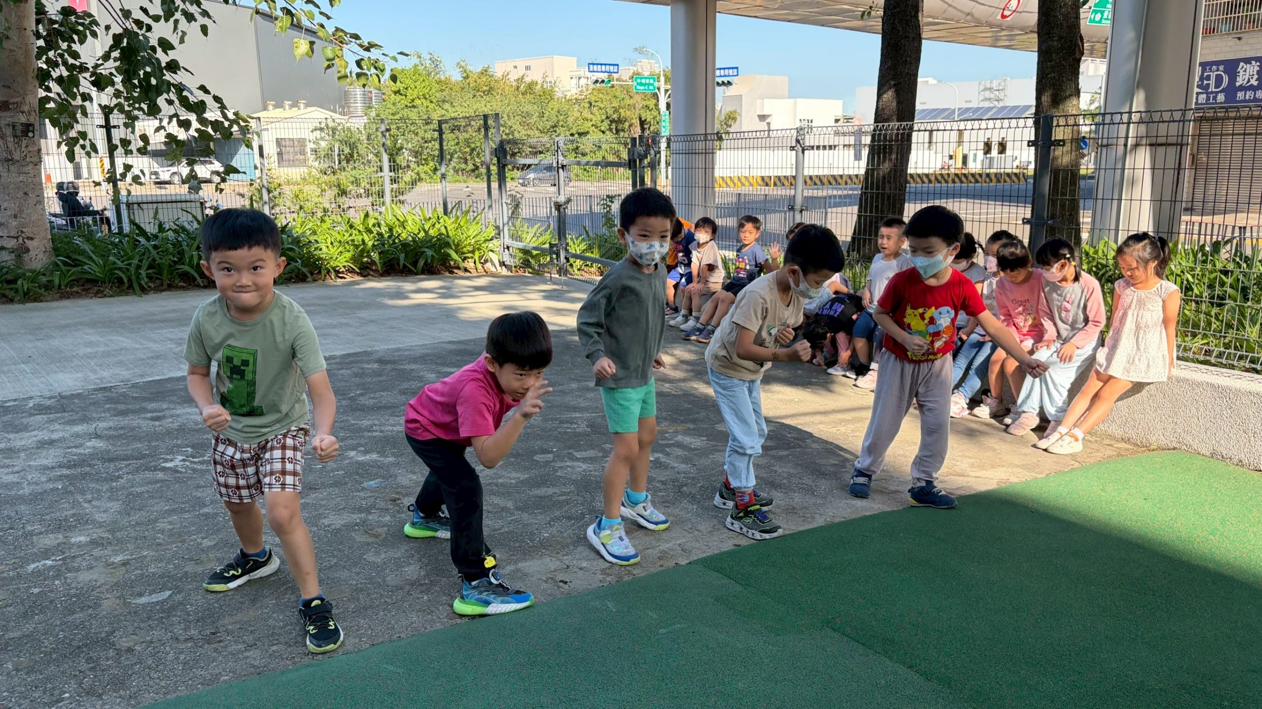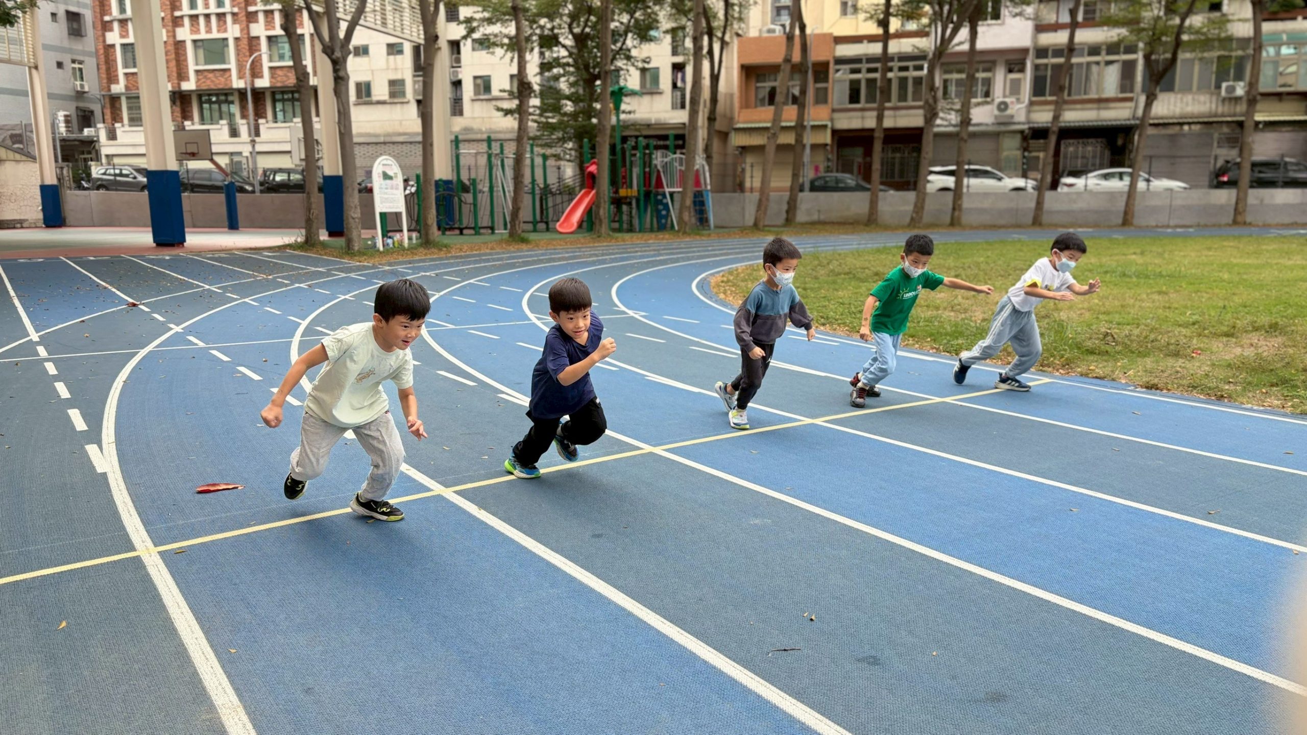11/6 為了迎接本月的重要活動~校慶運動會,孩子們開始分組練習60 公尺賽跑,跑步前的安全約定是:鞋袋要綁好、要跑在自己的跑道、認真向前跑。暖暖的秋陽下,紅通通的小臉兒,一起蓄勢待發~。
