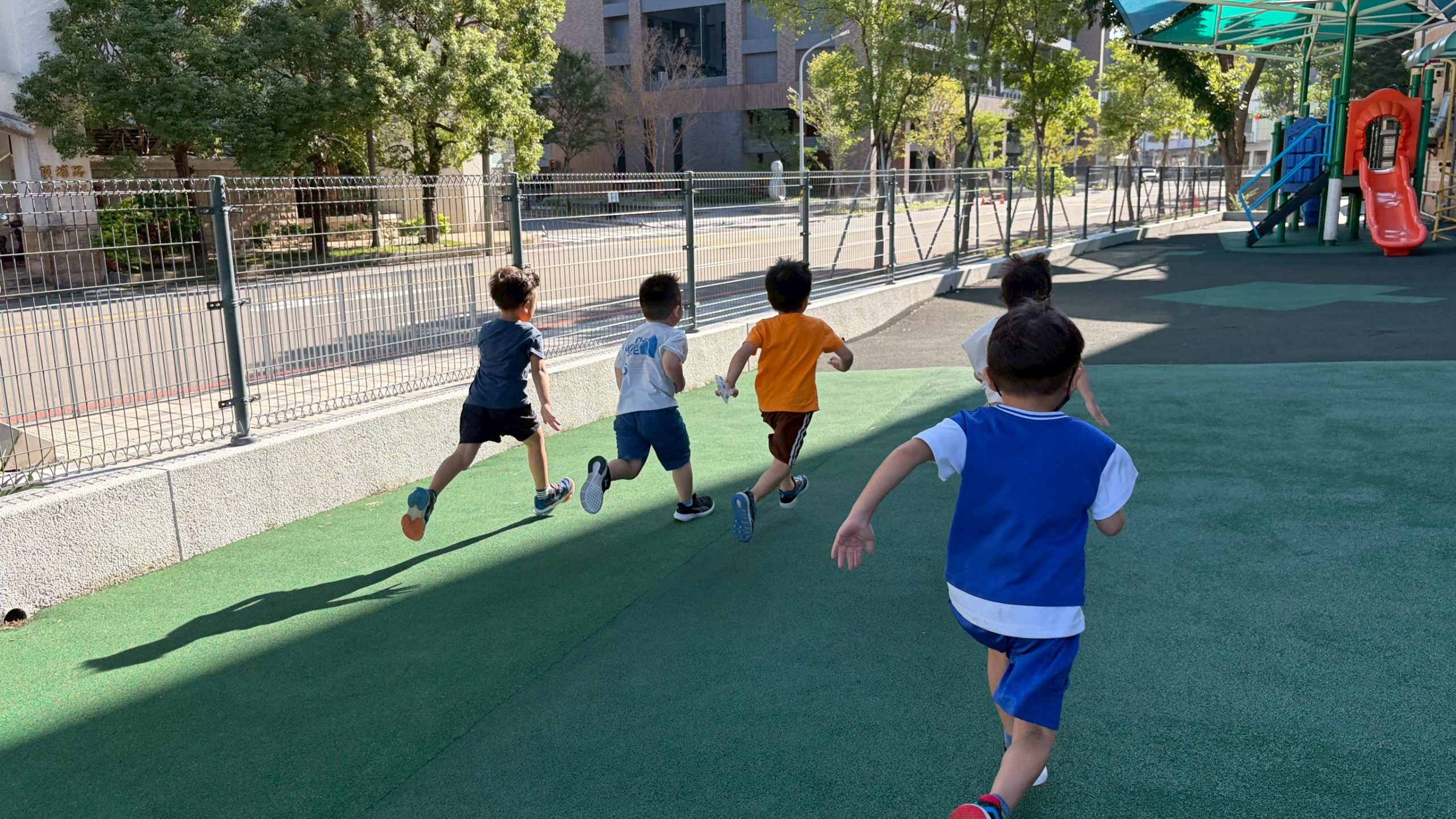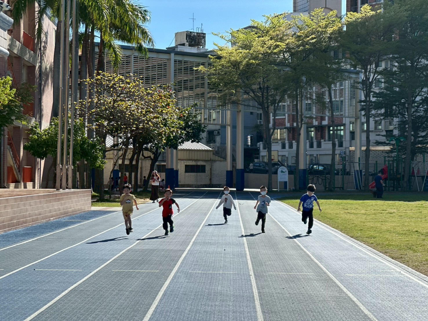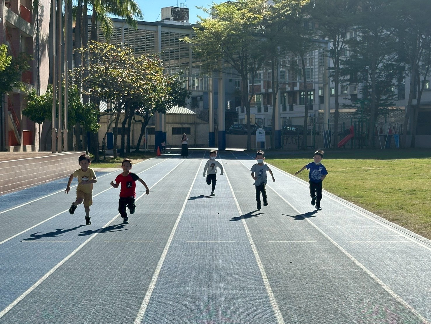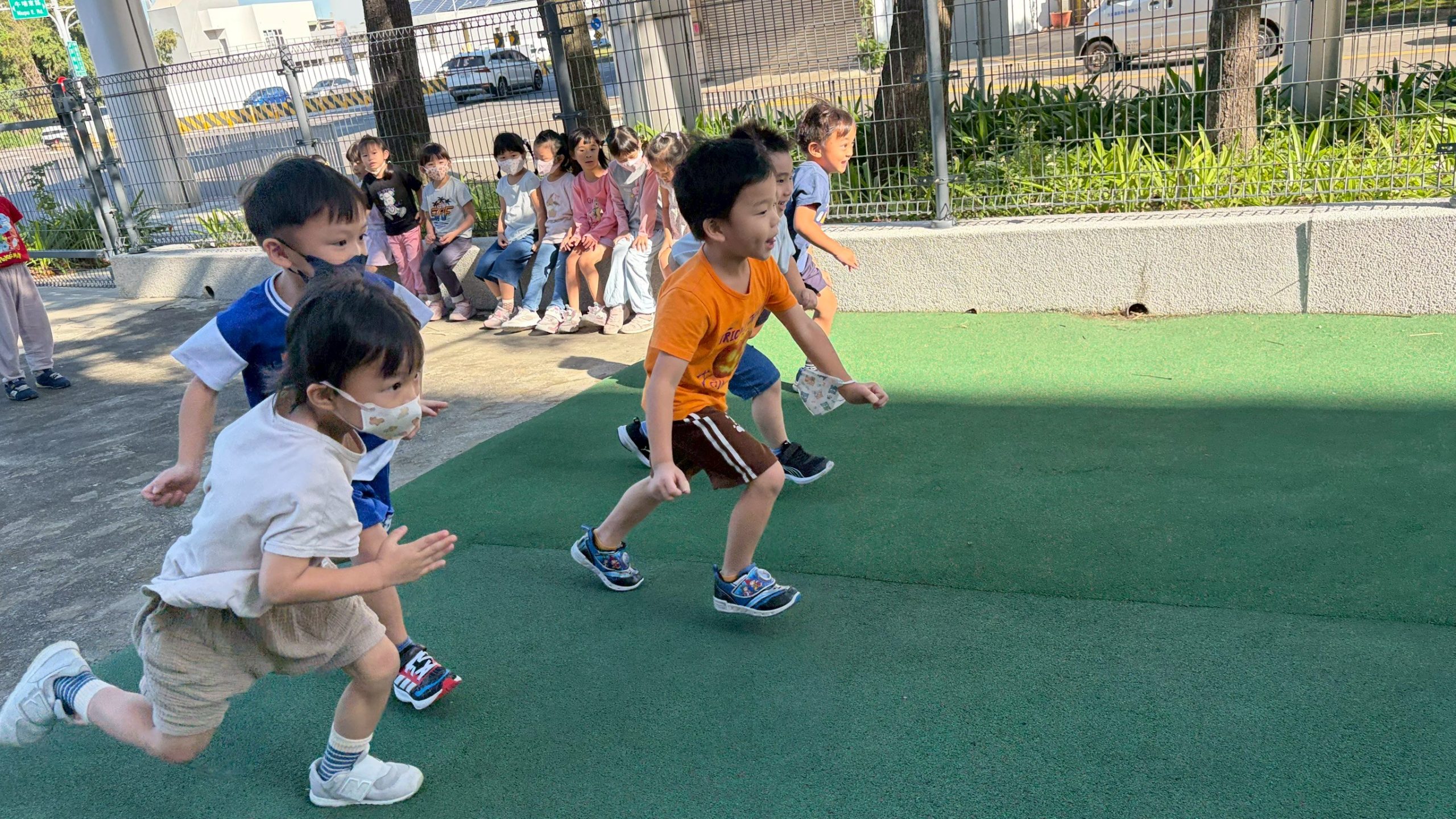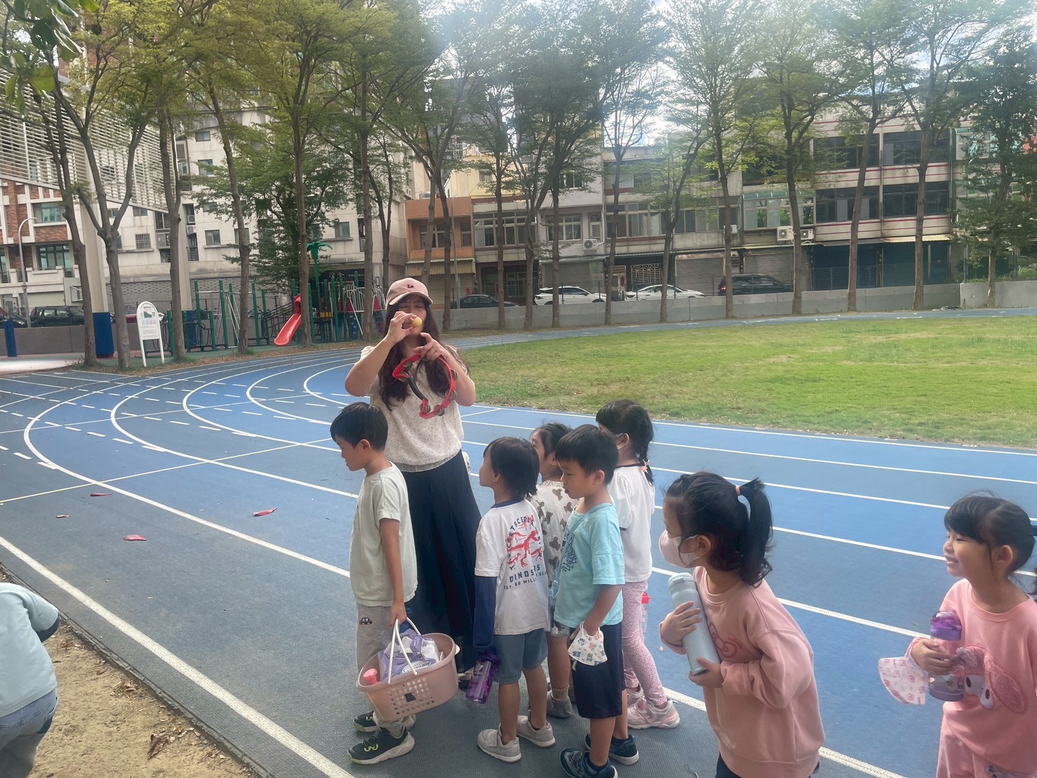 11/6 為了迎接本月的重要活動~校慶運動會,孩子們開始分組練習60 公尺賽跑,跑步前的安全約定是:鞋袋要綁好、要跑在自己的跑道、認真向前跑。暖暖的秋陽下,紅通通的小臉兒,一起蓄勢待發~。