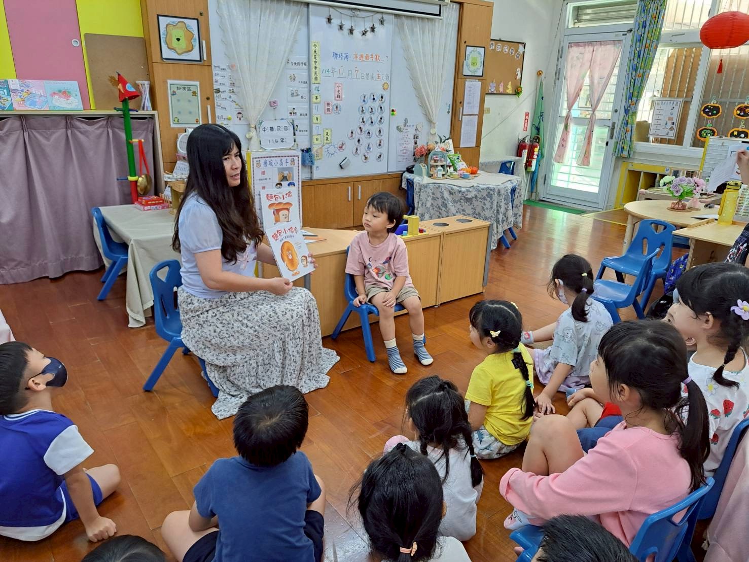 11/7 今天分享<麵包小偷3>繪本,在說故事之前,先請孩子們來說說前兩集的內容,練習回想故事與練習口說能力。有趣的內容已經深植心中,第三集裡除了「麵包小偷」和「小餐包」之外,來了一位不速之客「法國棍子麵包」,用孩子喜歡的可愛人物談論「道理」,換位思考後感同身受,理解之後更能塑造自己的好行為喔!