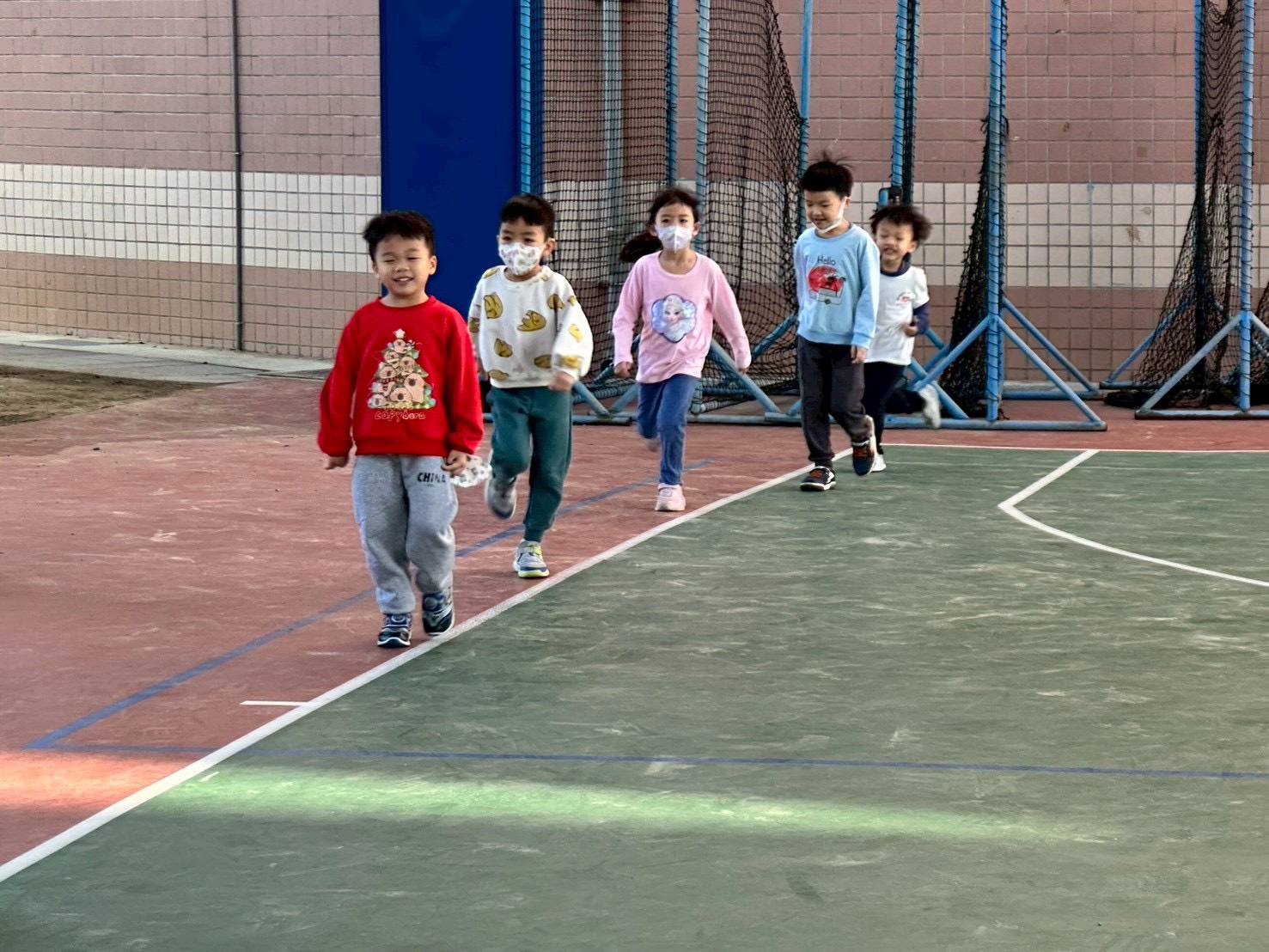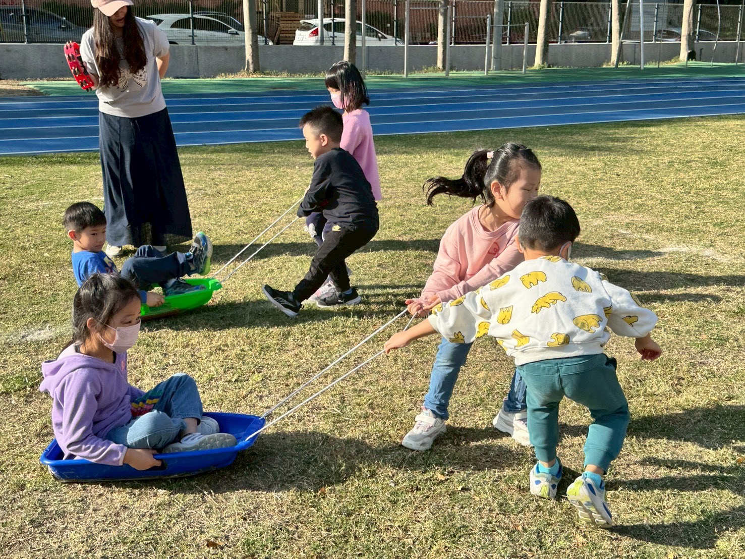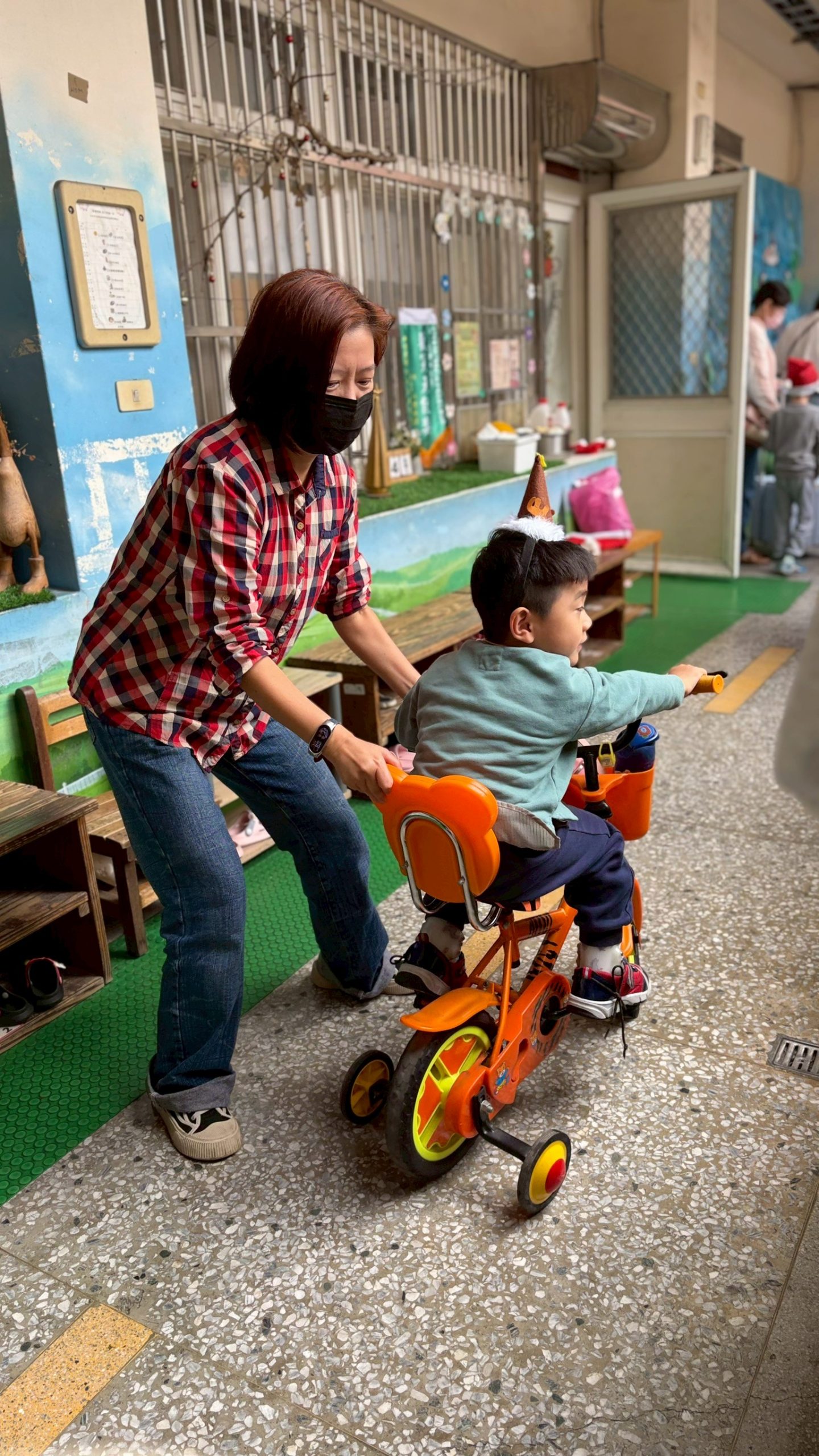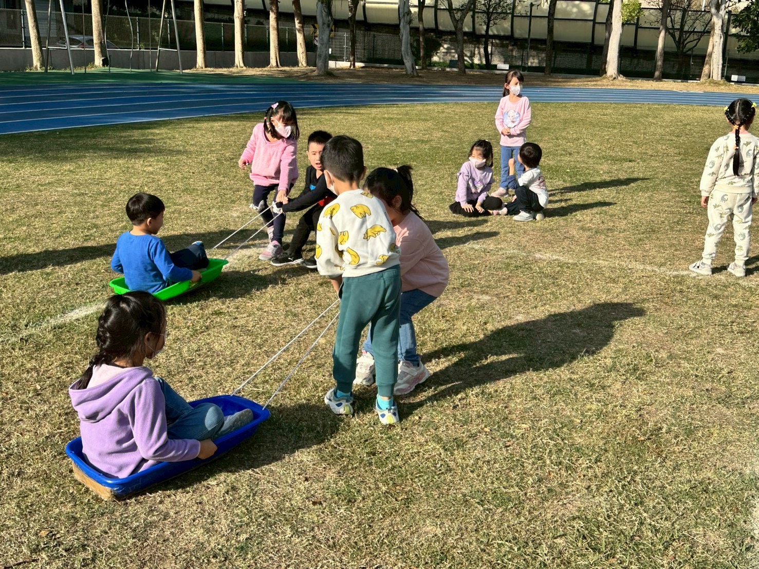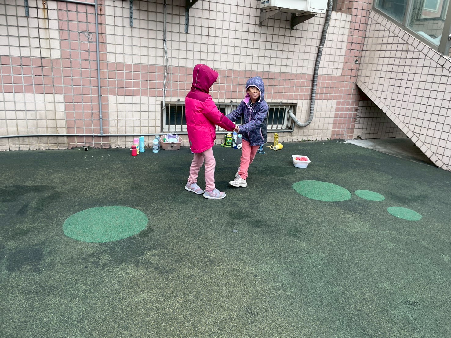 12/23 今天繼續練習兩首報佳音的歌曲~<聖誕老公公的鈴鐺不見了>和<粉紅色的聖誕節>,大班的三角鐵、鈴鼓與中班的沙鈴,邊唱邊跳邊打節奏,大家的專注力都進步囉!