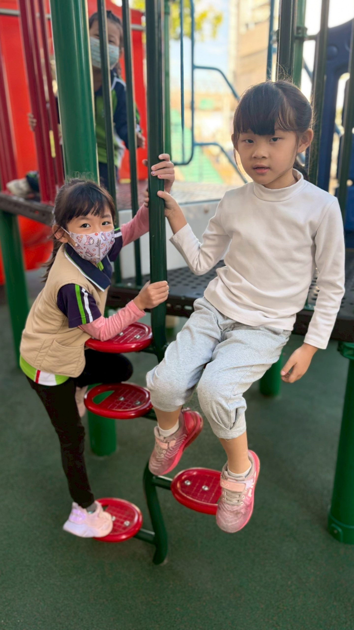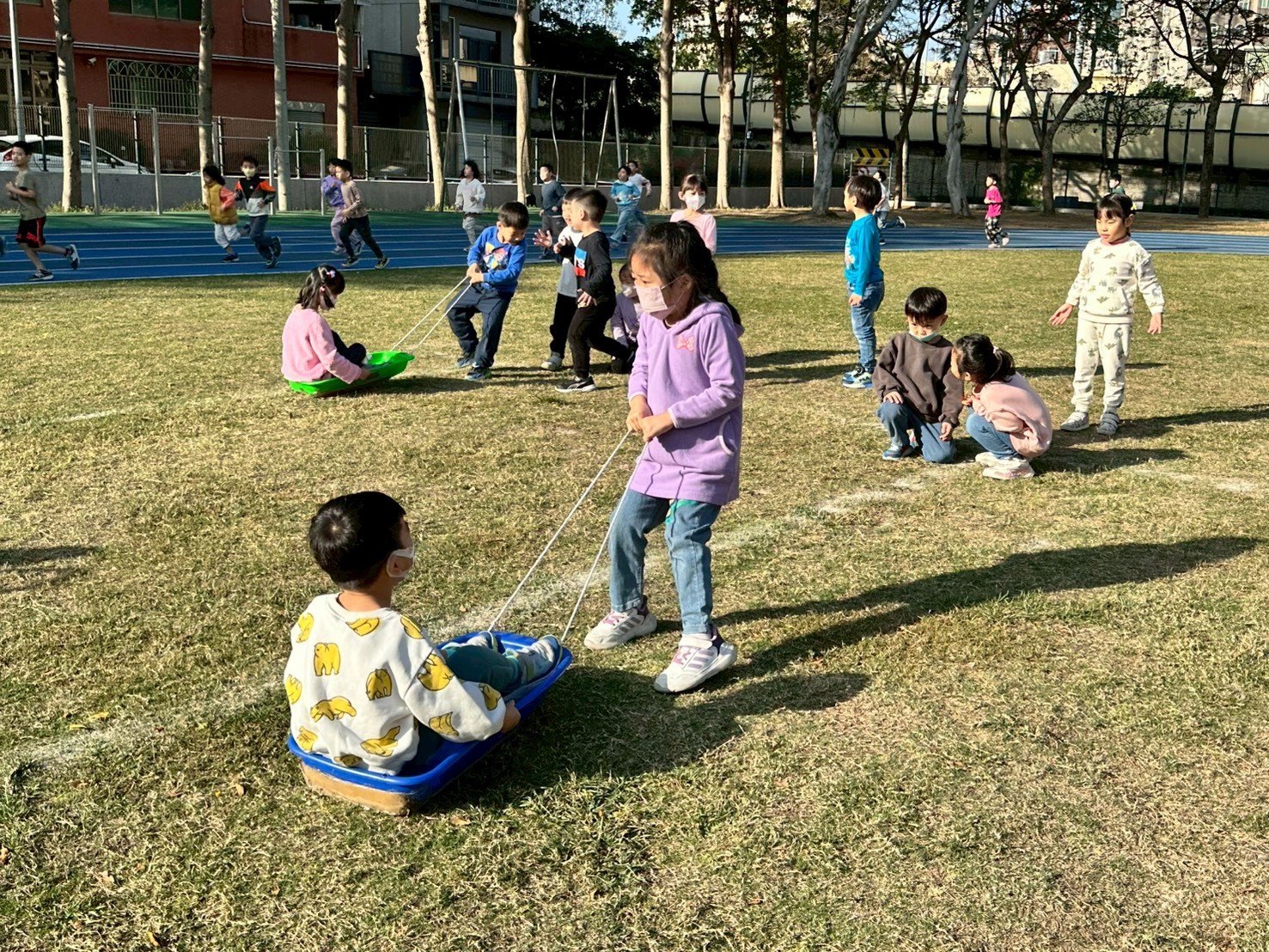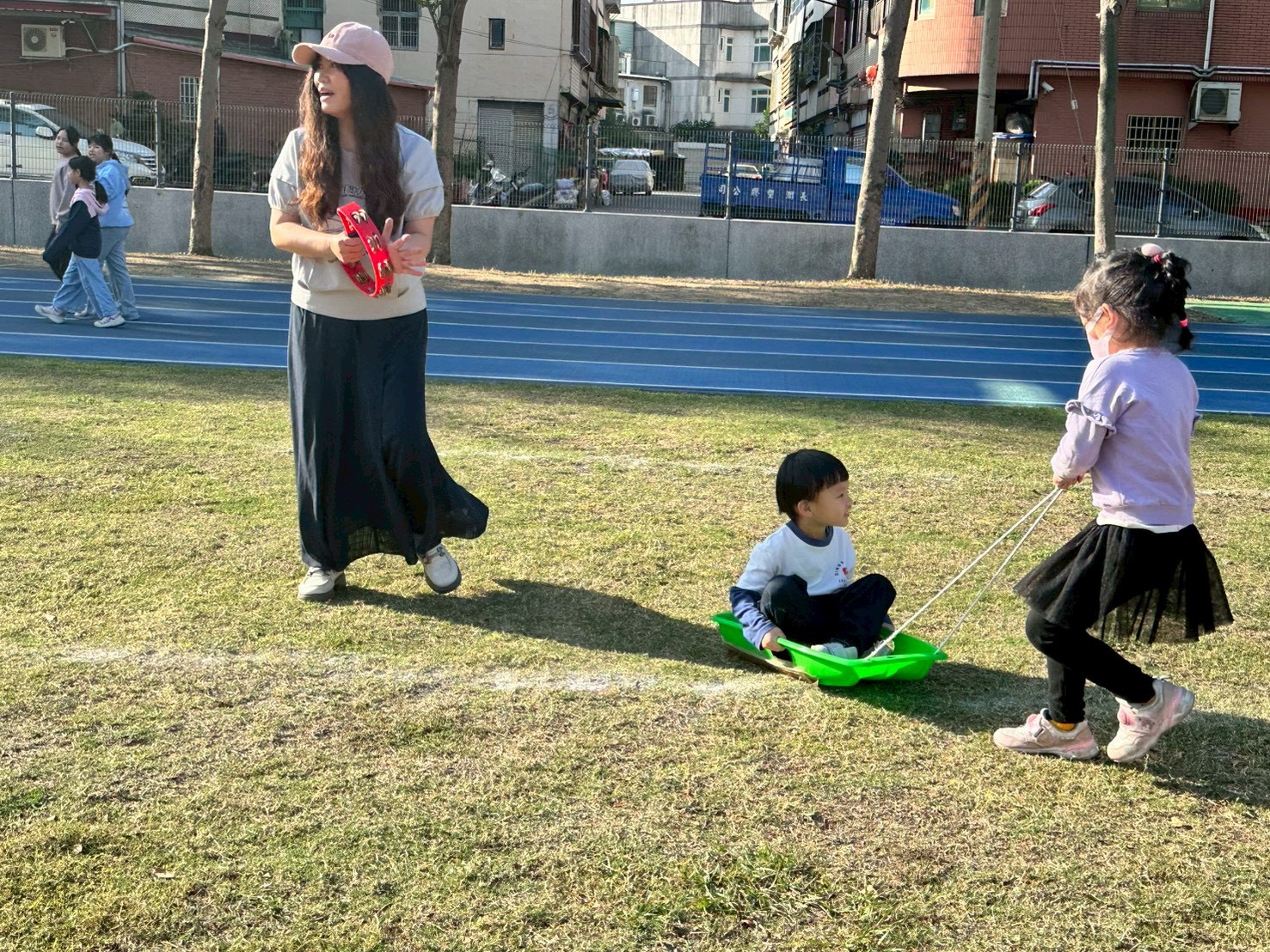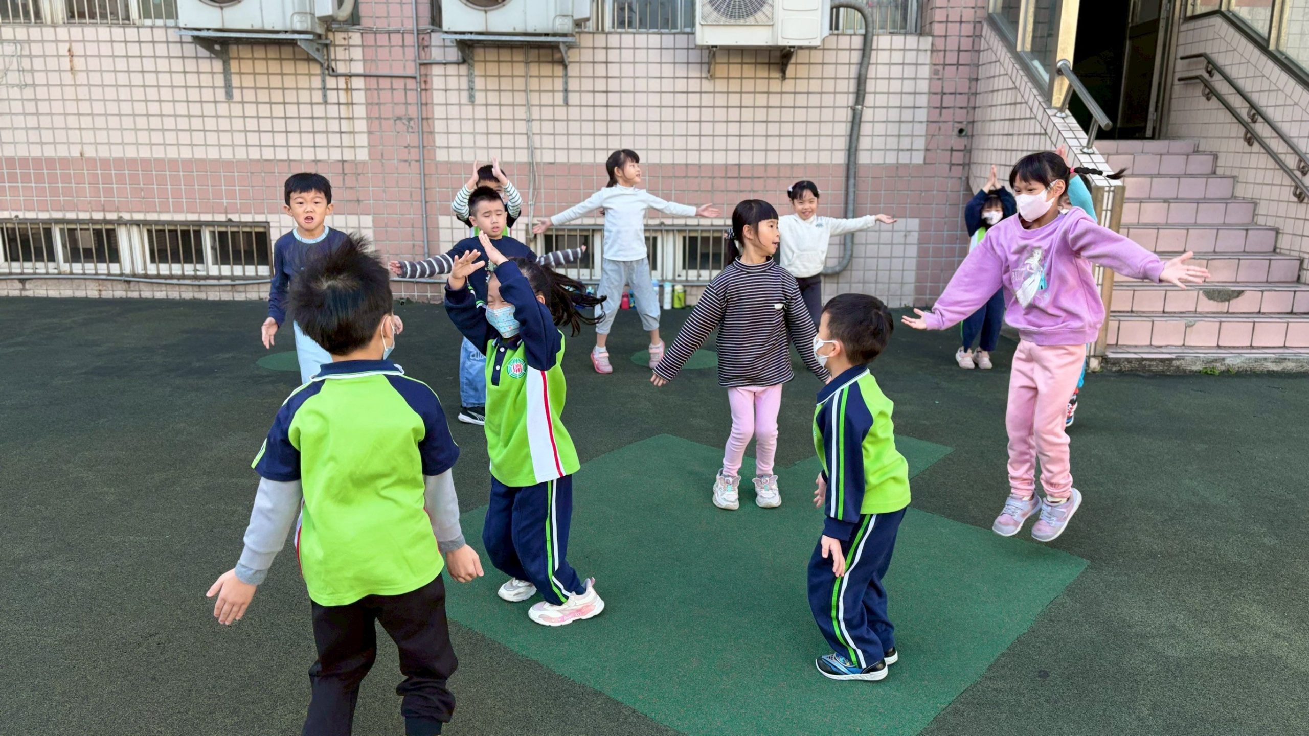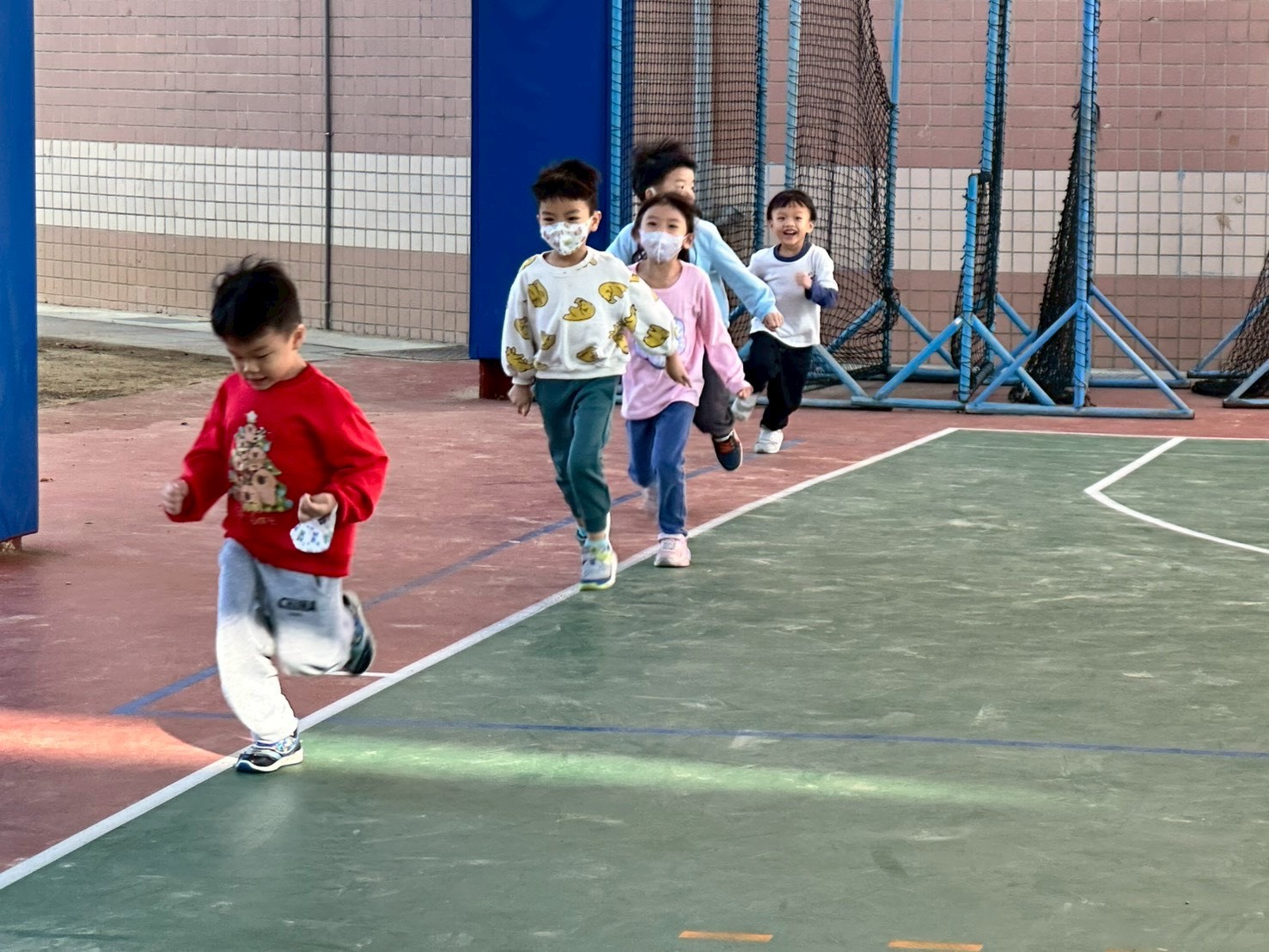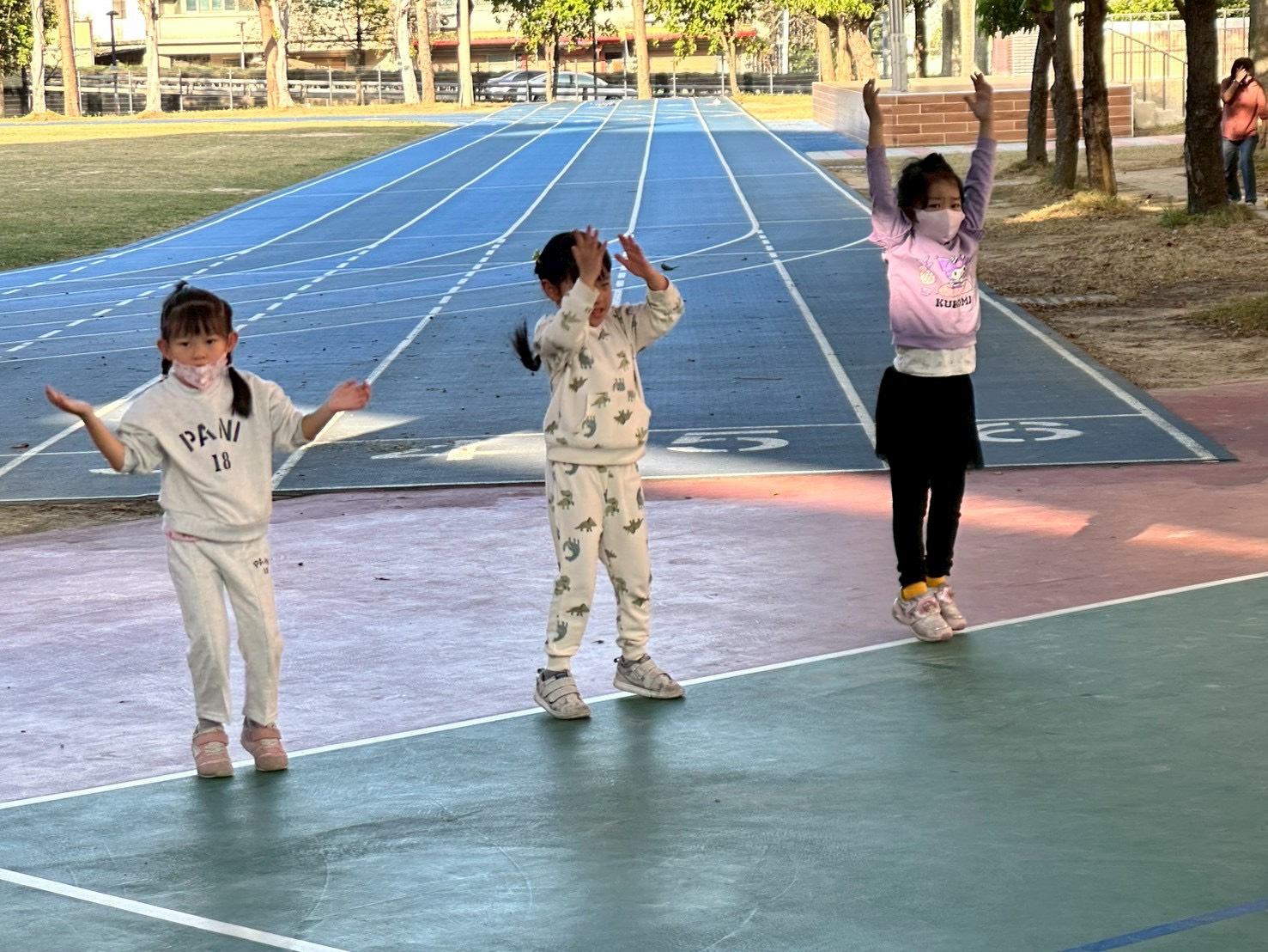 12/23 今天繼續練習兩首報佳音的歌曲~<聖誕老公公的鈴鐺不見了>和<粉紅色的聖誕節>,大班的三角鐵、鈴鼓與中班的沙鈴,邊唱邊跳邊打節奏,大家的專注力都進步囉!
