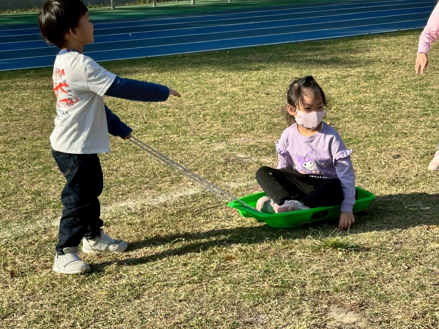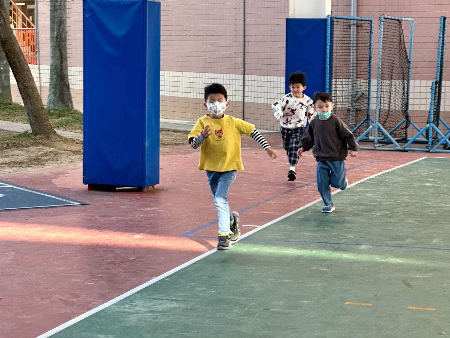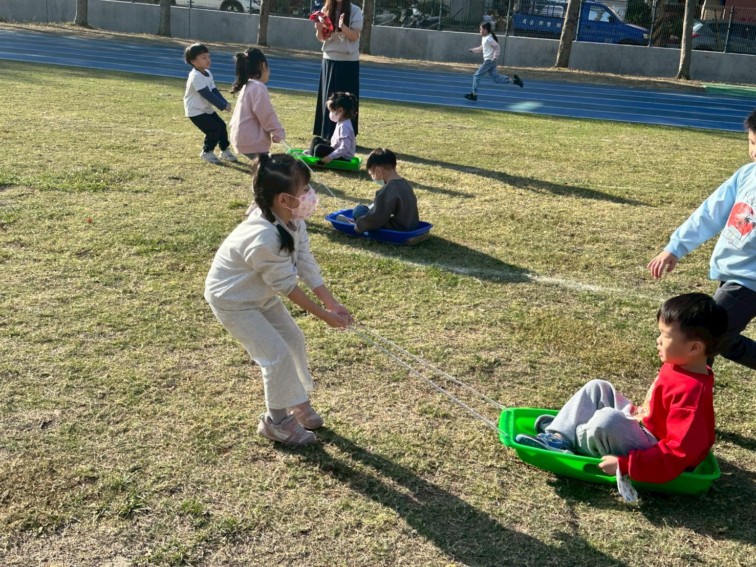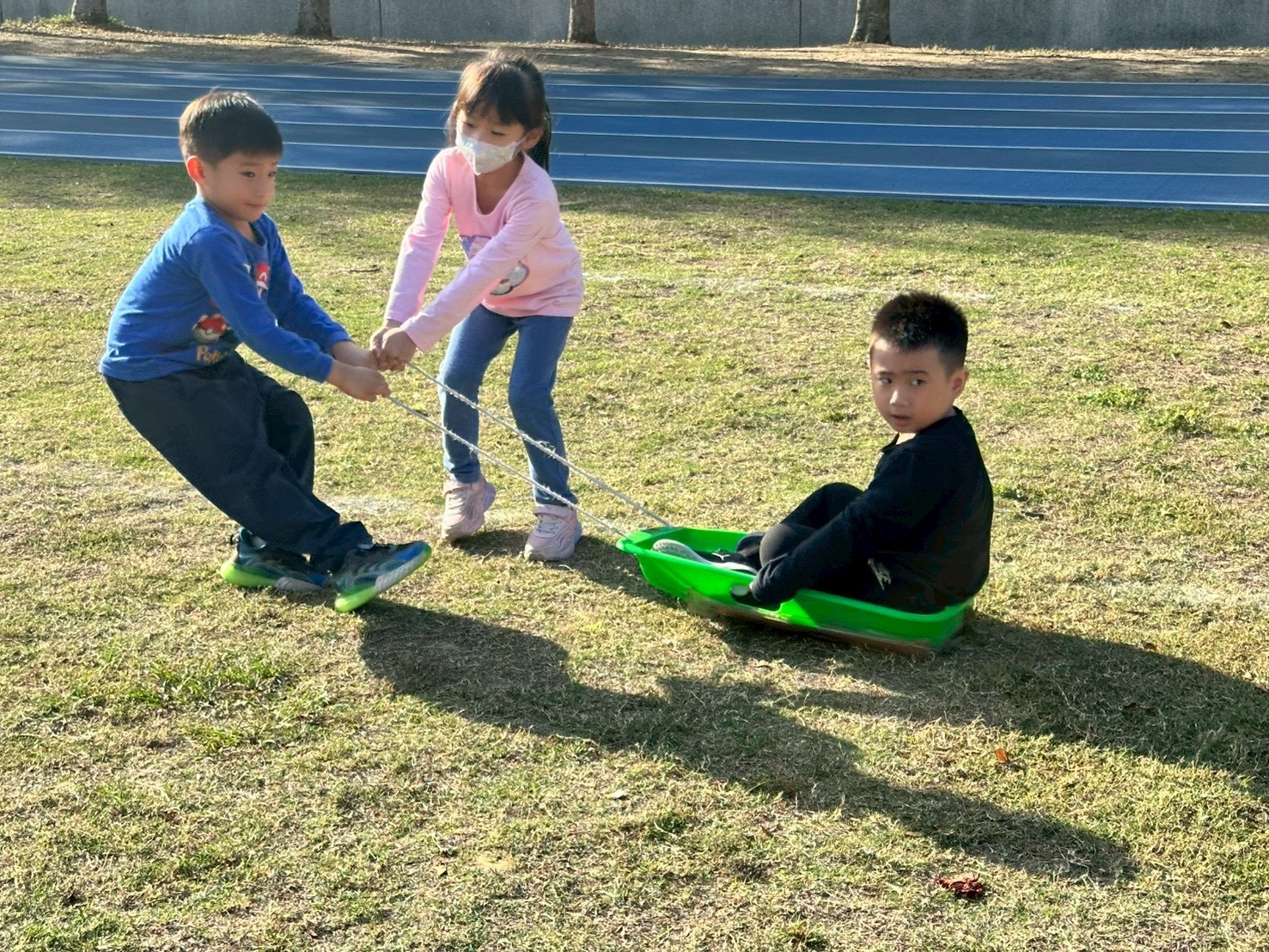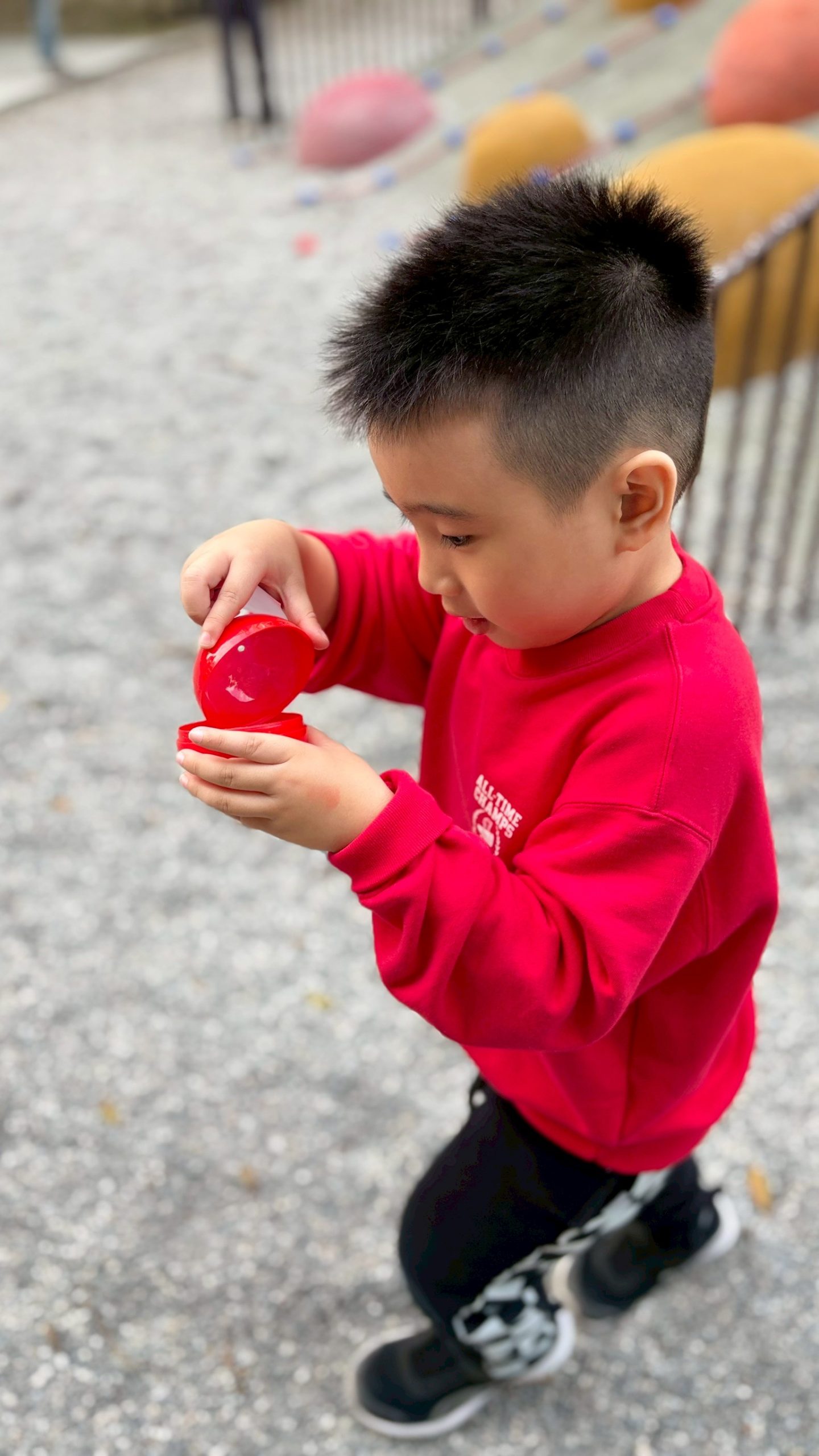 12/23 今天繼續練習兩首報佳音的歌曲~<聖誕老公公的鈴鐺不見了>和<粉紅色的聖誕節>,大班的三角鐵、鈴鼓與中班的沙鈴,邊唱邊跳邊打節奏,大家的專注力都進步囉!