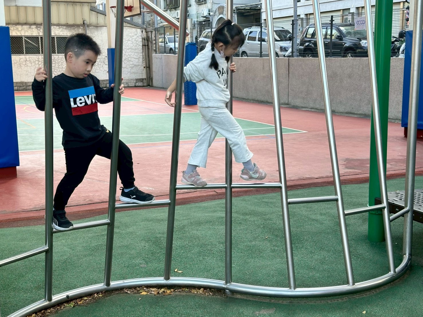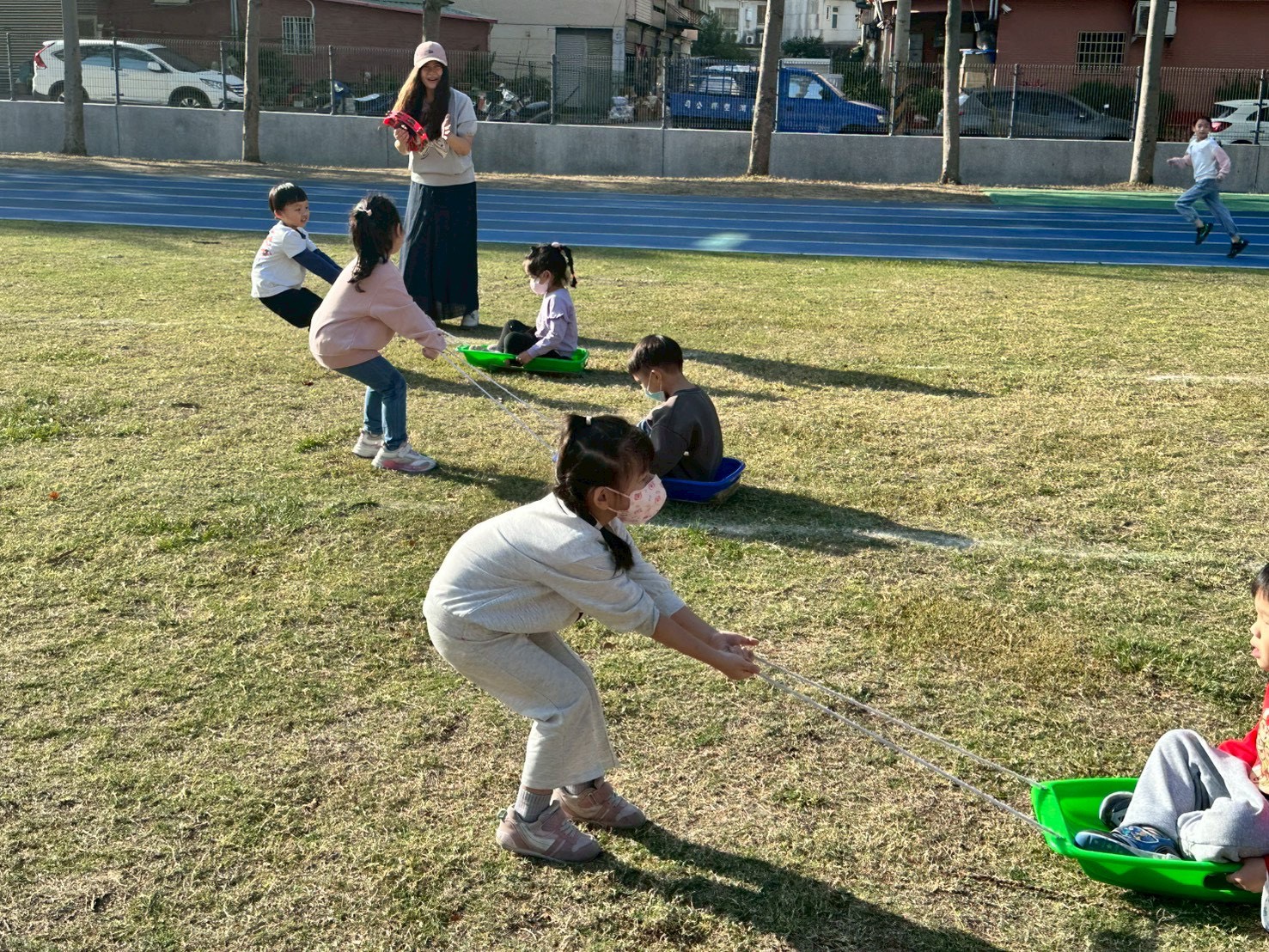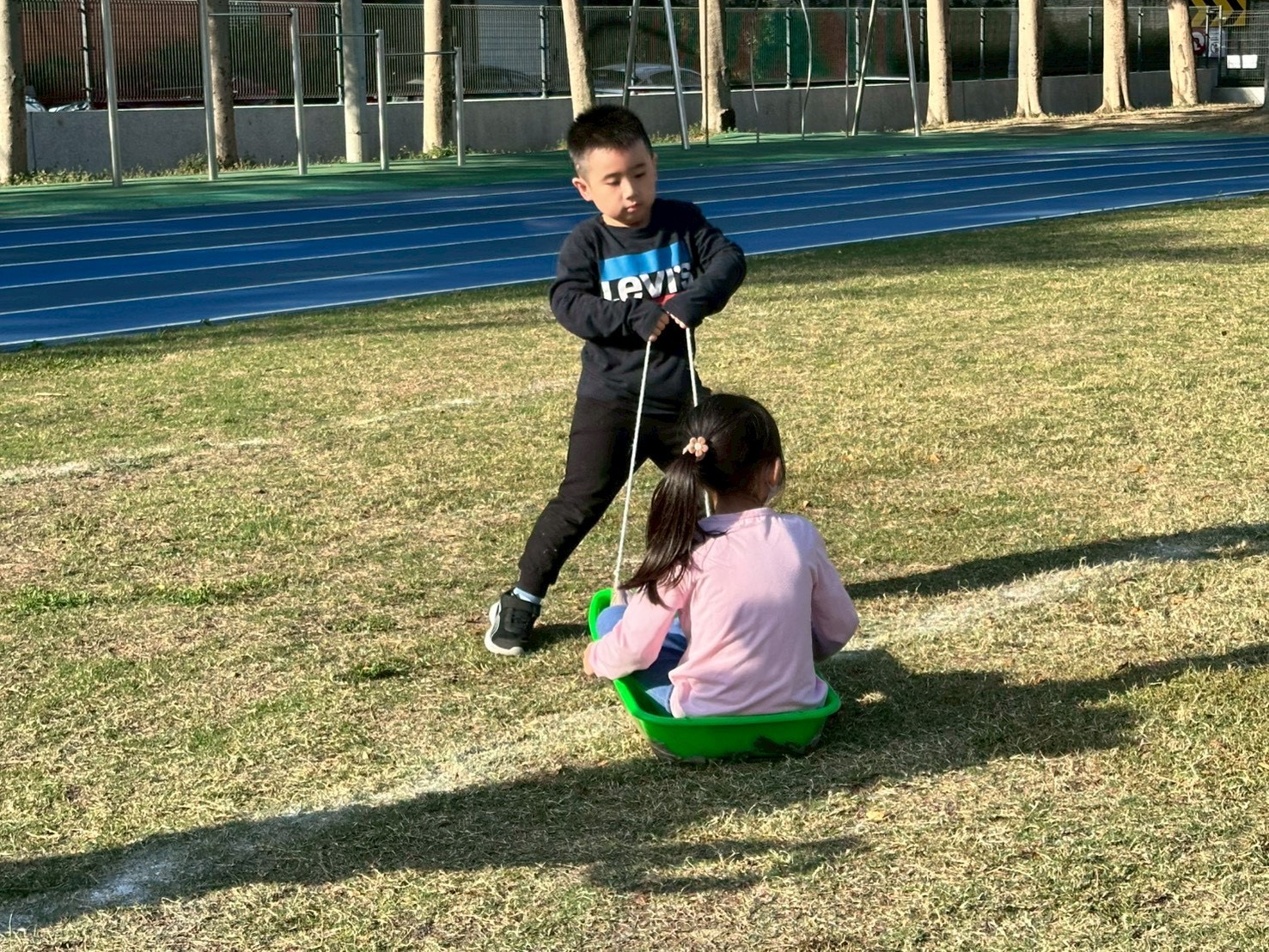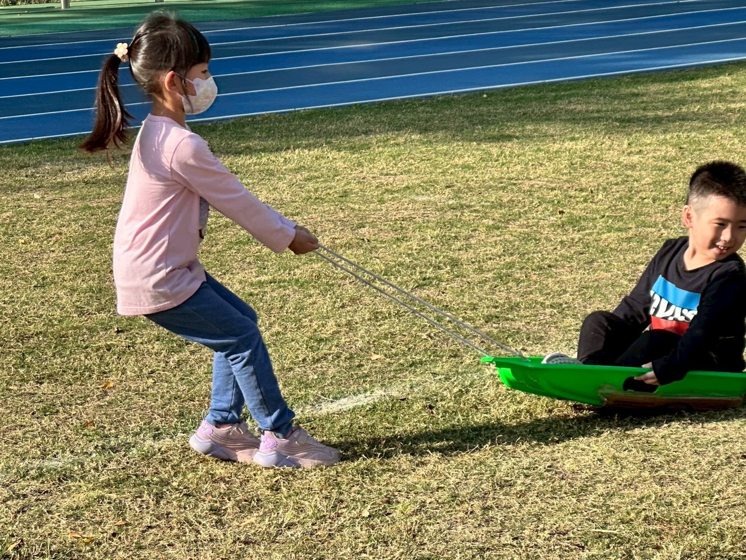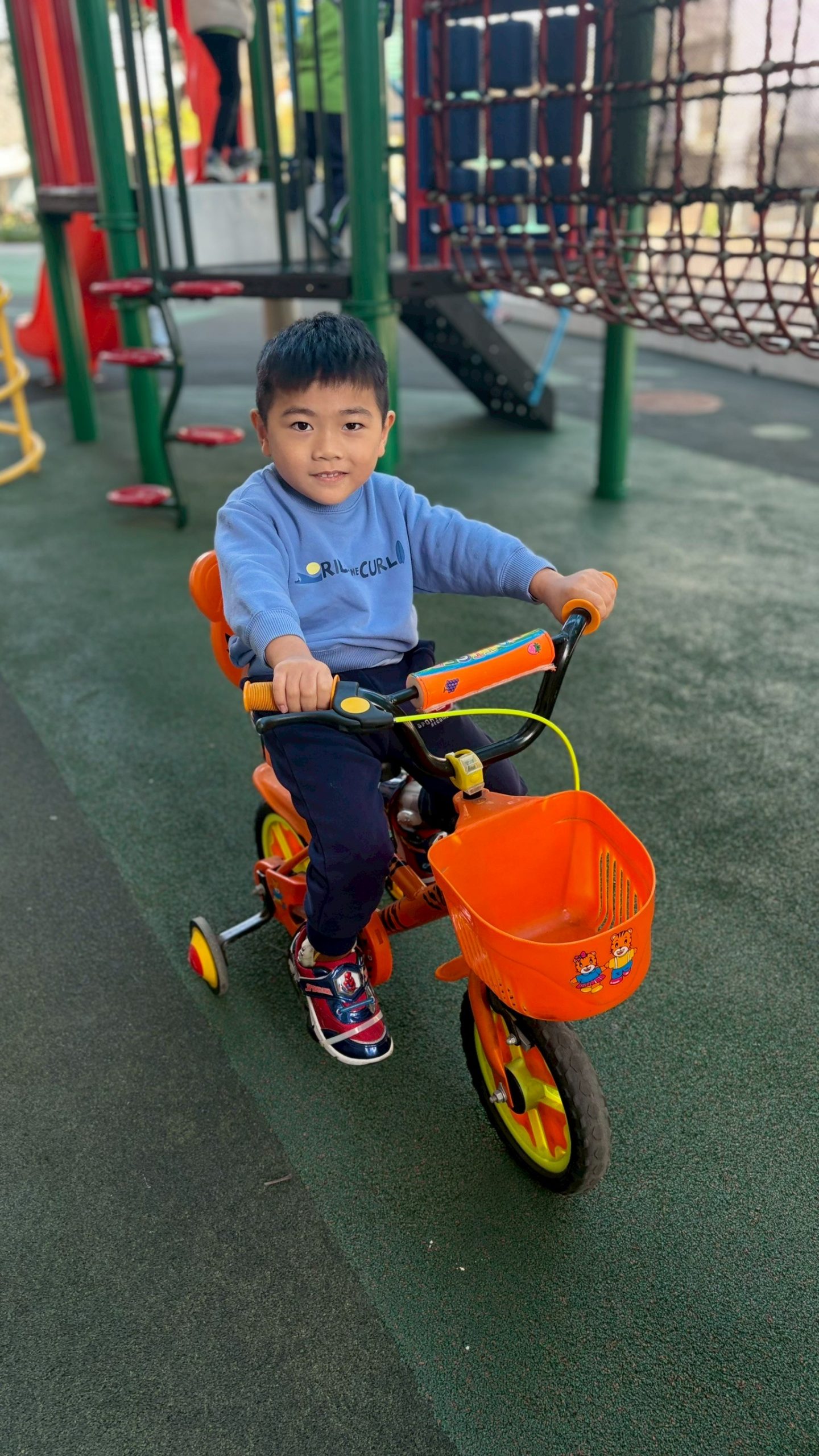 12/23 今天繼續練習兩首報佳音的歌曲~<聖誕老公公的鈴鐺不見了>和<粉紅色的聖誕節>,大班的三角鐵、鈴鼓與中班的沙鈴,邊唱邊跳邊打節奏,大家的專注力都進步囉!