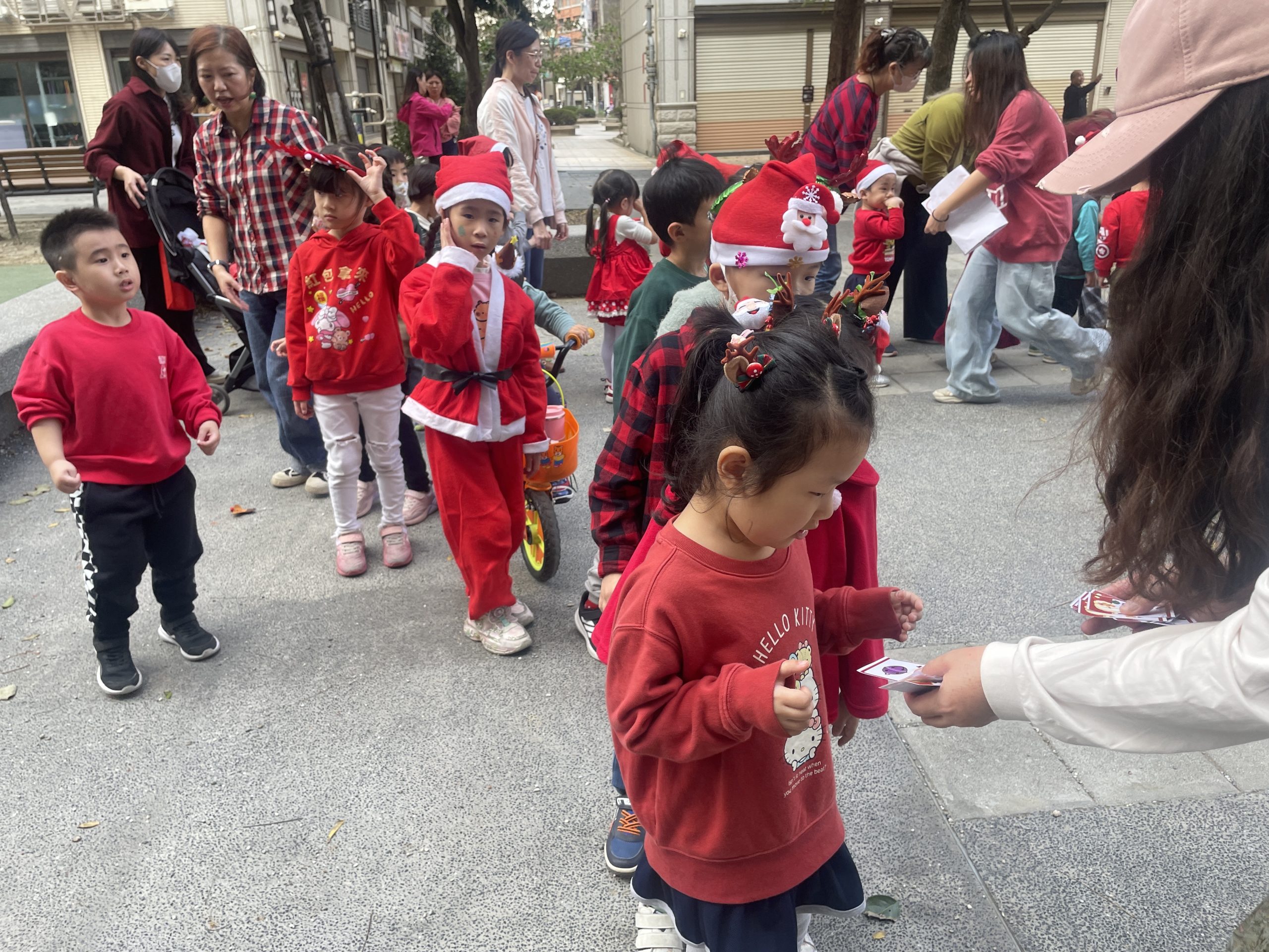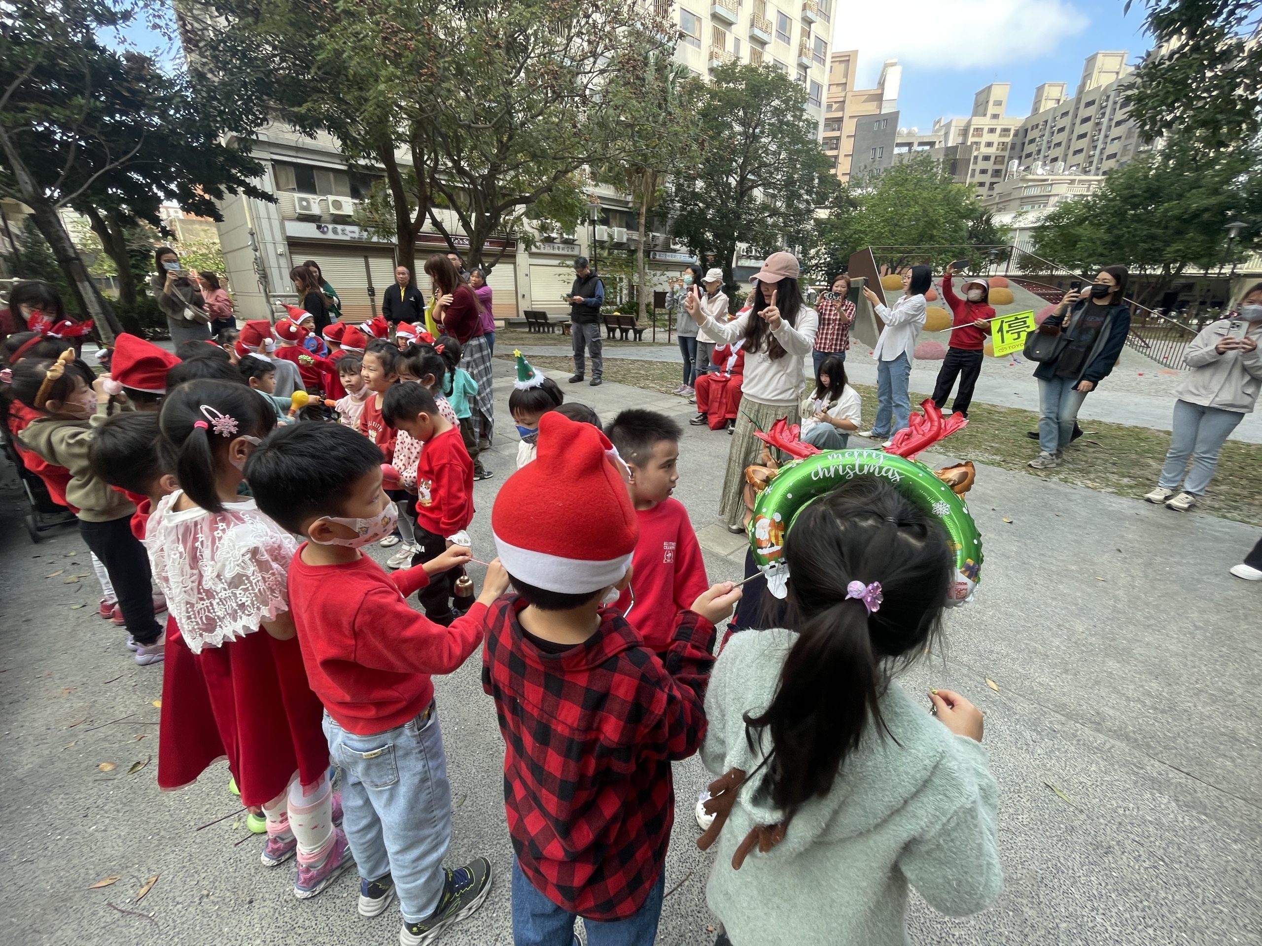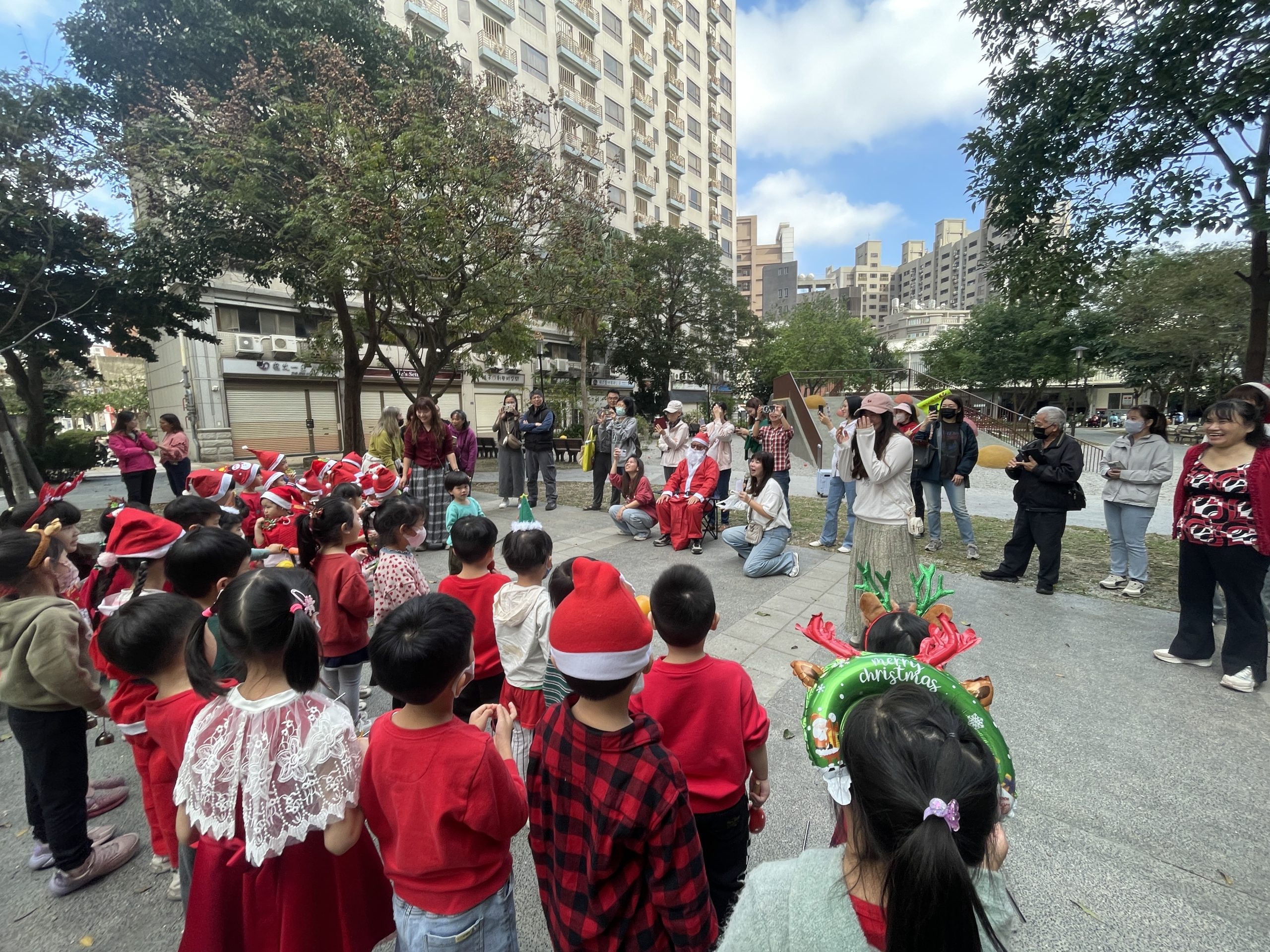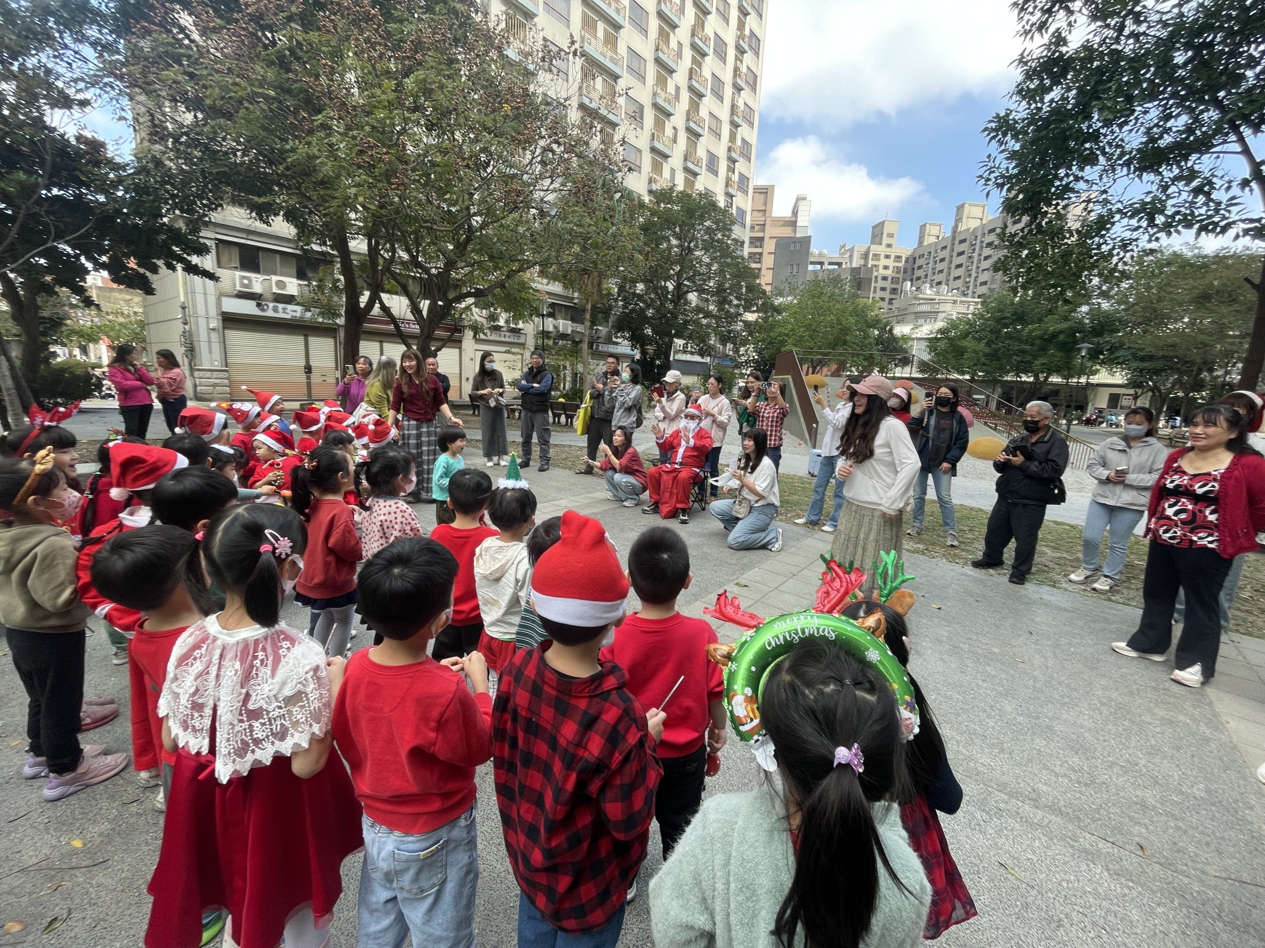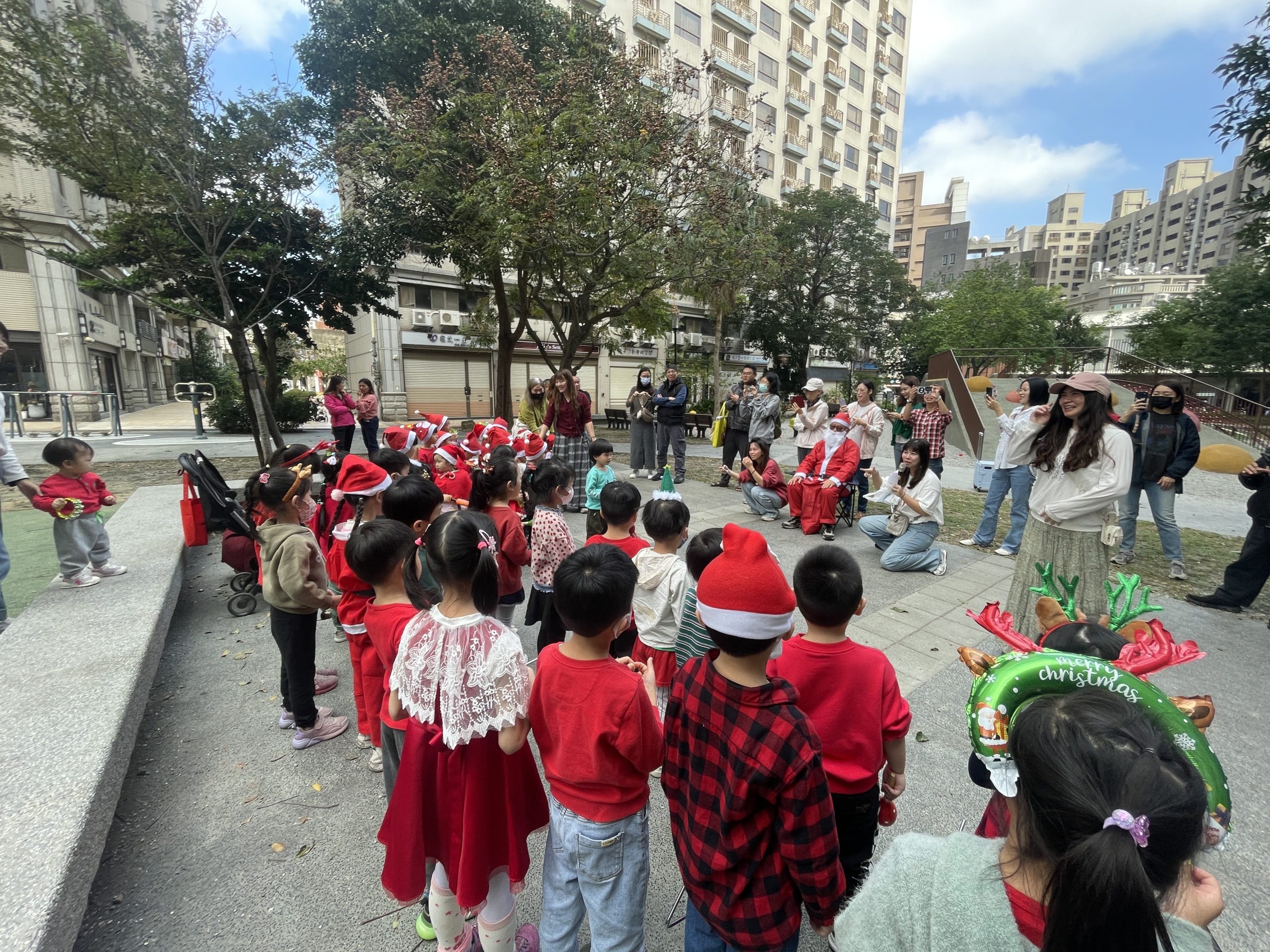 12/24 今天孩子們和綿羊班弟弟妹妹一起去社區報佳音,7-11的叔叔阿姨、學品的主任老師和和平公園的家長們,都開心為寶貝的表演喝采,感受愛與喜樂的聖誕節慶氛圍~。
