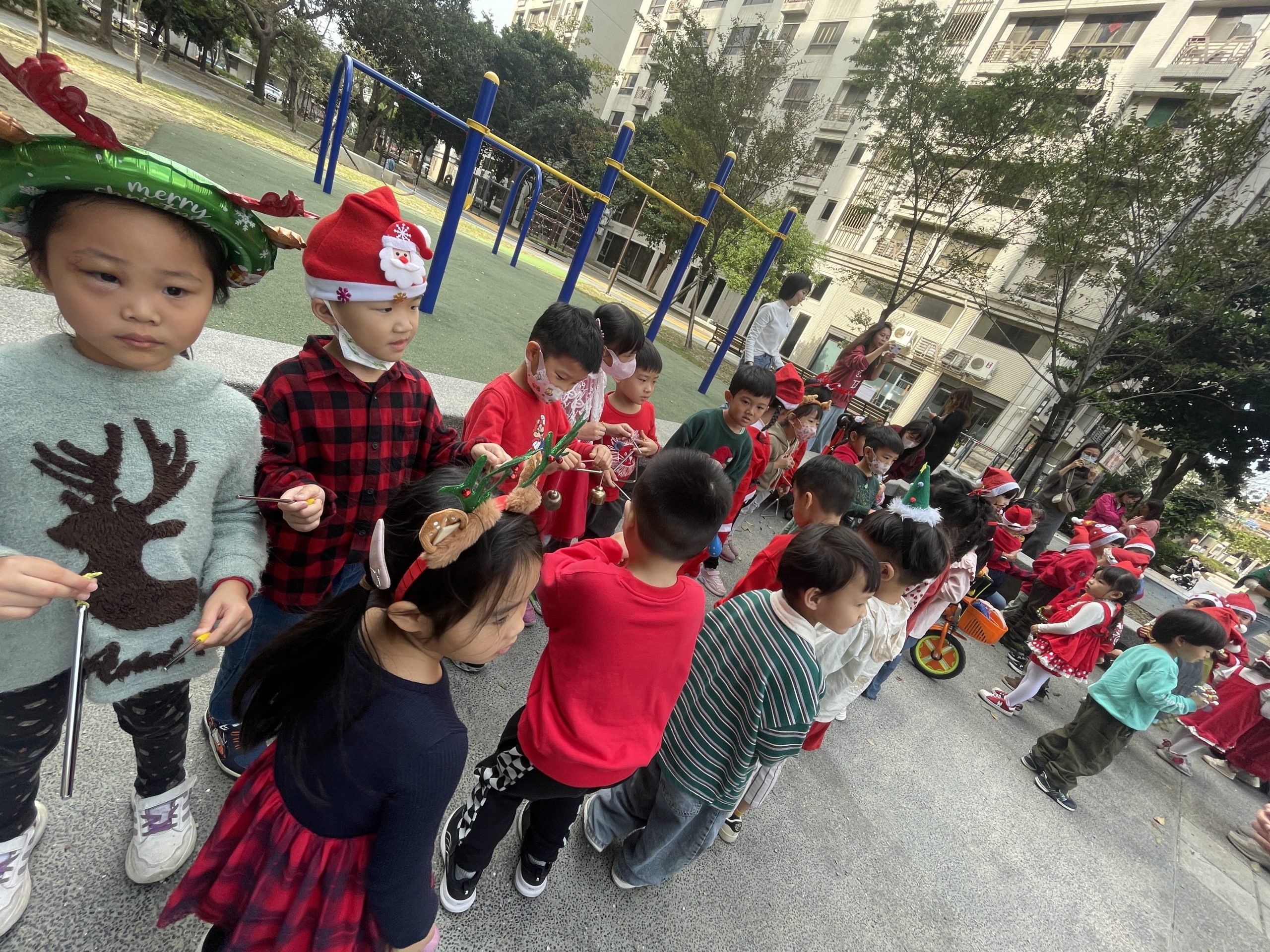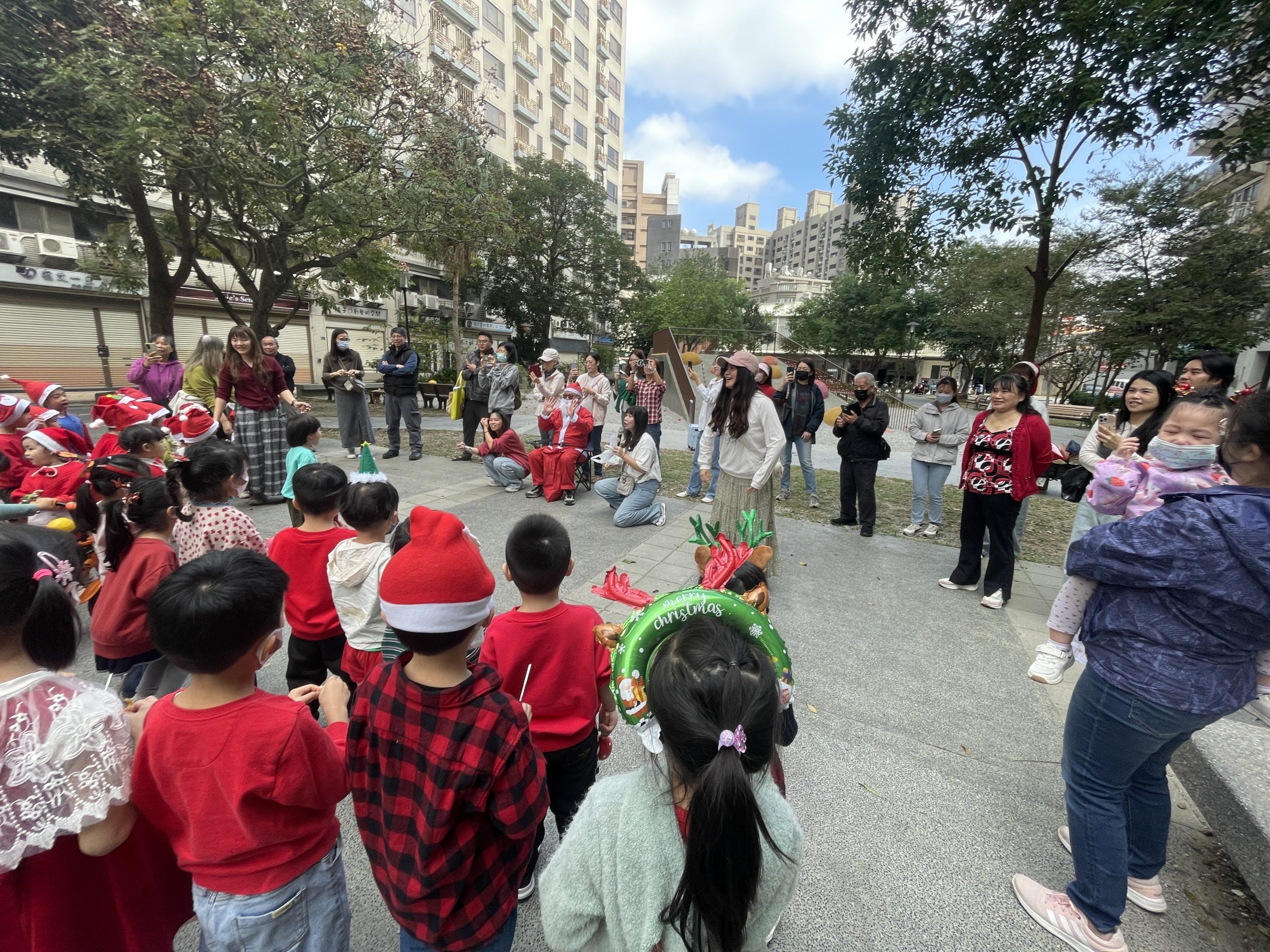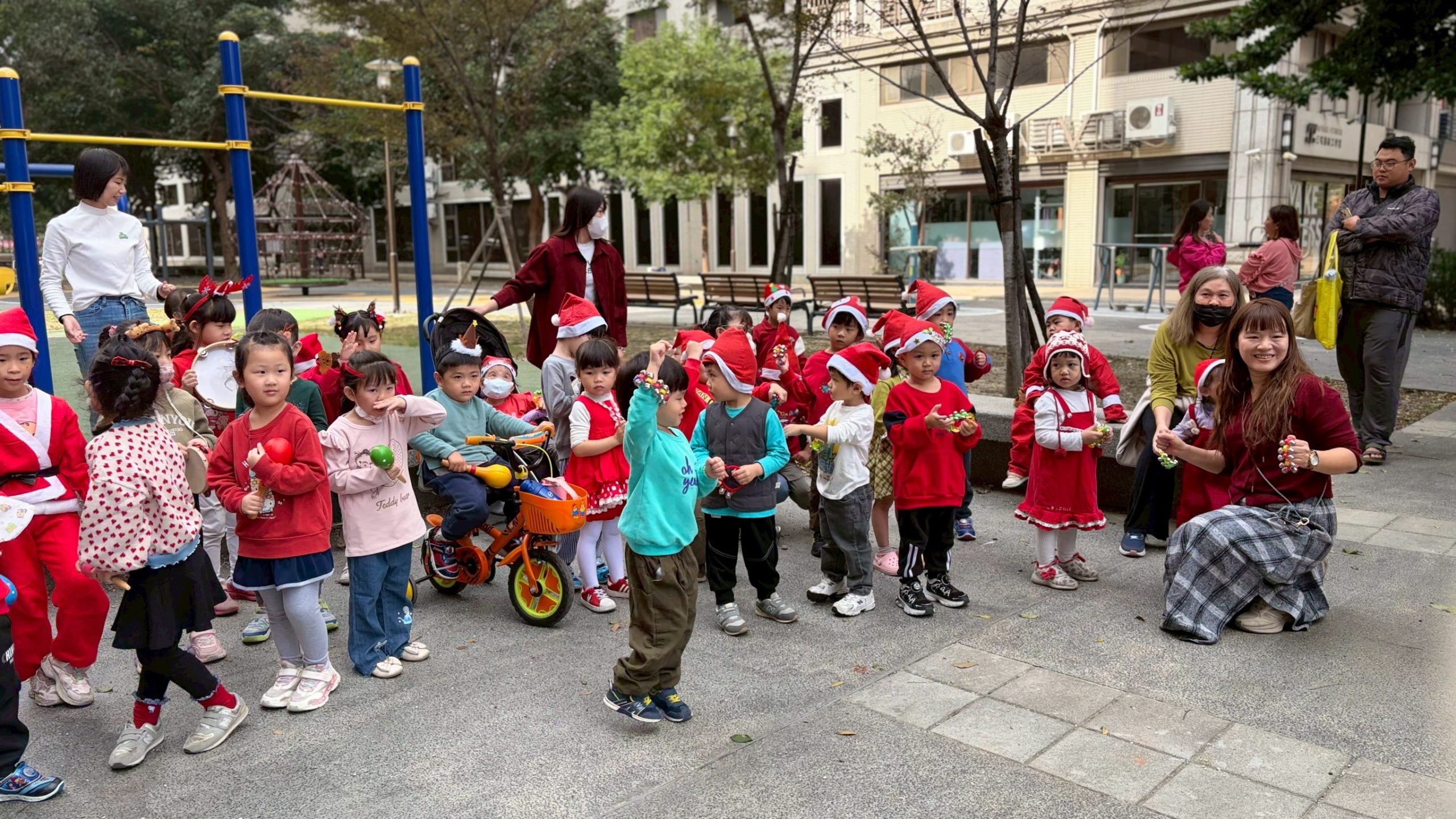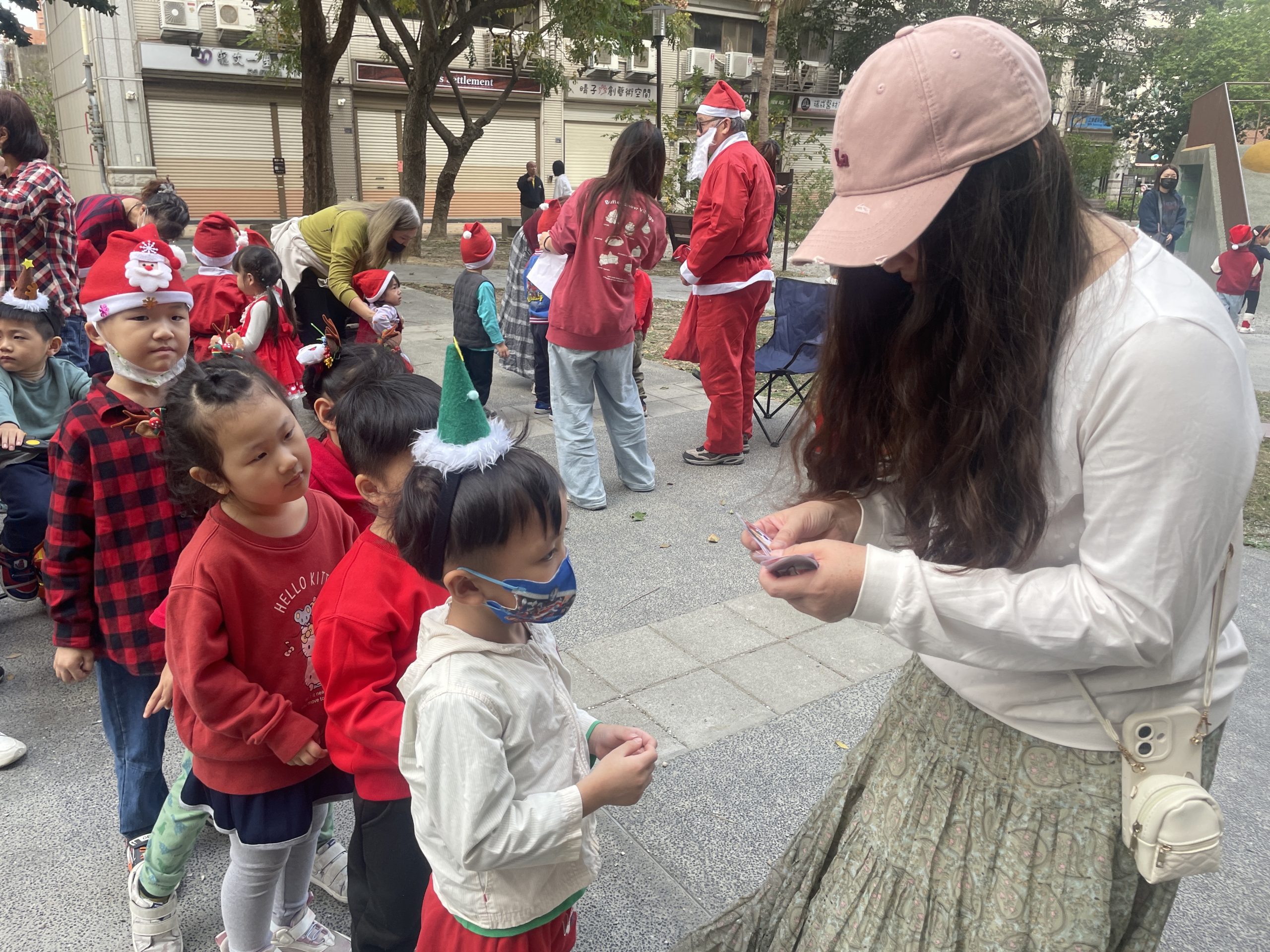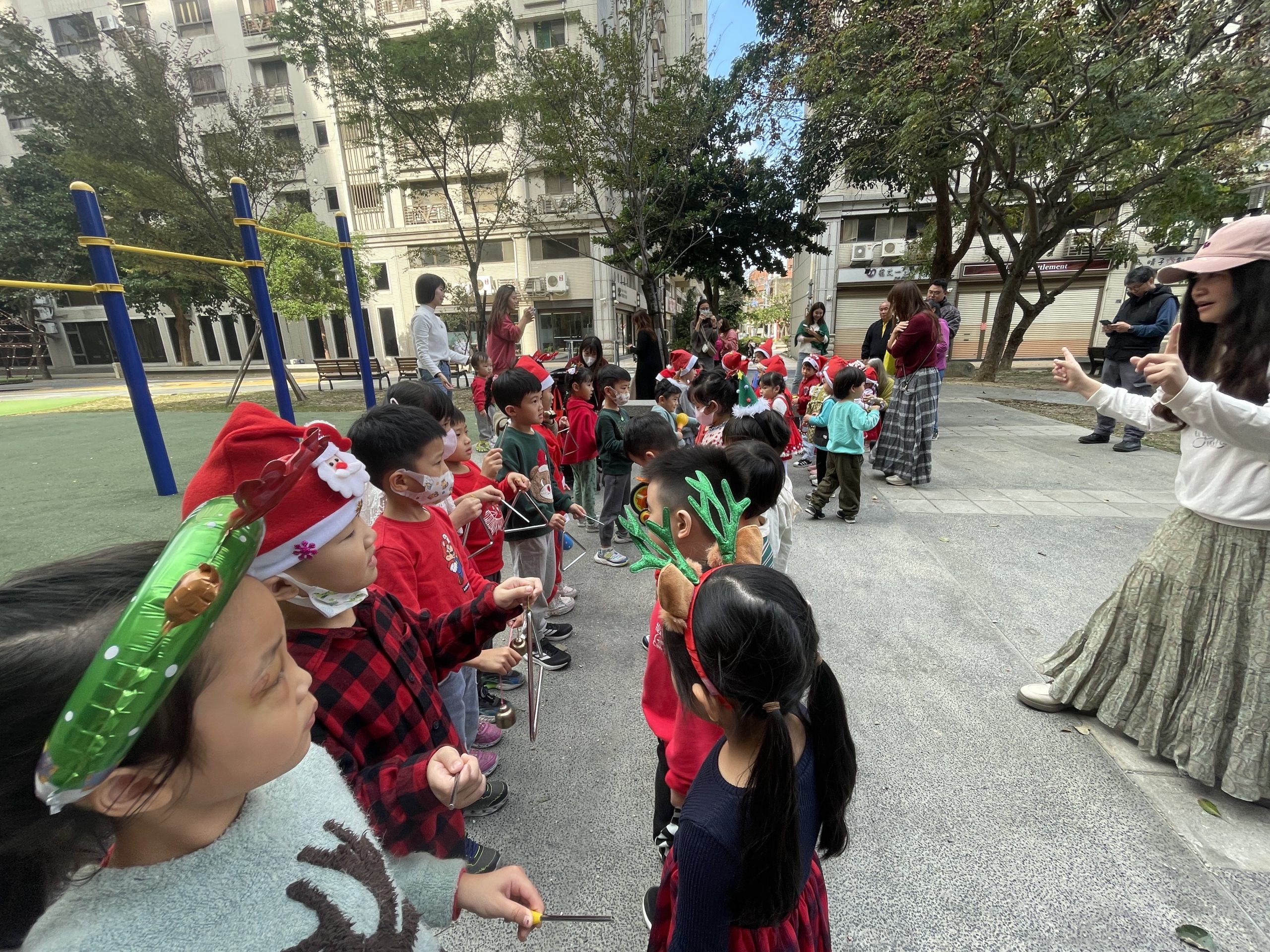 12/24 今天孩子們和綿羊班弟弟妹妹一起去社區報佳音,7-11的叔叔阿姨、學品的主任老師和和平公園的家長們,都開心為寶貝的表演喝采,感受愛與喜樂的聖誕節慶氛圍~。