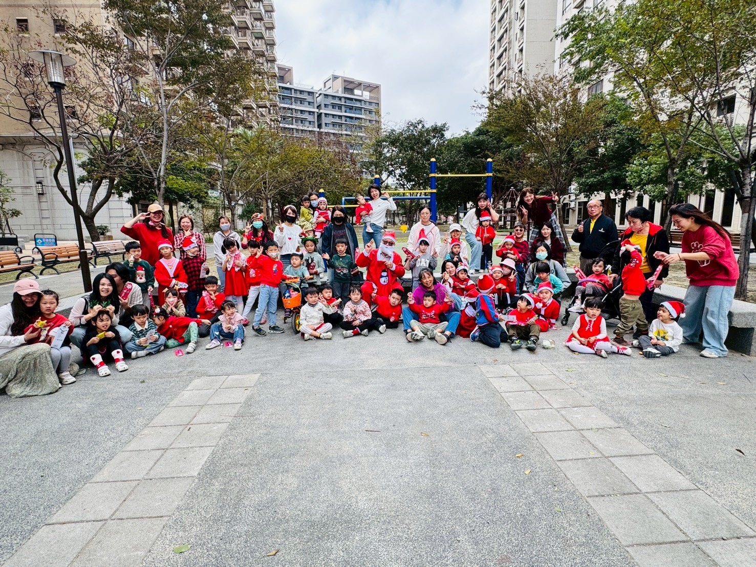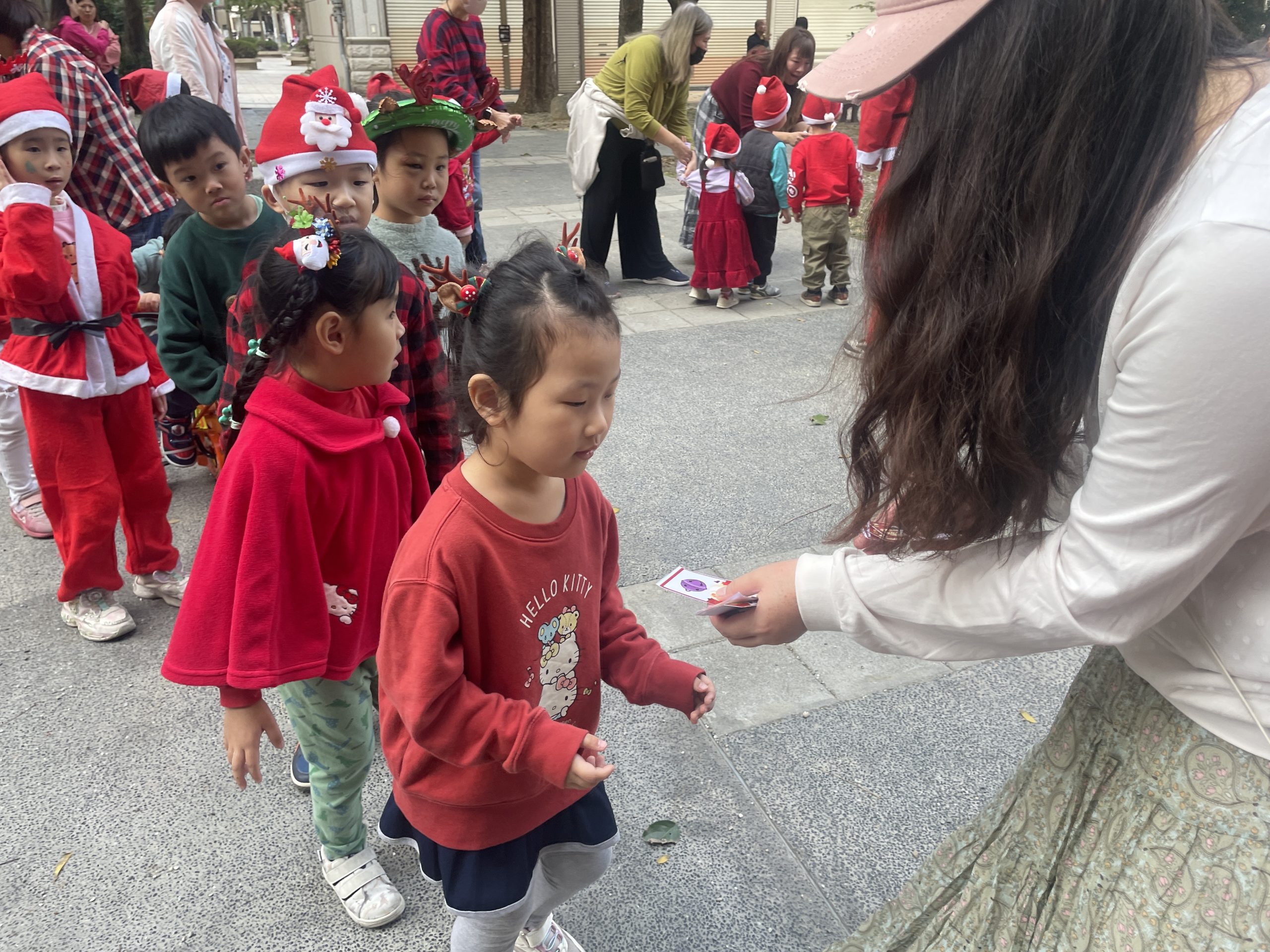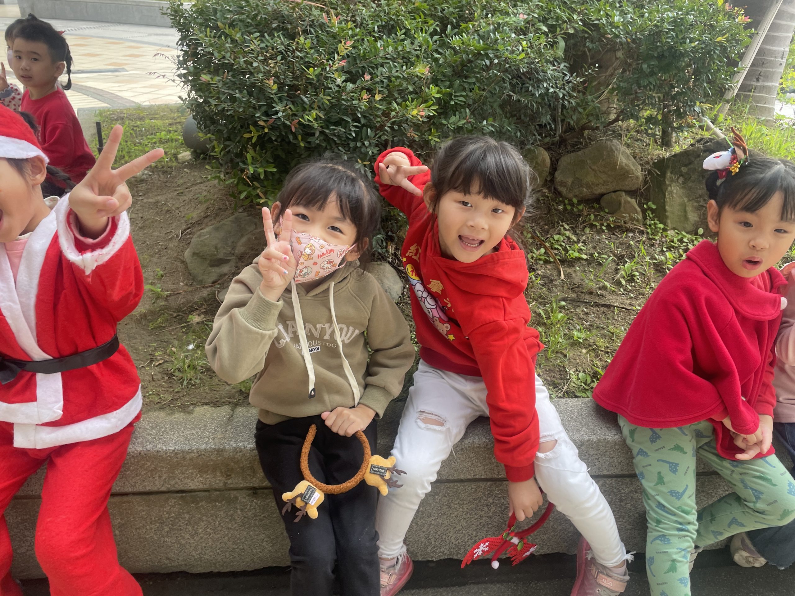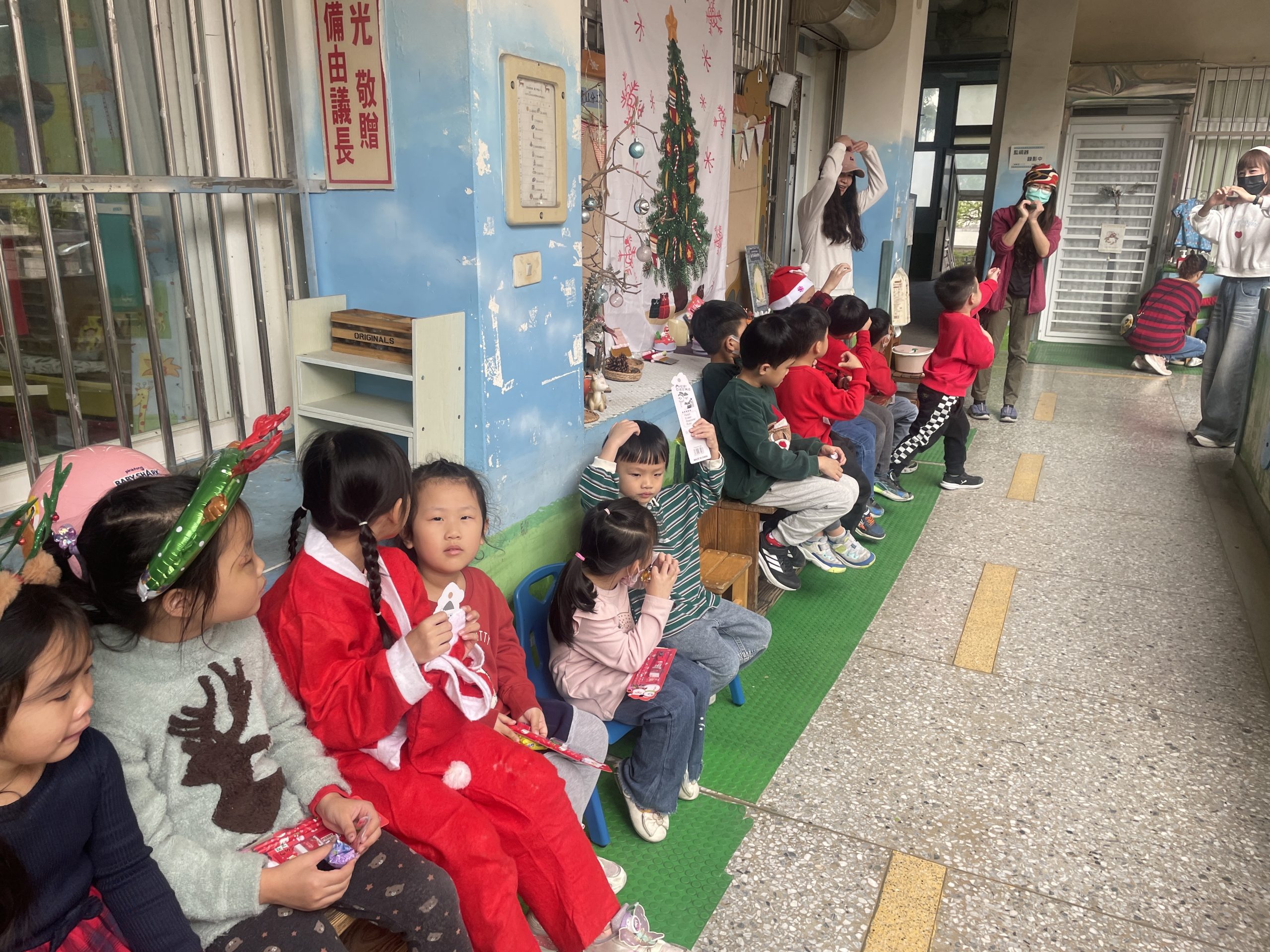 12/24 今天孩子們和綿羊班弟弟妹妹一起去社區報佳音,7-11的叔叔阿姨、學品的主任老師和和平公園的家長們,都開心為寶貝的表演喝采,感受愛與喜樂的聖誕節慶氛圍~。