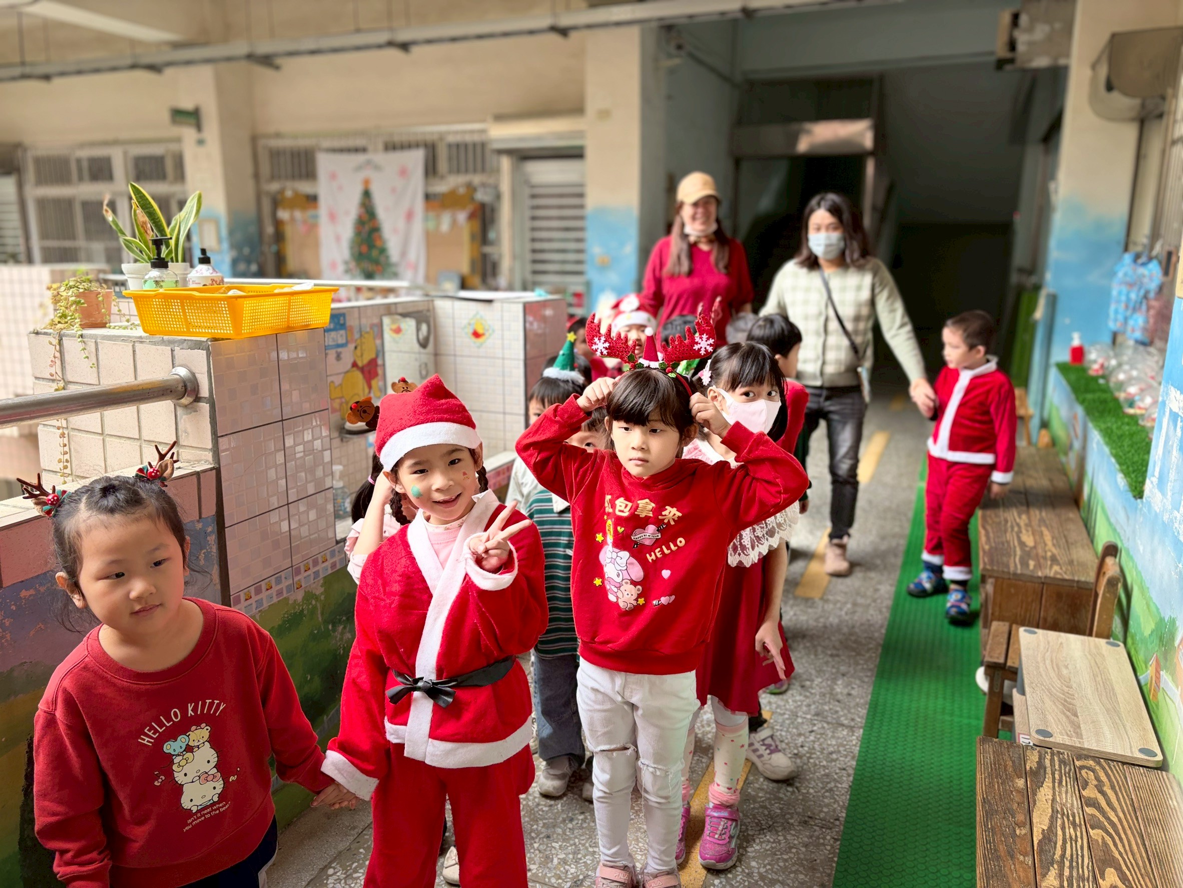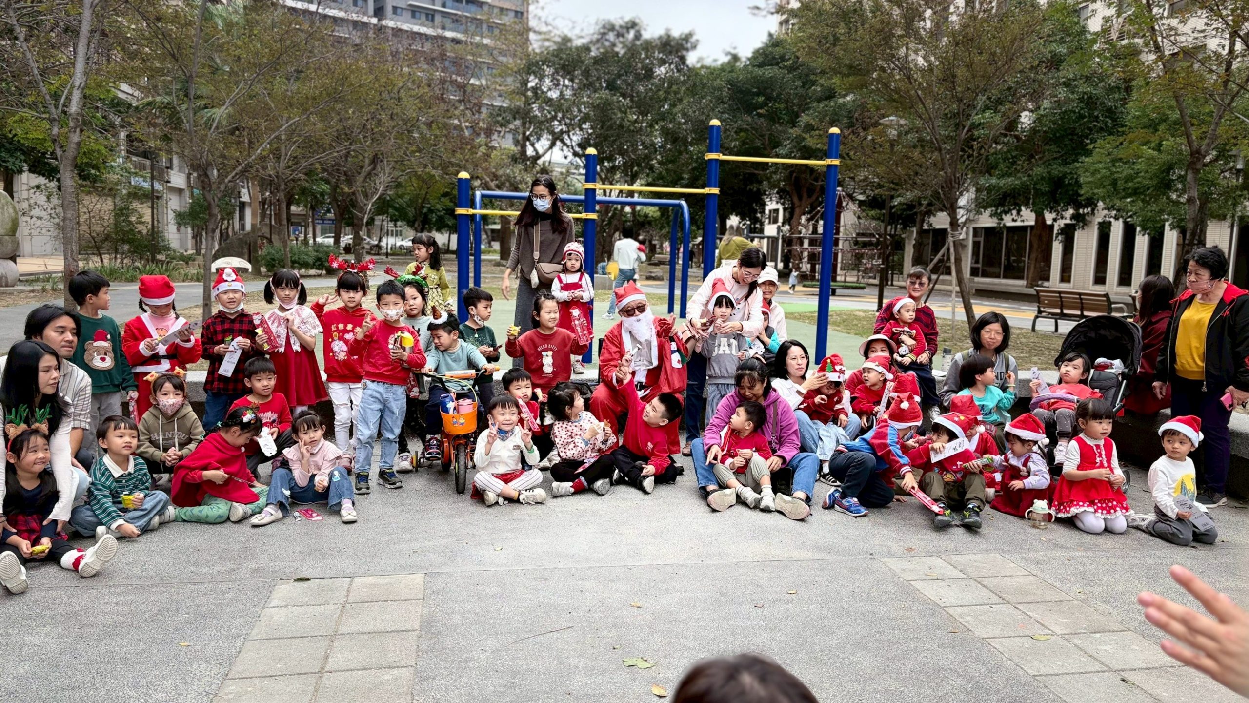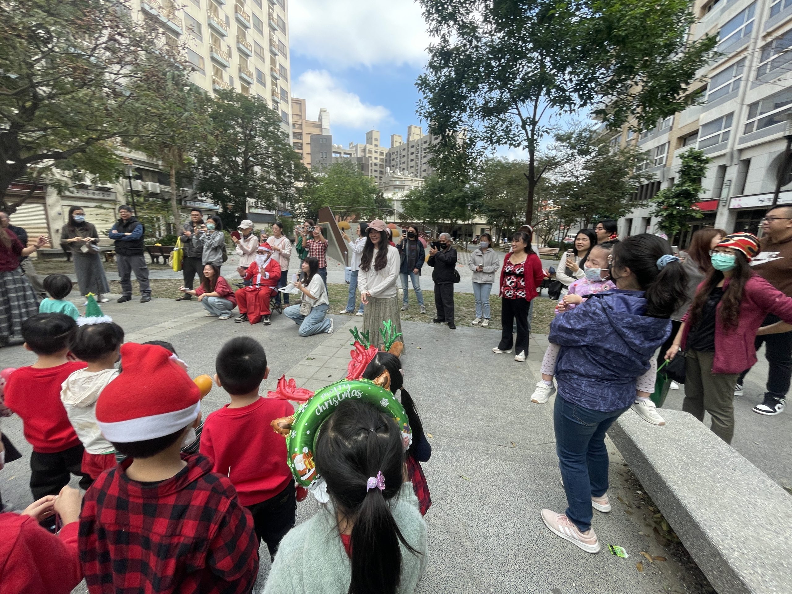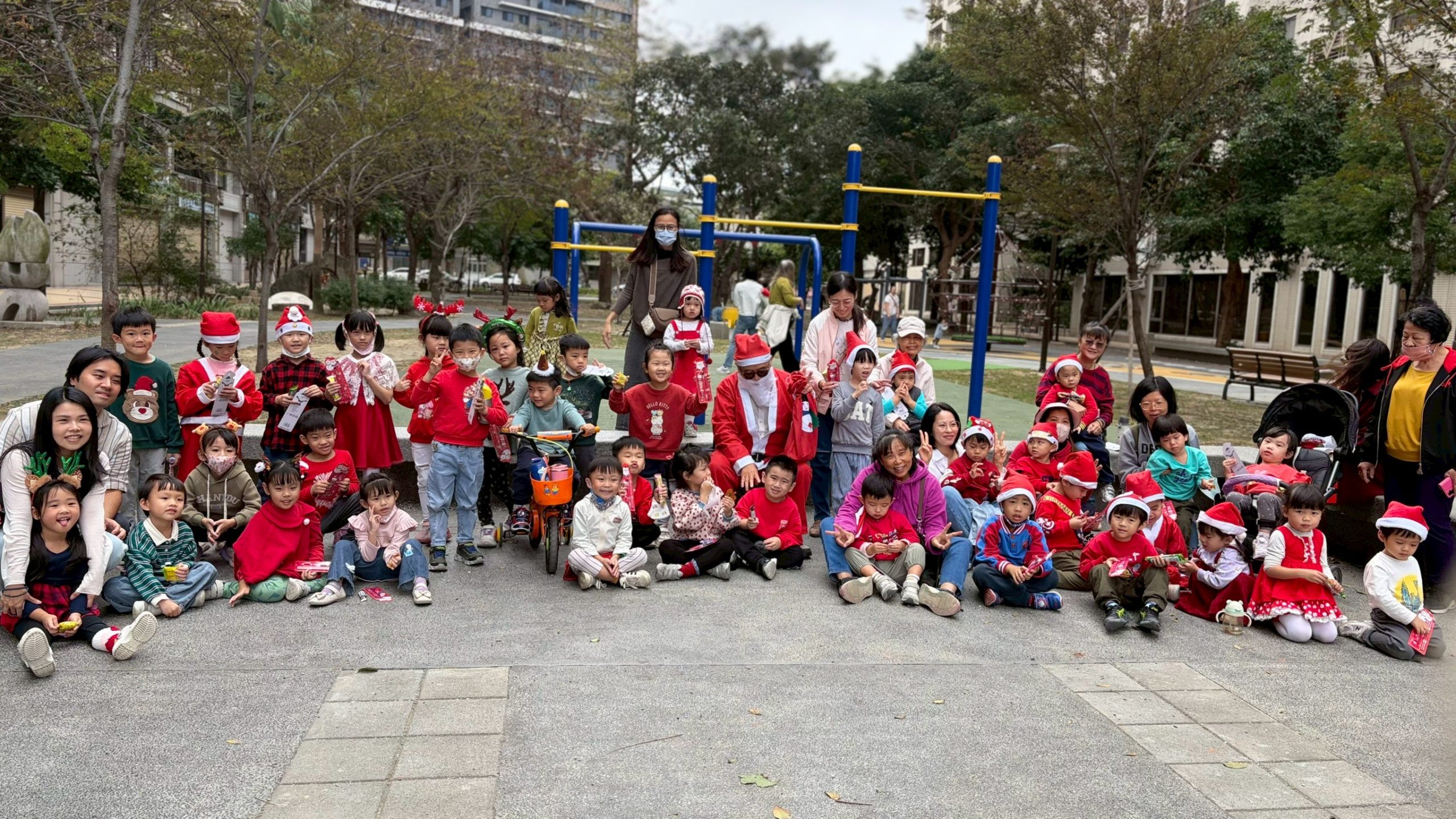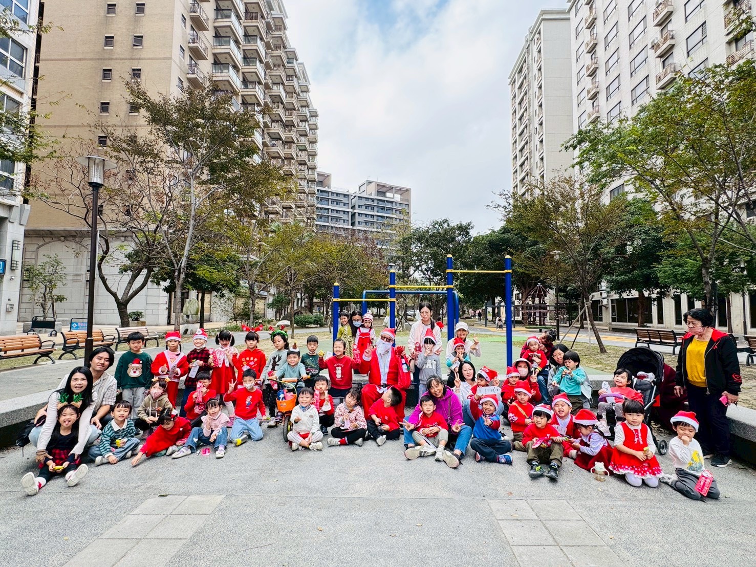 12/24 今天孩子們和綿羊班弟弟妹妹一起去社區報佳音,7-11的叔叔阿姨、學品的主任老師和和平公園的家長們,都開心為寶貝的表演喝采,感受愛與喜樂的聖誕節慶氛圍~。