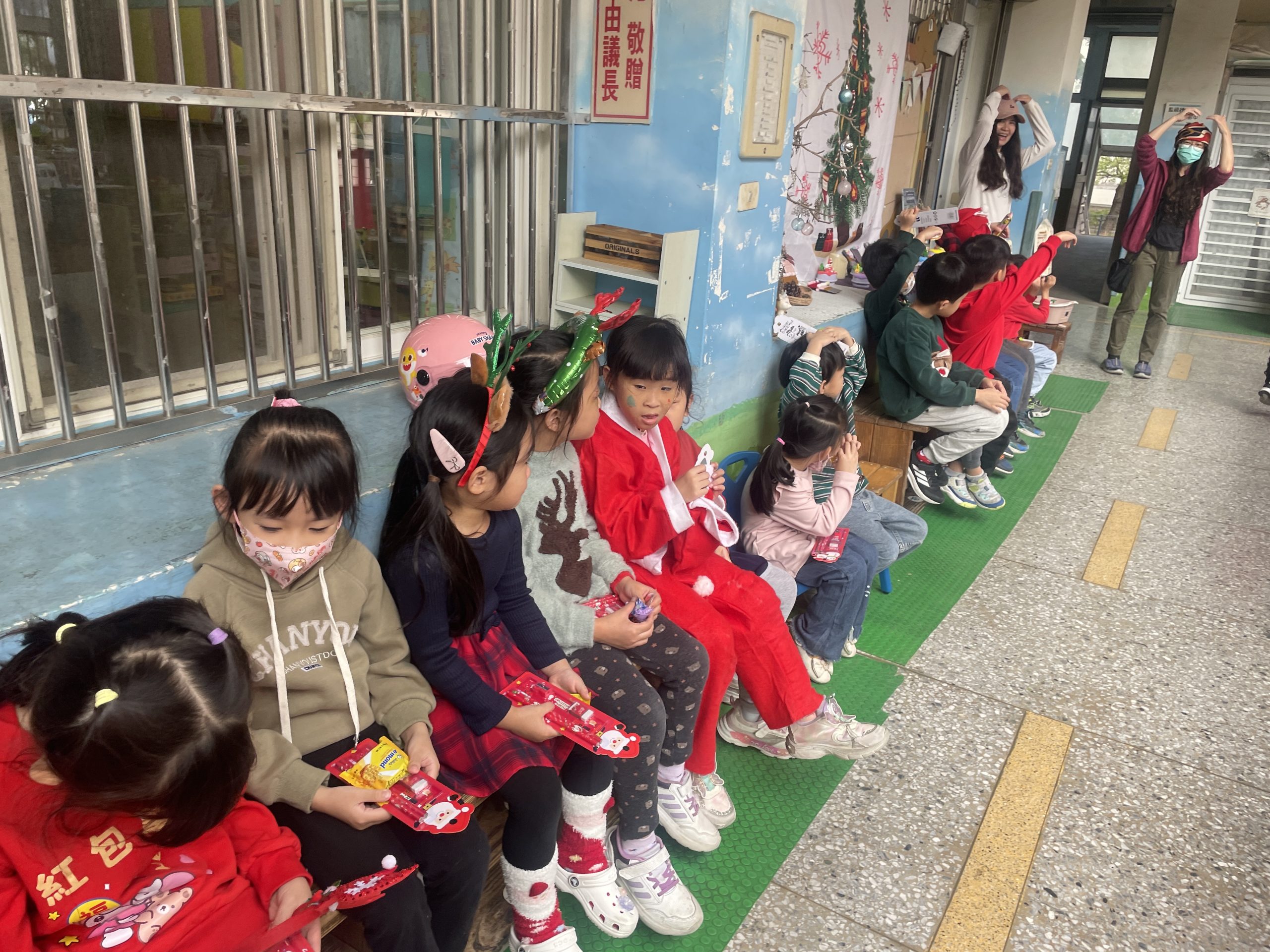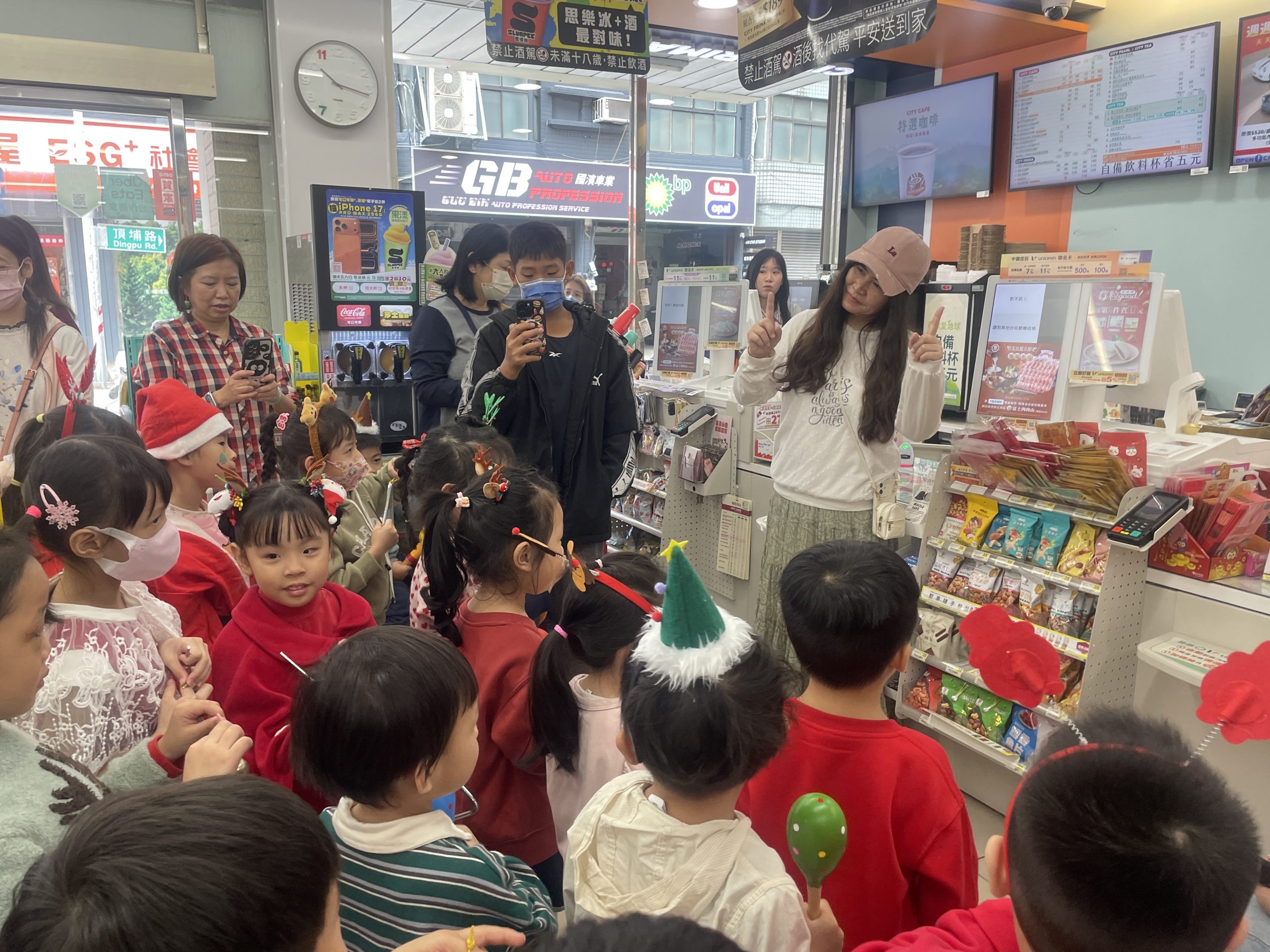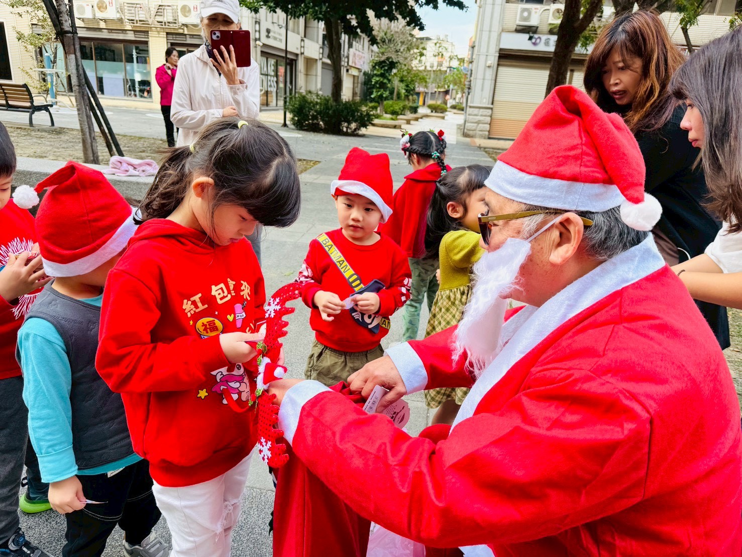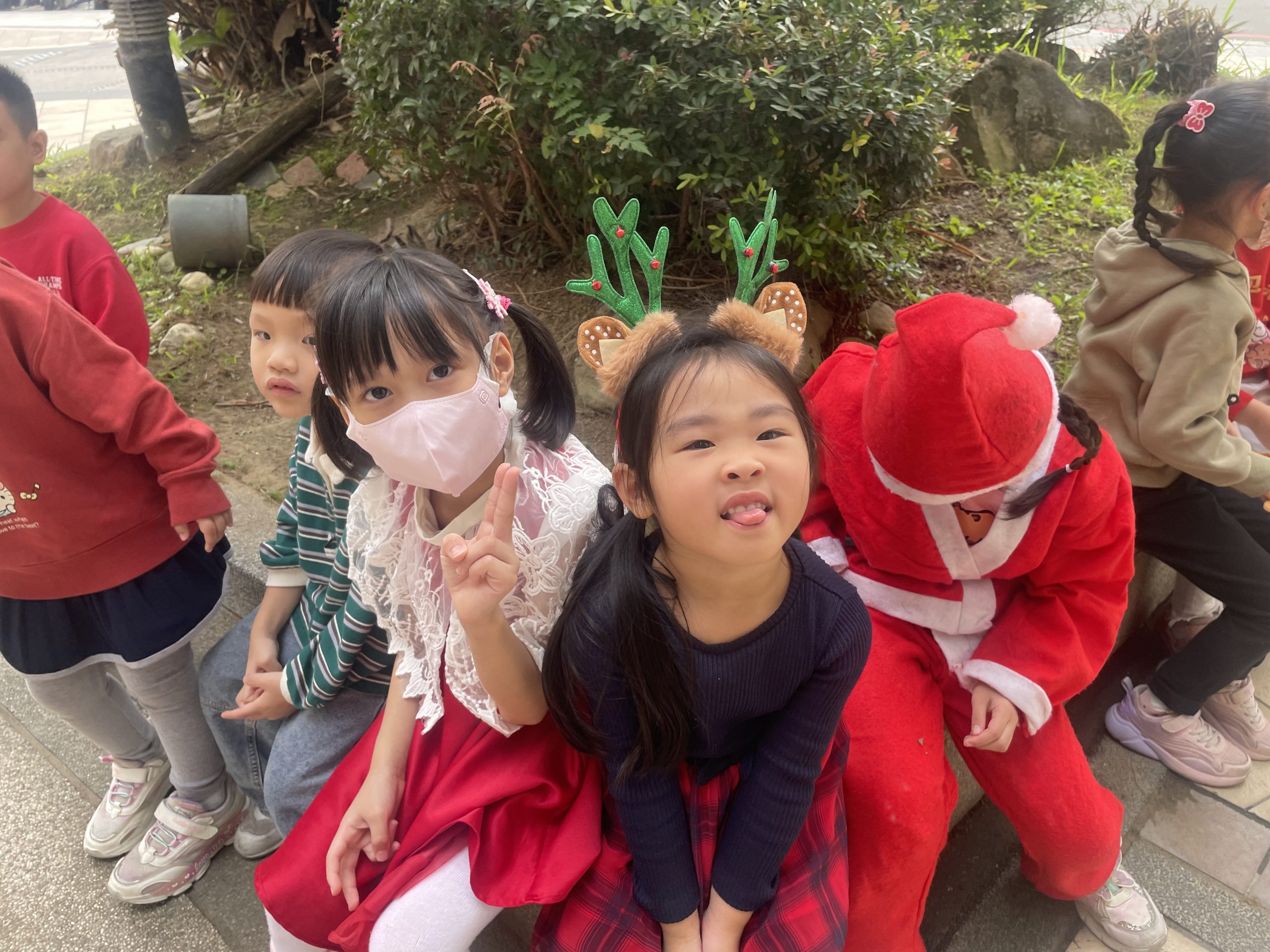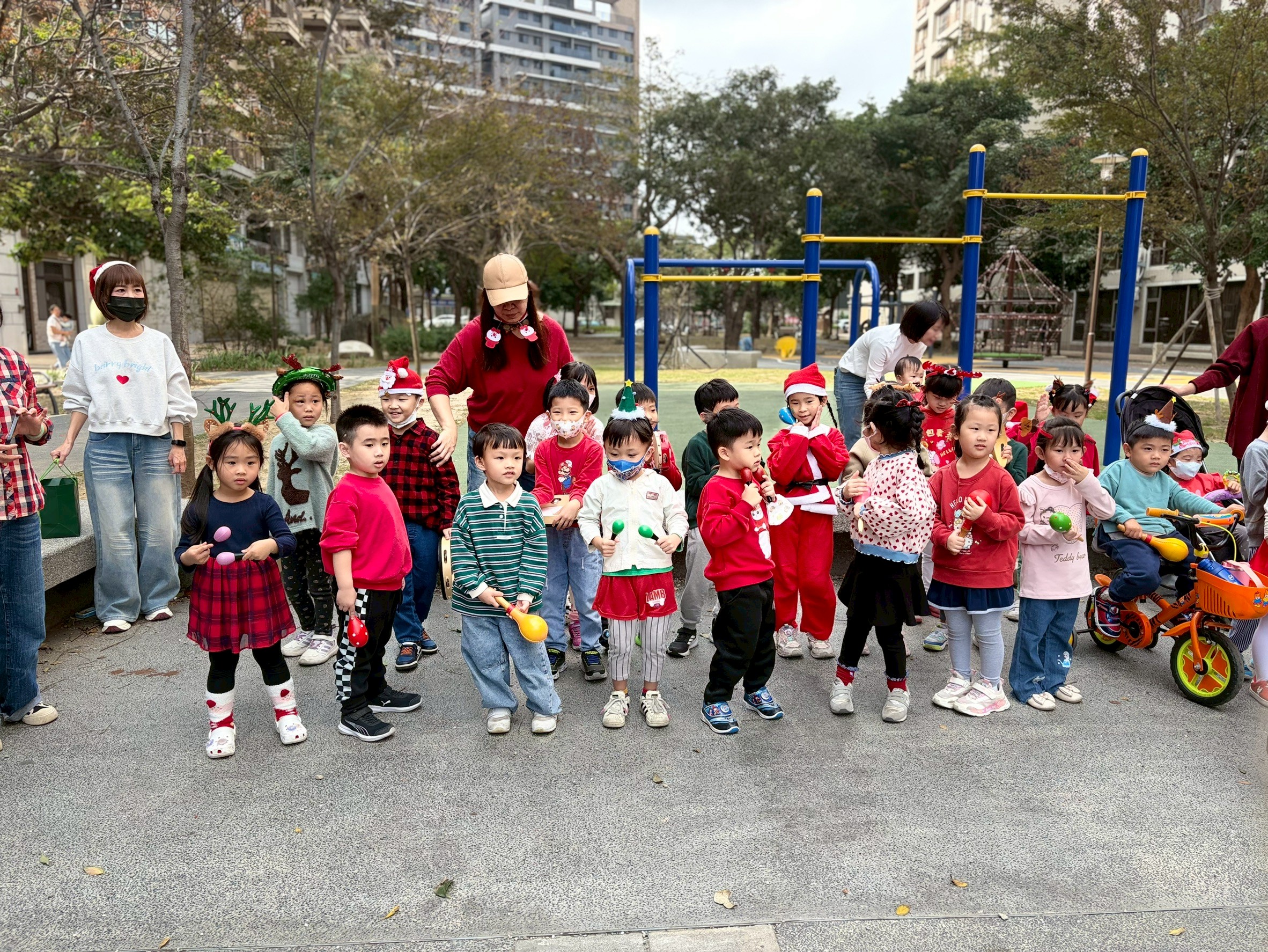 12/24 今天孩子們和綿羊班弟弟妹妹一起去社區報佳音,7-11的叔叔阿姨、學品的主任老師和和平公園的家長們,都開心為寶貝的表演喝采,感受愛與喜樂的聖誕節慶氛圍~。