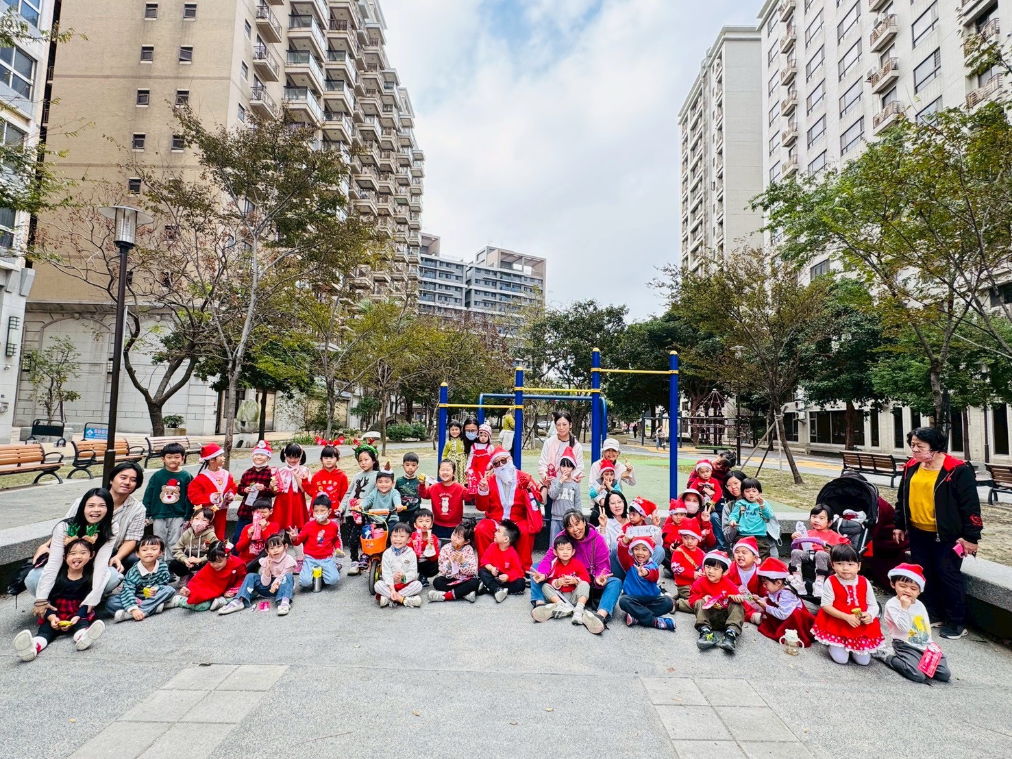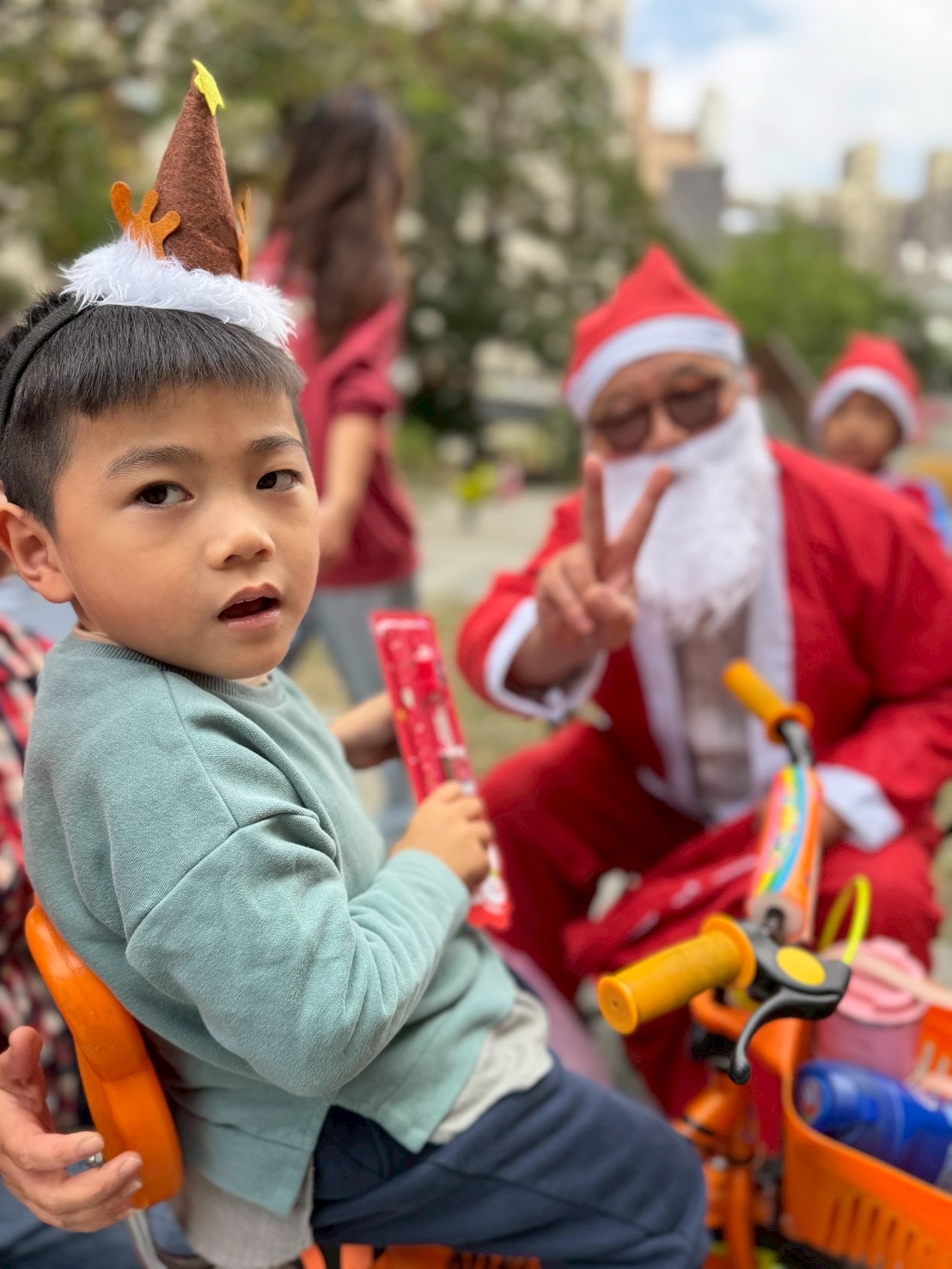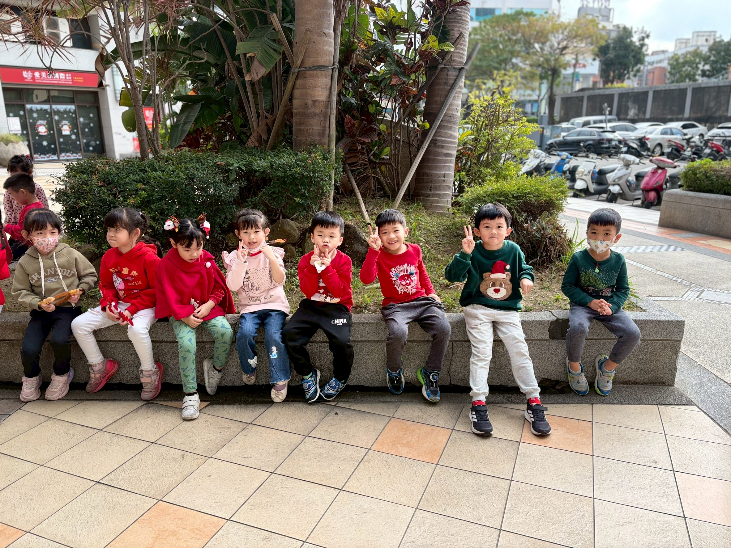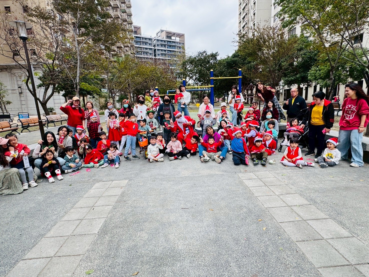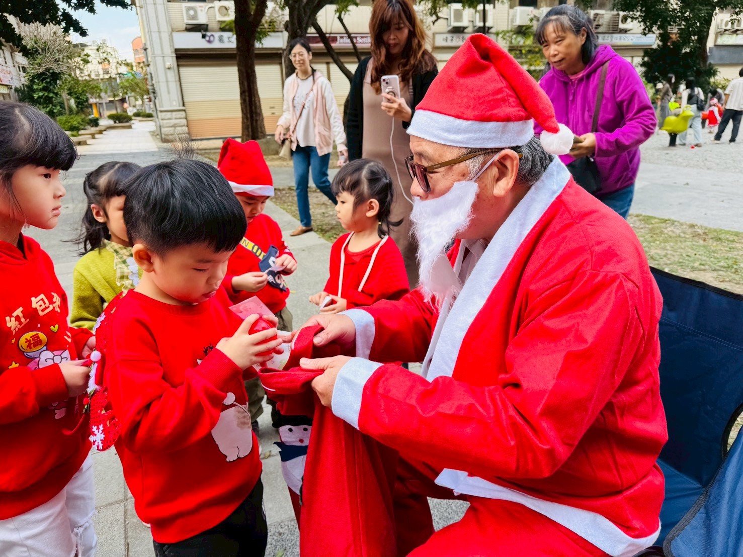 12/24 今天孩子們和綿羊班弟弟妹妹一起去社區報佳音,7-11的叔叔阿姨、學品的主任老師和和平公園的家長們,都開心為寶貝的表演喝采,感受愛與喜樂的聖誕節慶氛圍~。