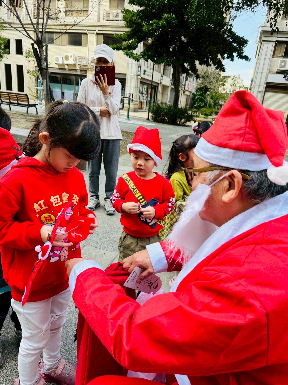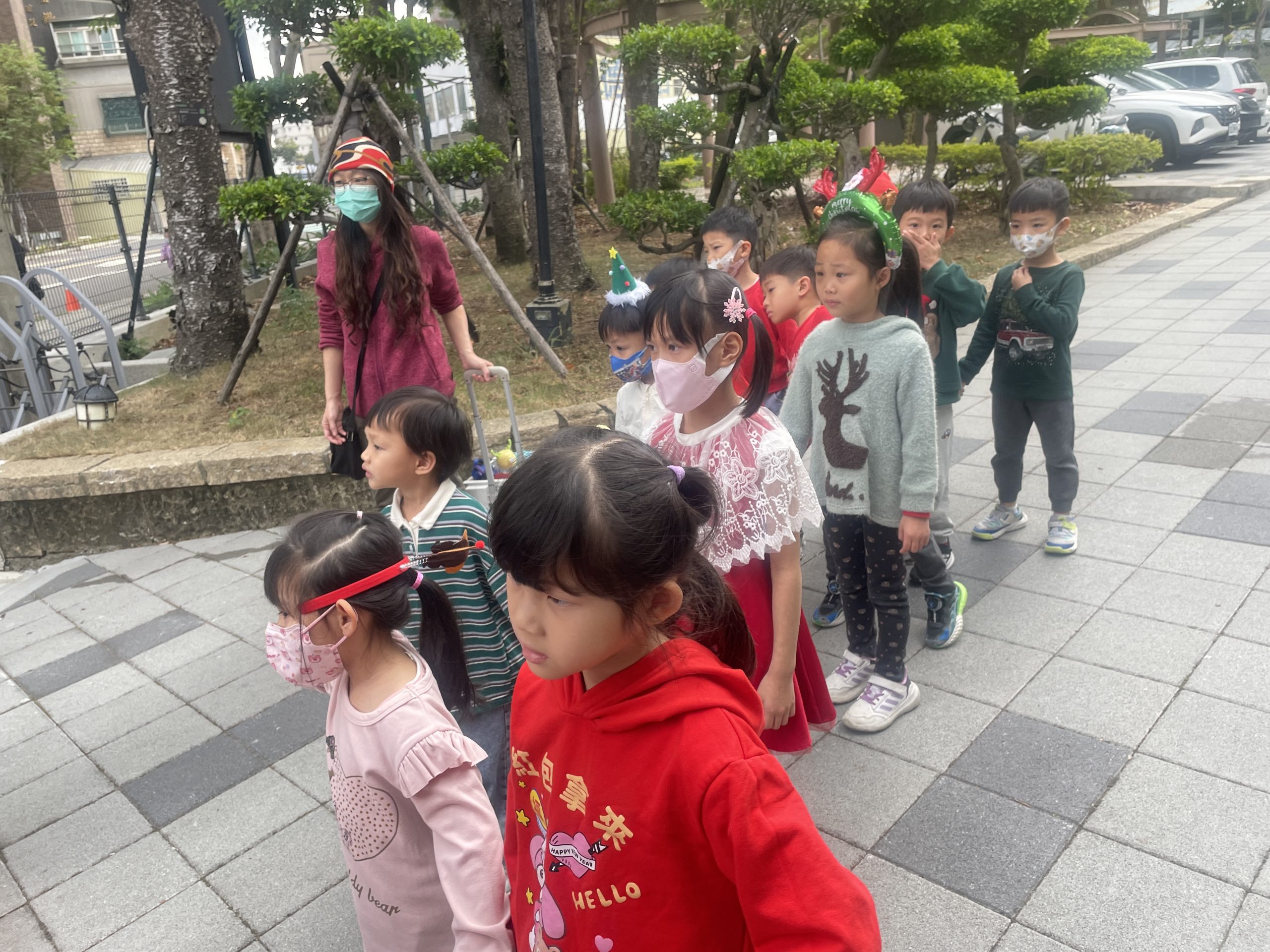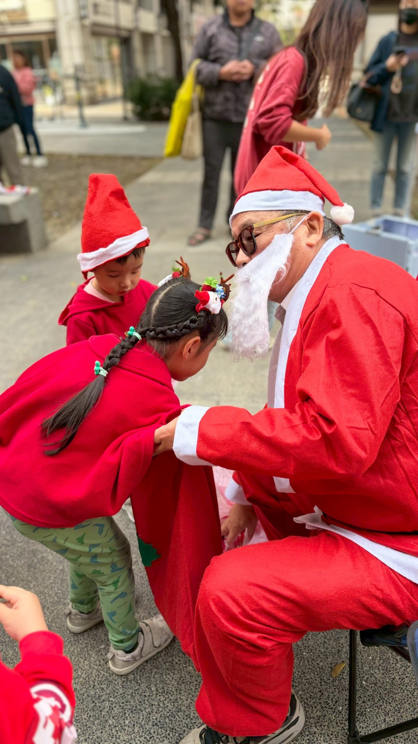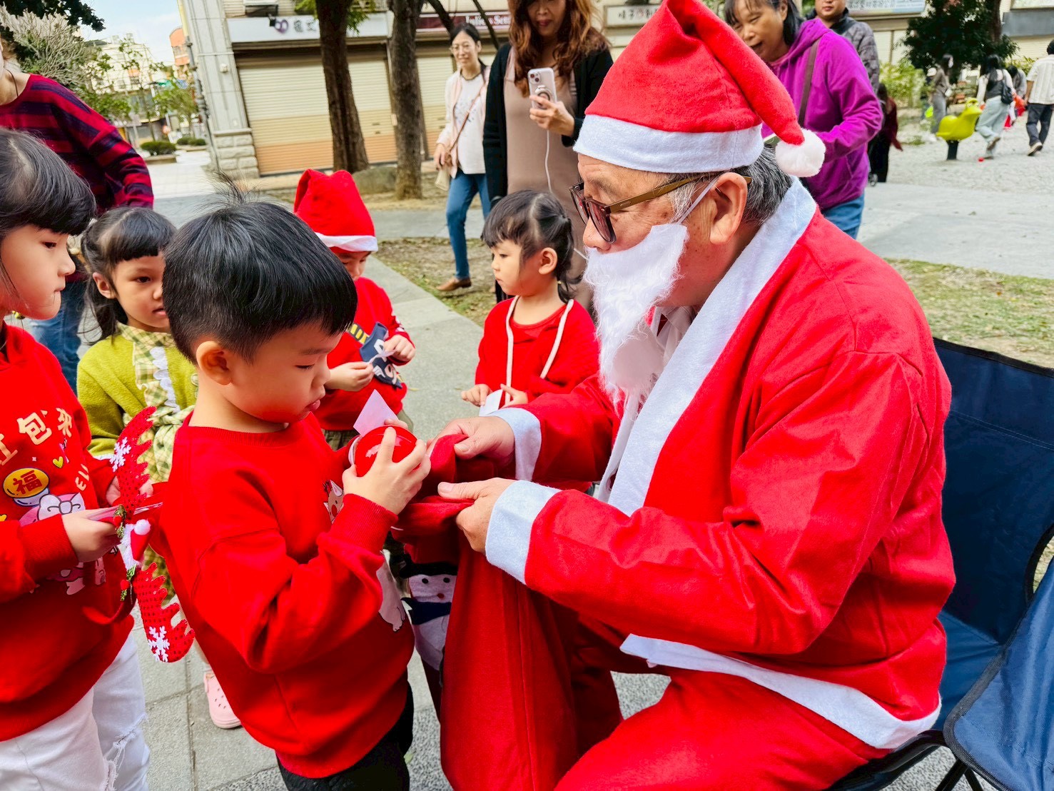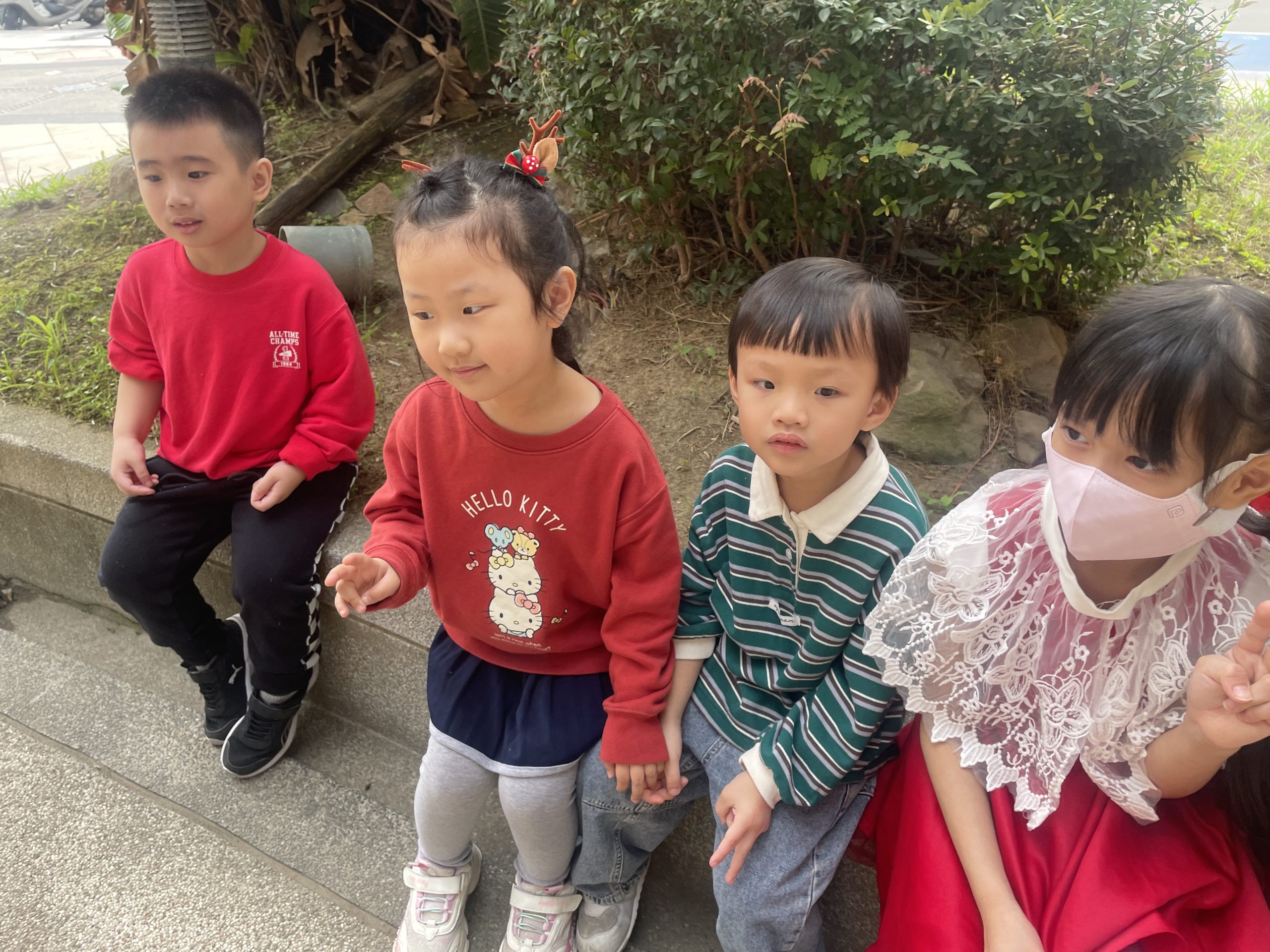 12/24 今天孩子們和綿羊班弟弟妹妹一起去社區報佳音,7-11的叔叔阿姨、學品的主任老師和和平公園的家長們,都開心為寶貝的表演喝采,感受愛與喜樂的聖誕節慶氛圍~。
