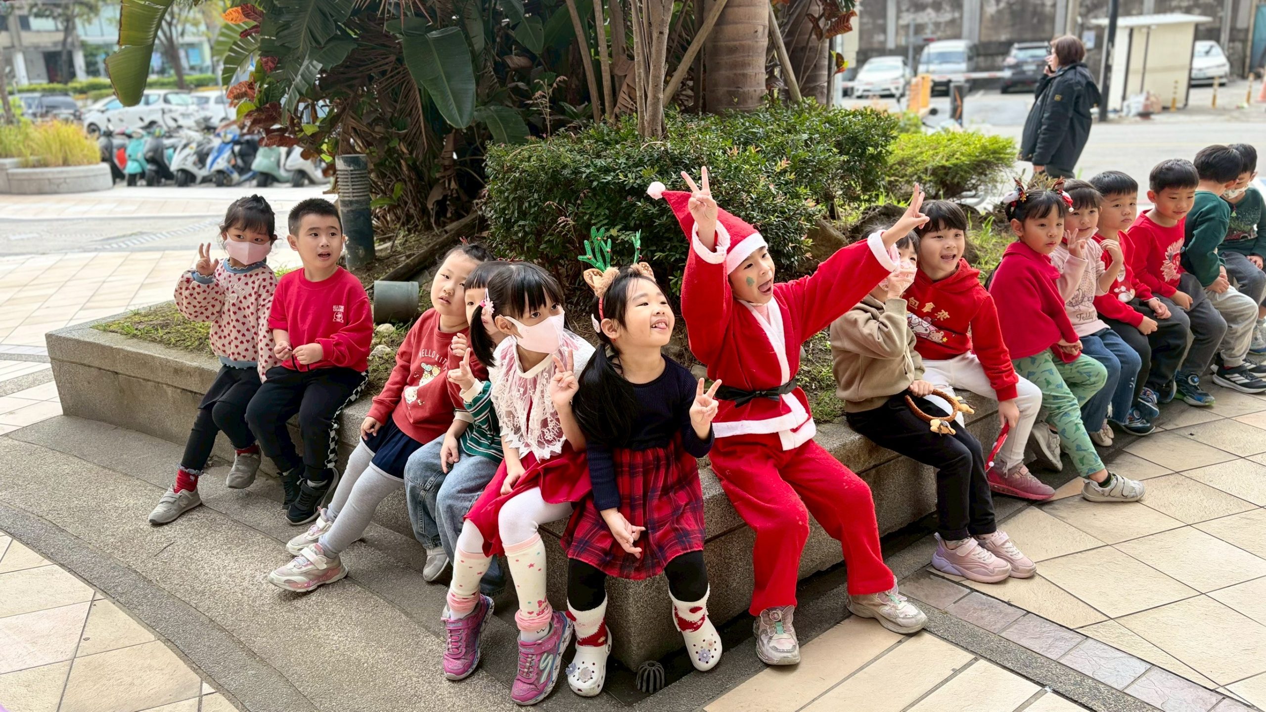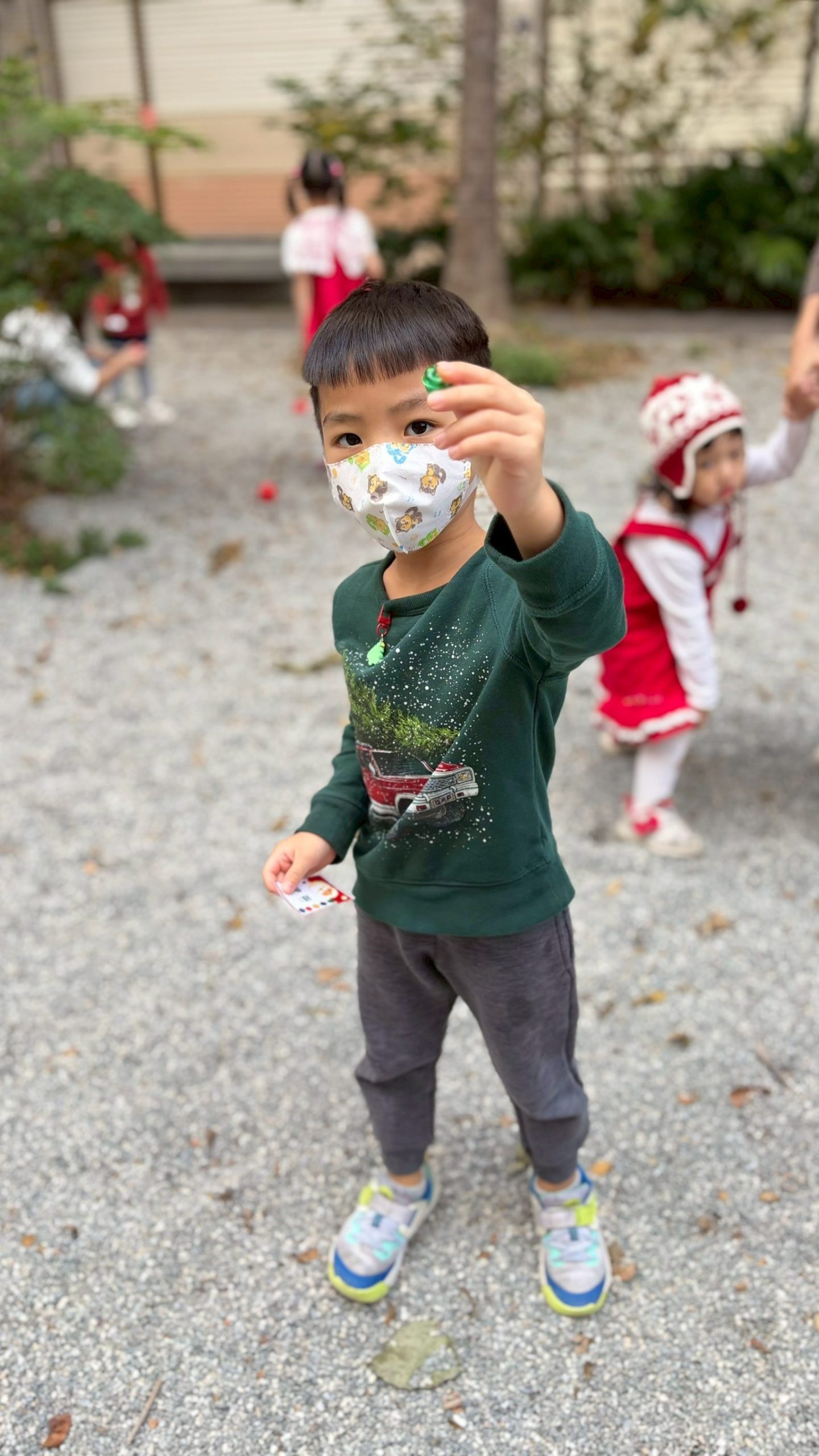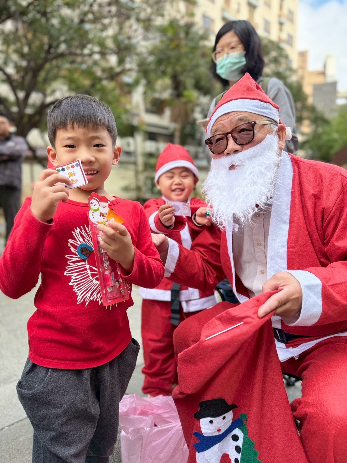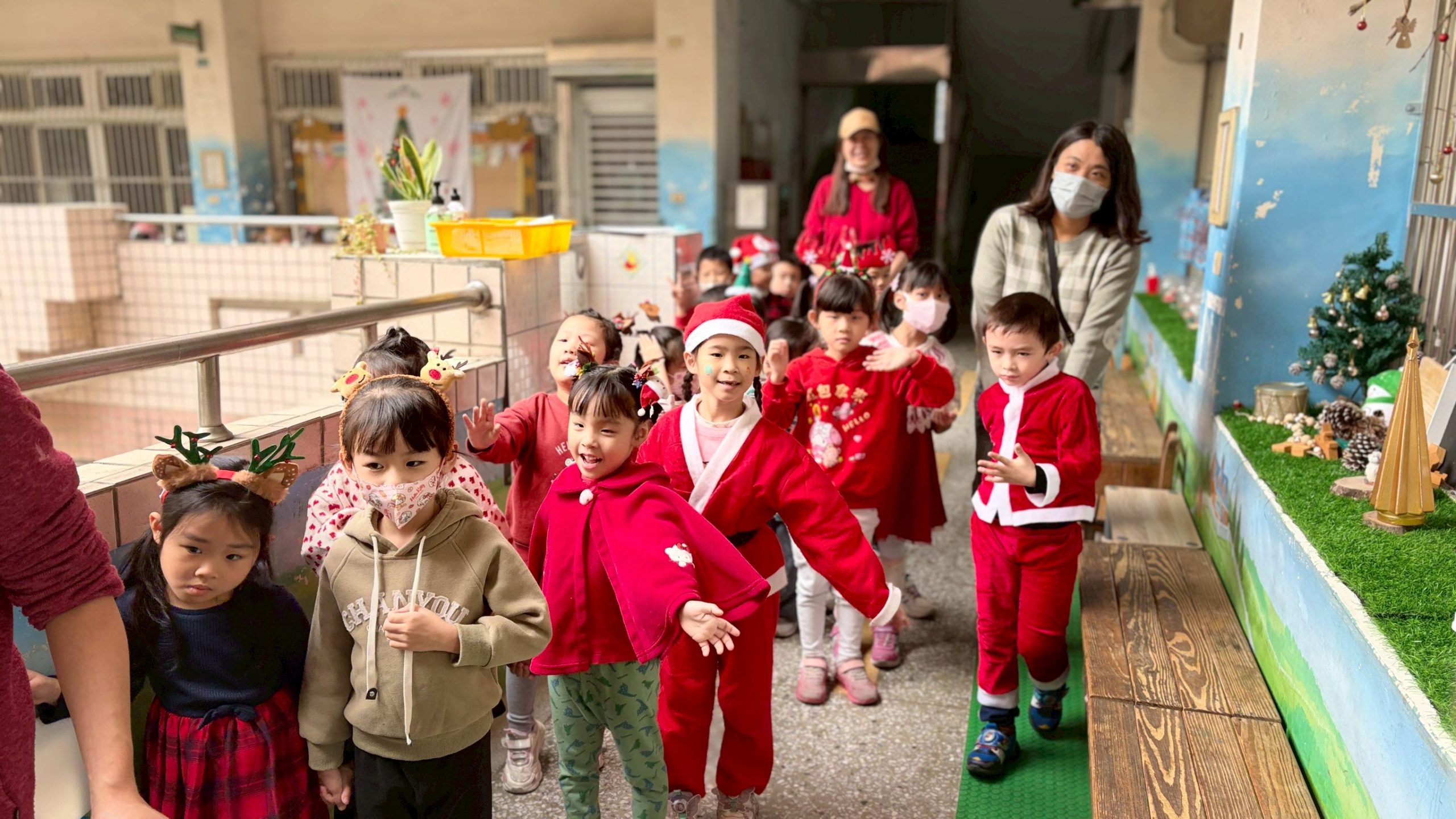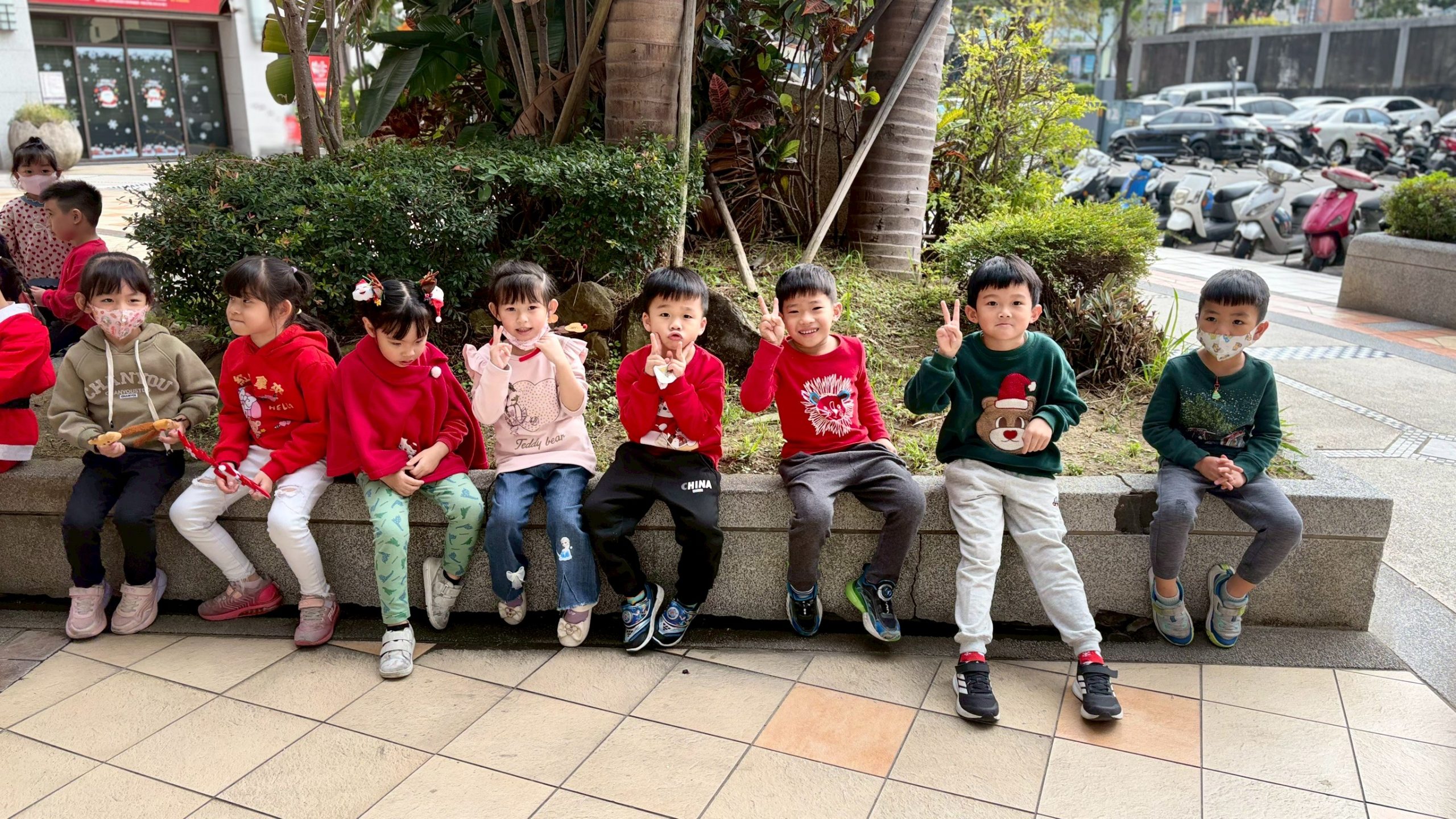 12/24 今天孩子們和綿羊班弟弟妹妹一起去社區報佳音,7-11的叔叔阿姨、學品的主任老師和和平公園的家長們,都開心為寶貝的表演喝采,感受愛與喜樂的聖誕節慶氛圍~。