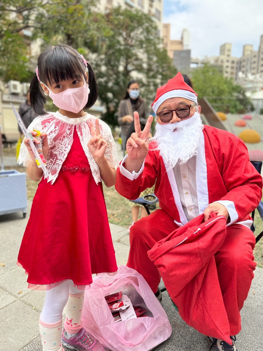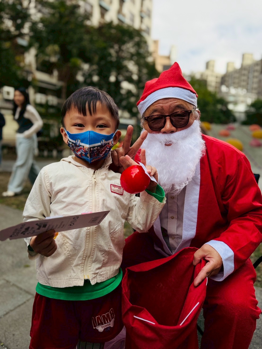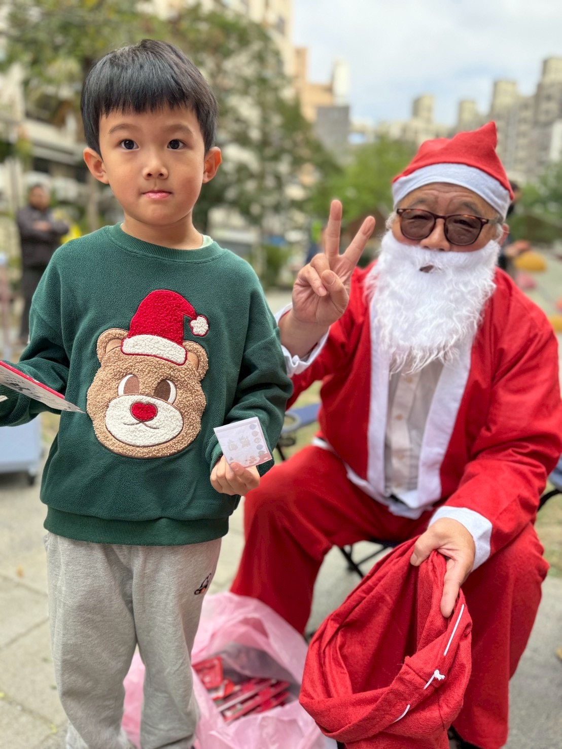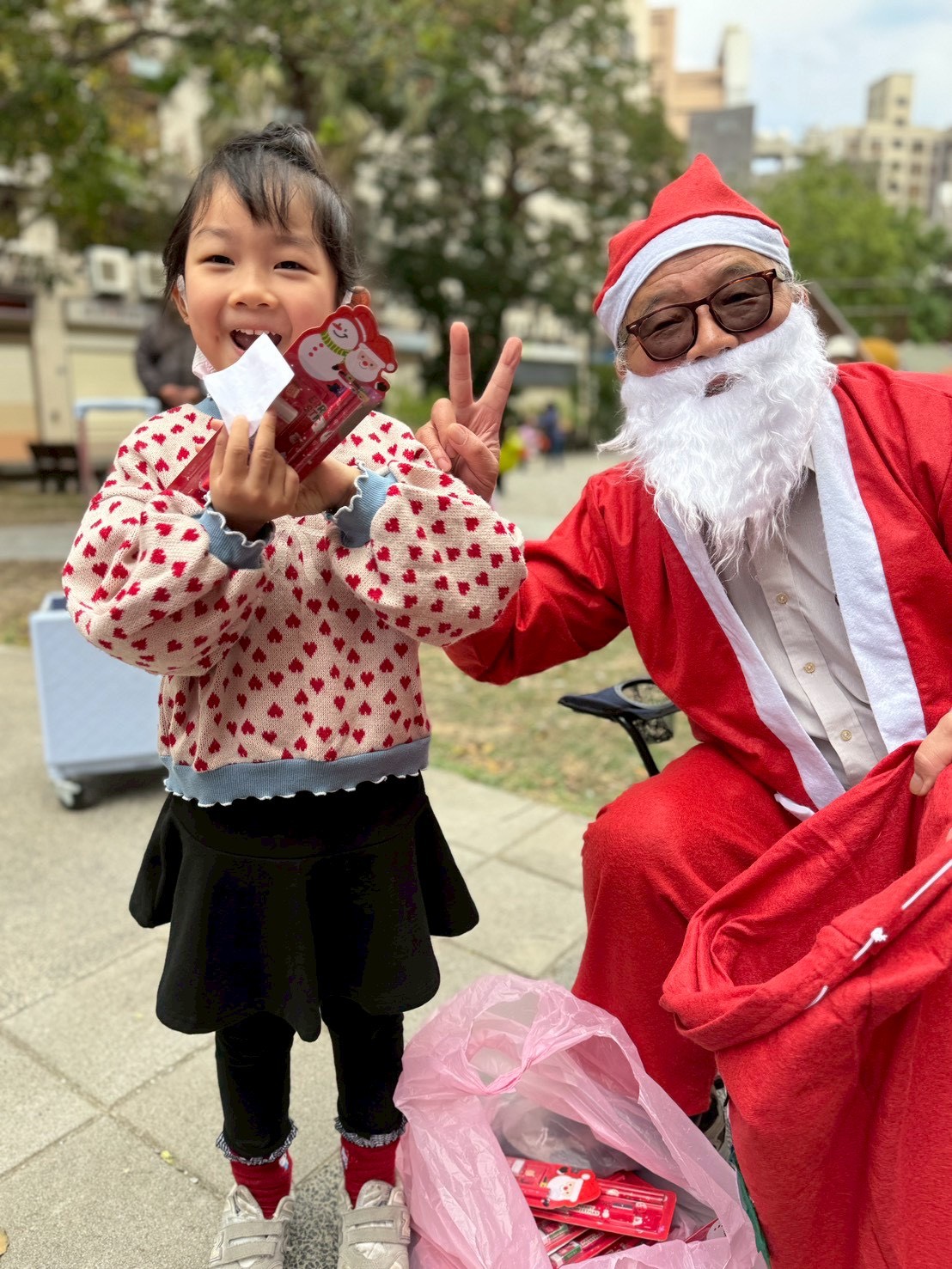 12/24 今天孩子們和綿羊班弟弟妹妹一起去社區報佳音,7-11的叔叔阿姨、學品的主任老師和和平公園的家長們,都開心為寶貝的表演喝采,感受愛與喜樂的聖誕節慶氛圍~。