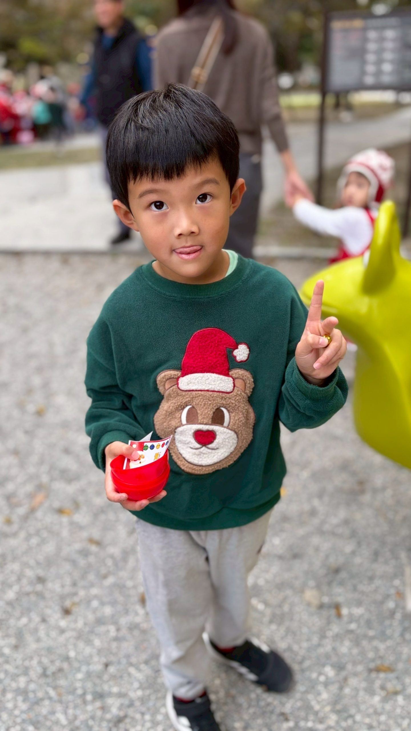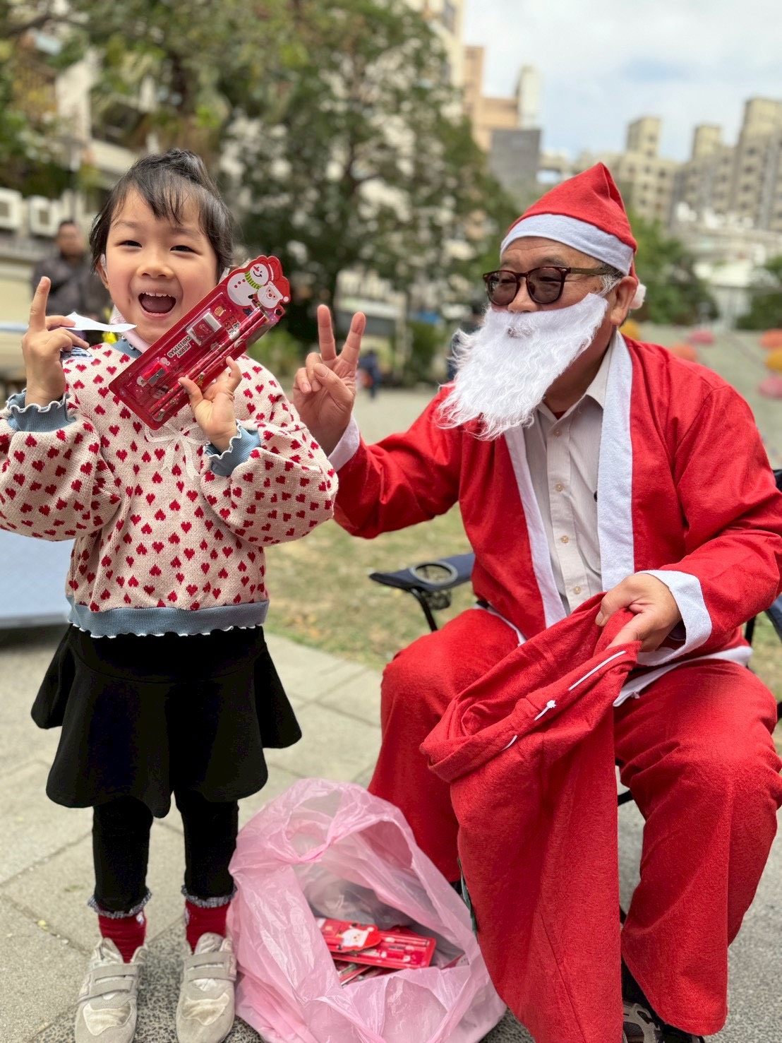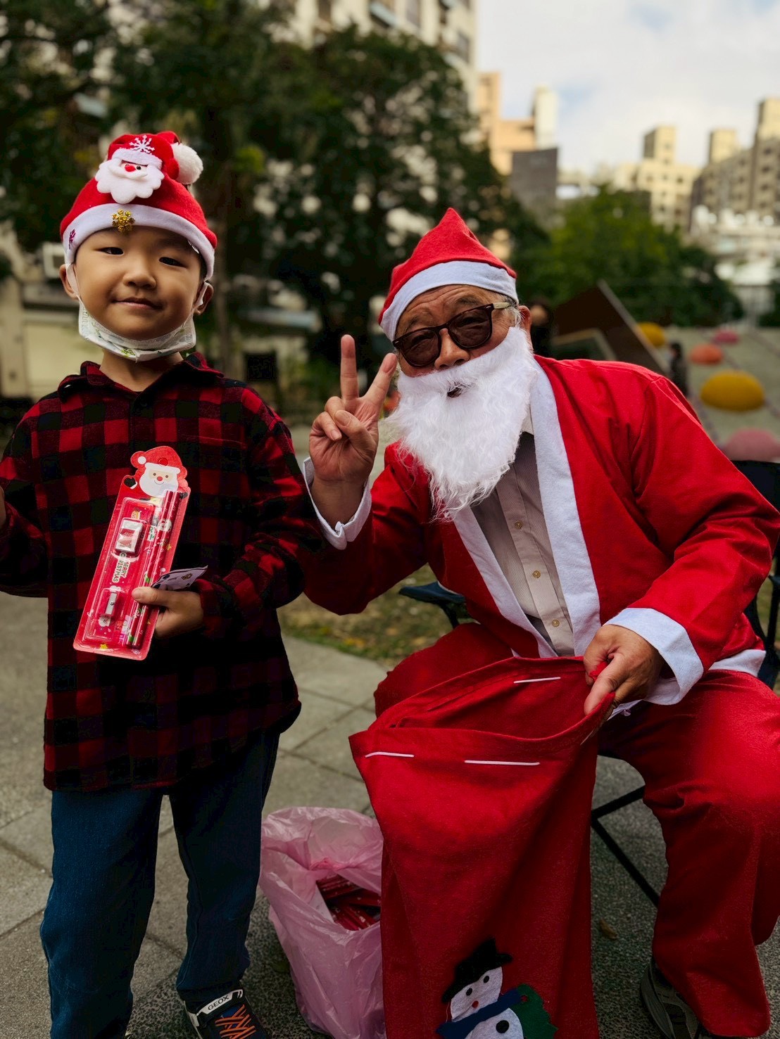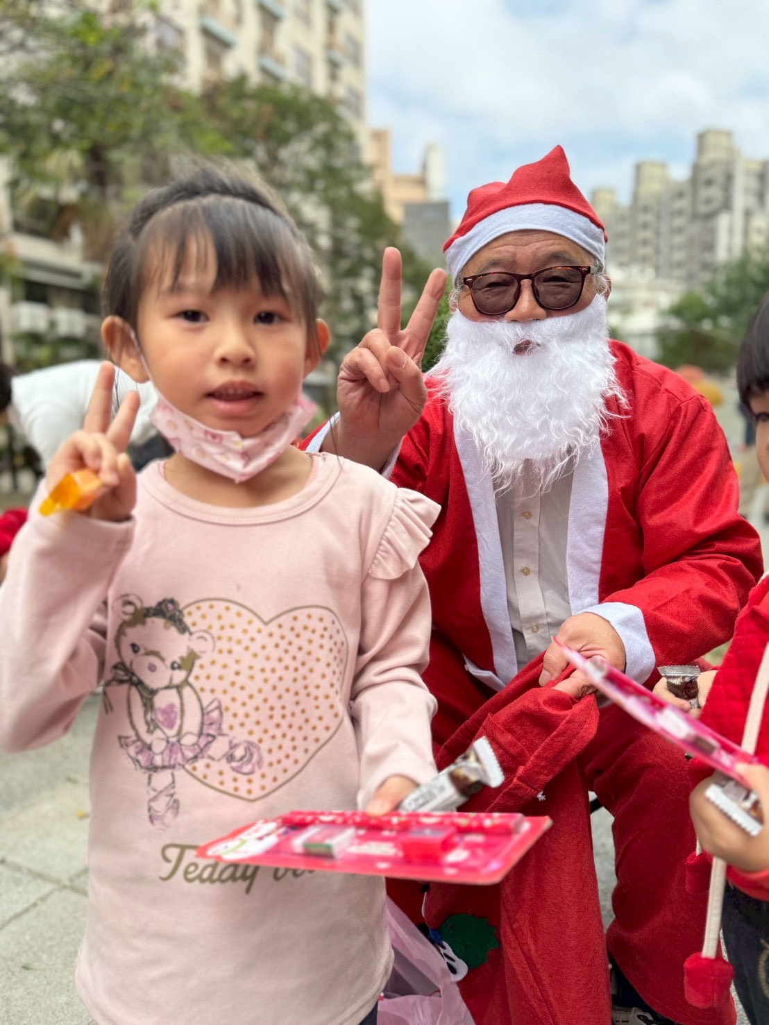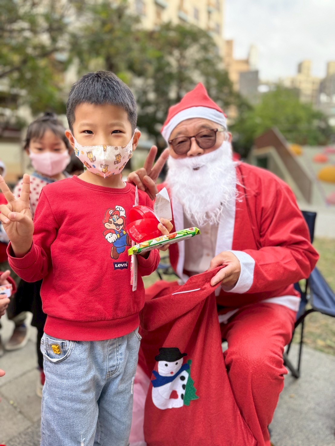 12/24 今天孩子們和綿羊班弟弟妹妹一起去社區報佳音,7-11的叔叔阿姨、學品的主任老師和和平公園的家長們,都開心為寶貝的表演喝采,感受愛與喜樂的聖誕節慶氛圍~。
