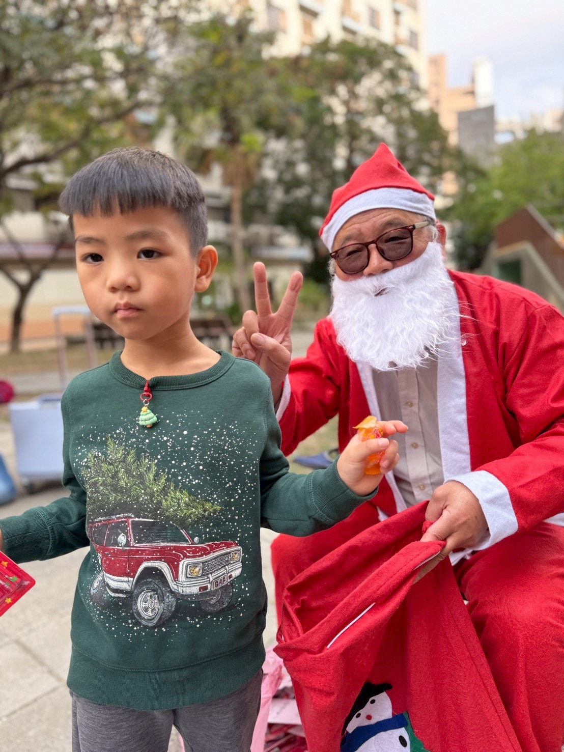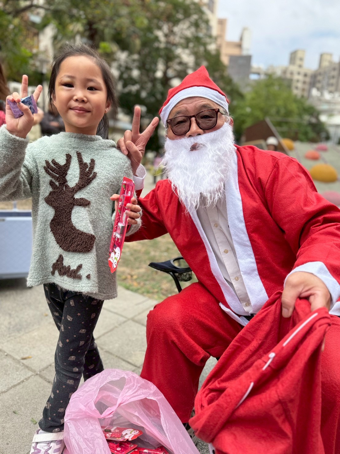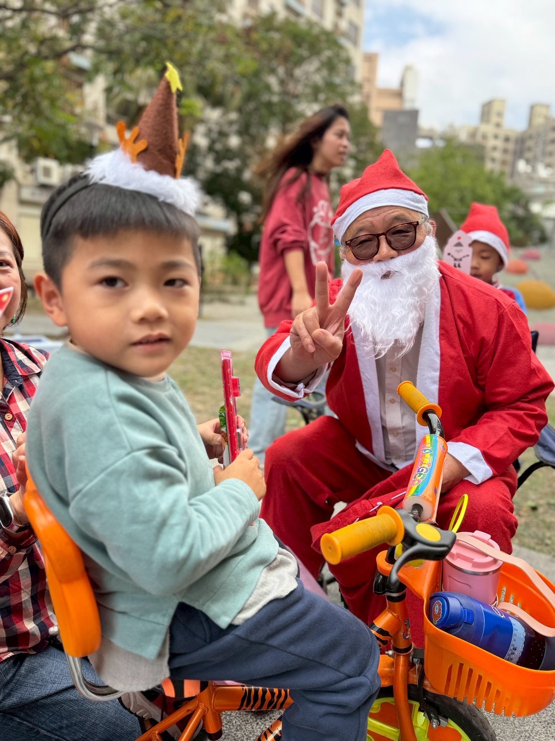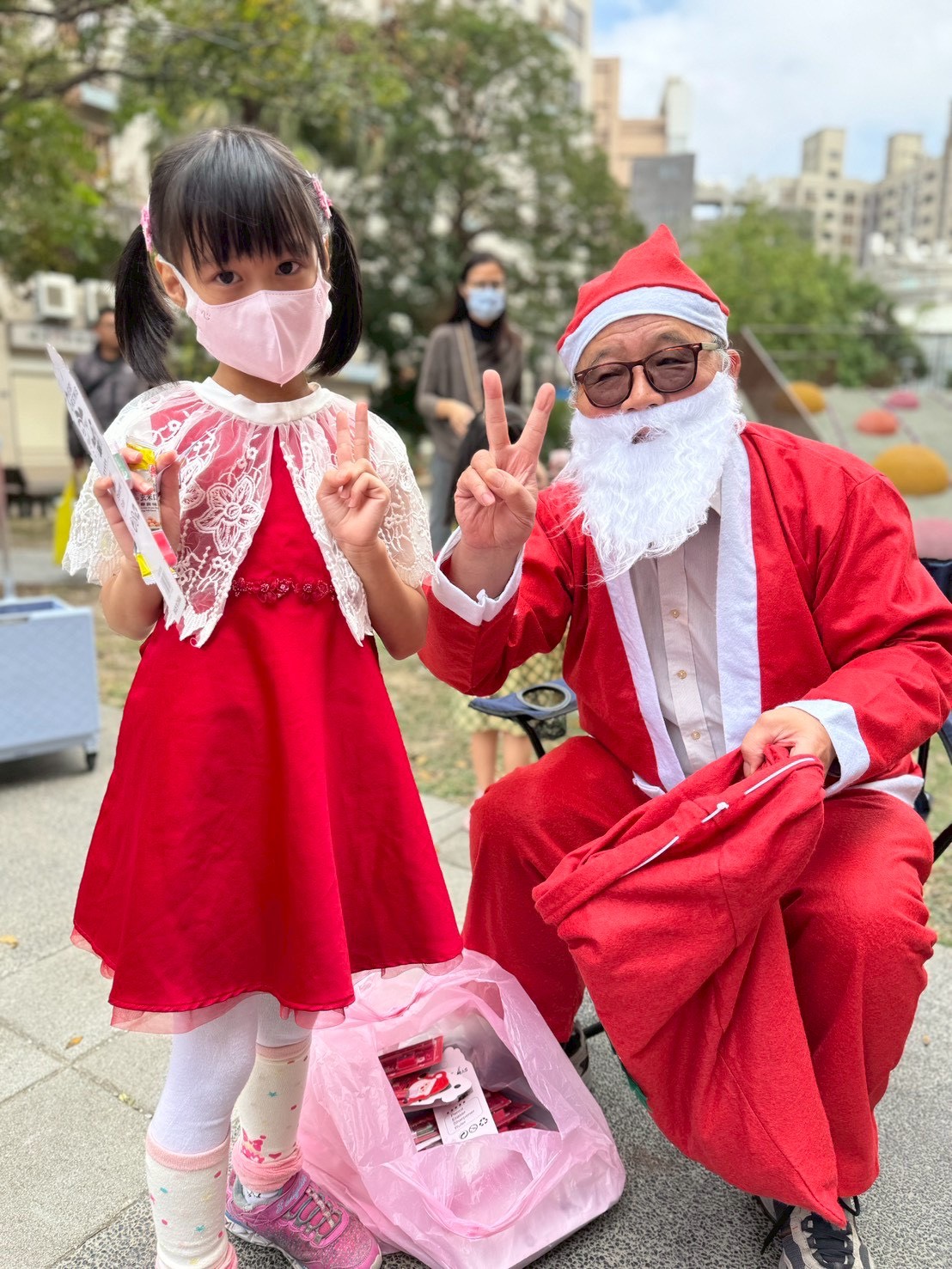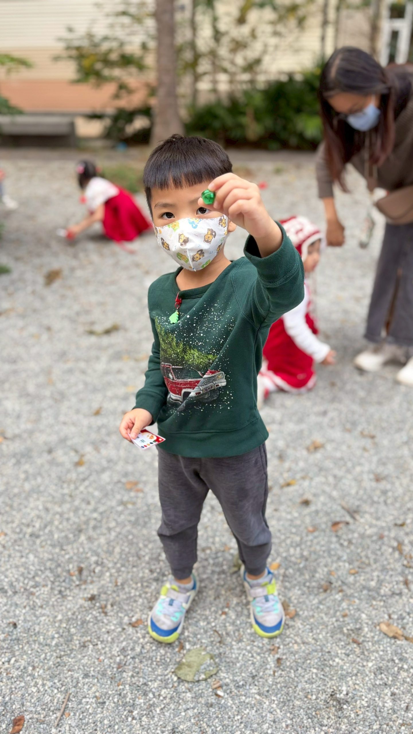 12/24 今天孩子們和綿羊班弟弟妹妹一起去社區報佳音,7-11的叔叔阿姨、學品的主任老師和和平公園的家長們,都開心為寶貝的表演喝采,感受愛與喜樂的聖誕節慶氛圍~。