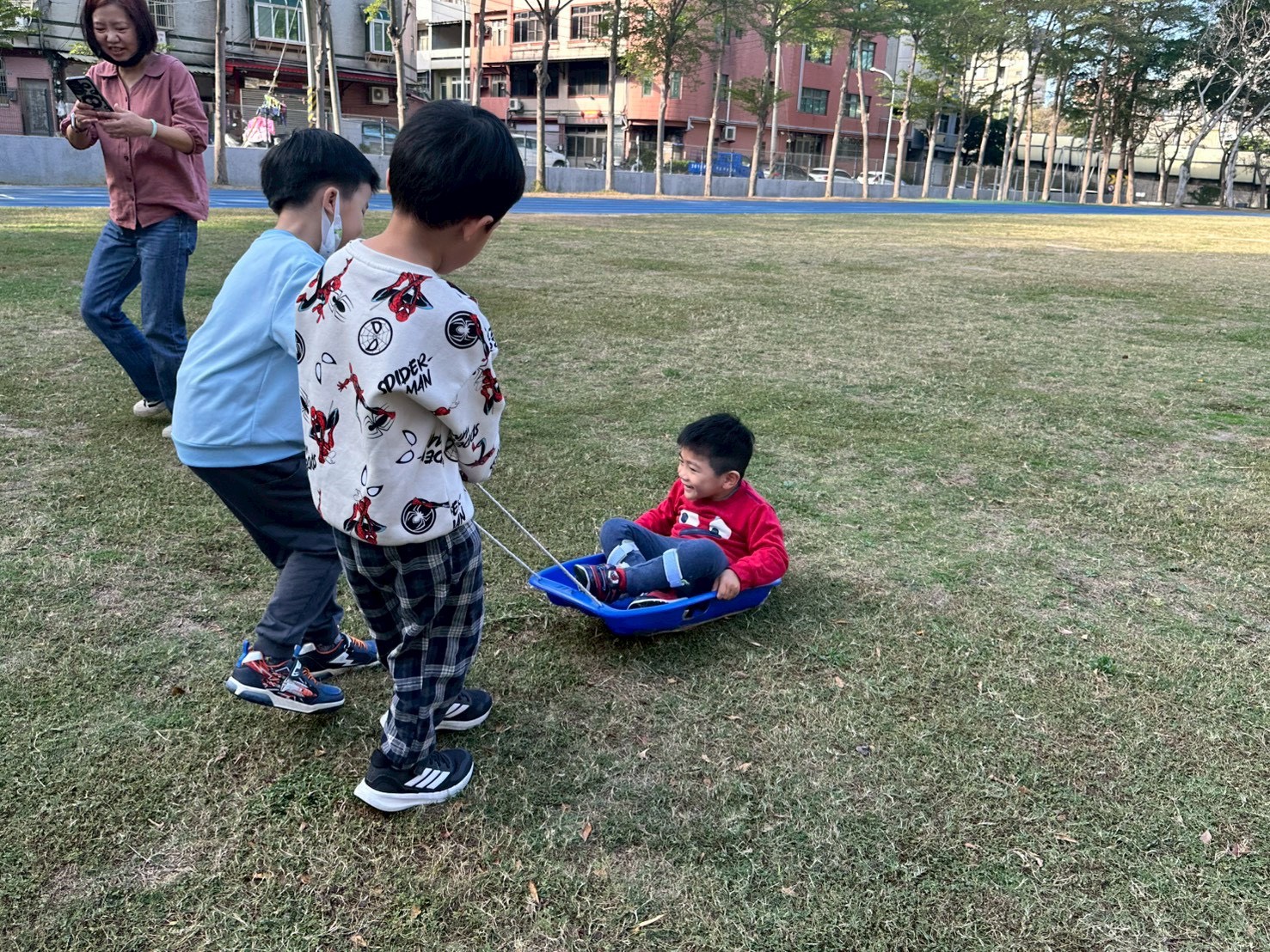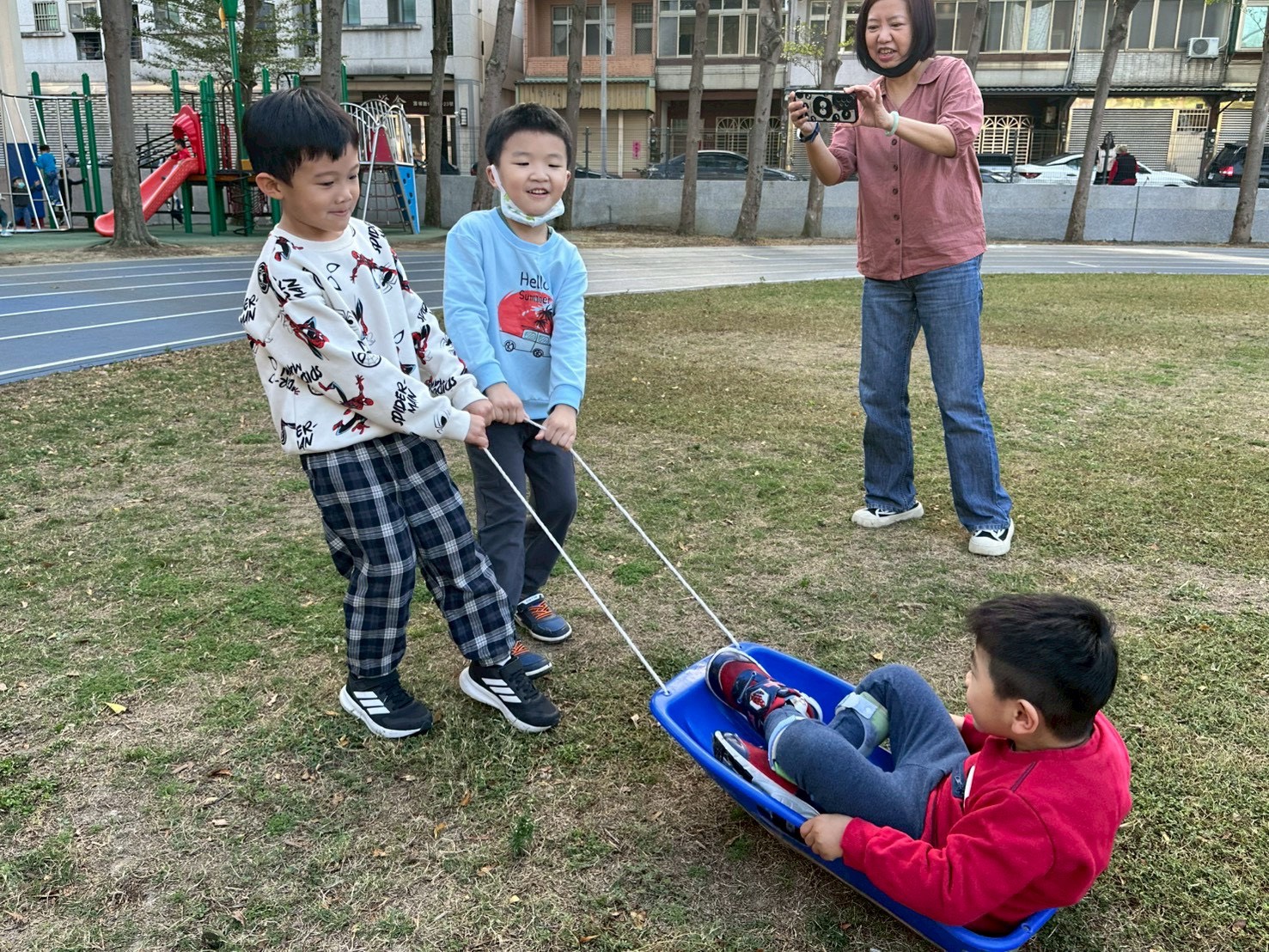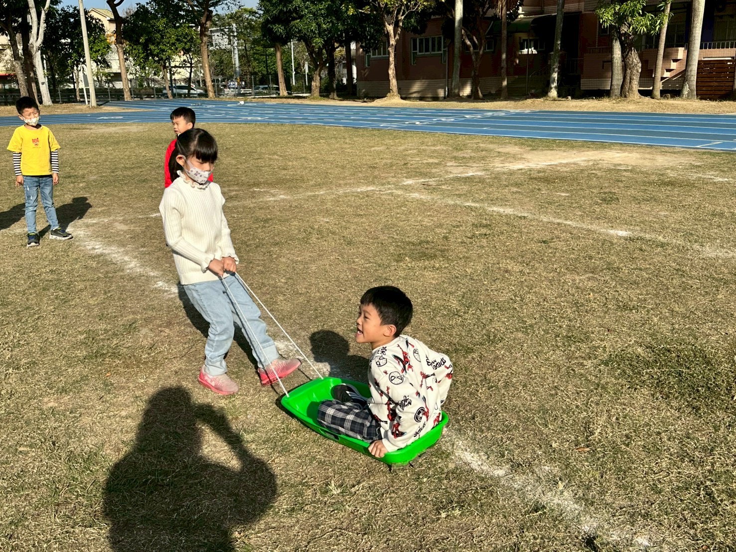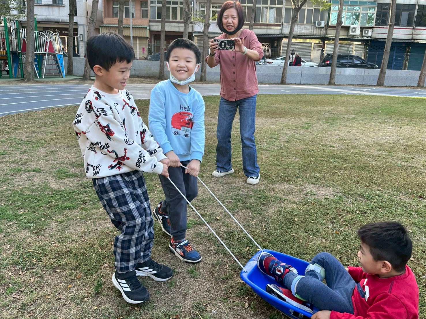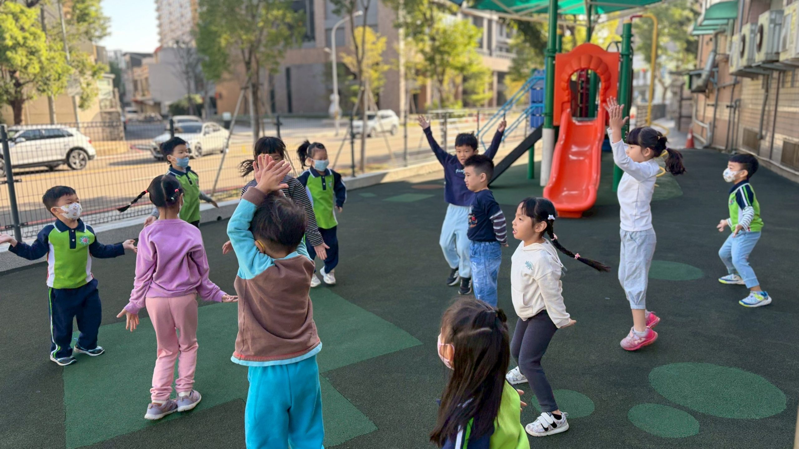 12/24 今天孩子們和綿羊班弟弟妹妹一起去社區報佳音,7-11的叔叔阿姨、學品的主任老師和和平公園的家長們,都開心為寶貝的表演喝采,感受愛與喜樂的聖誕節慶氛圍~。