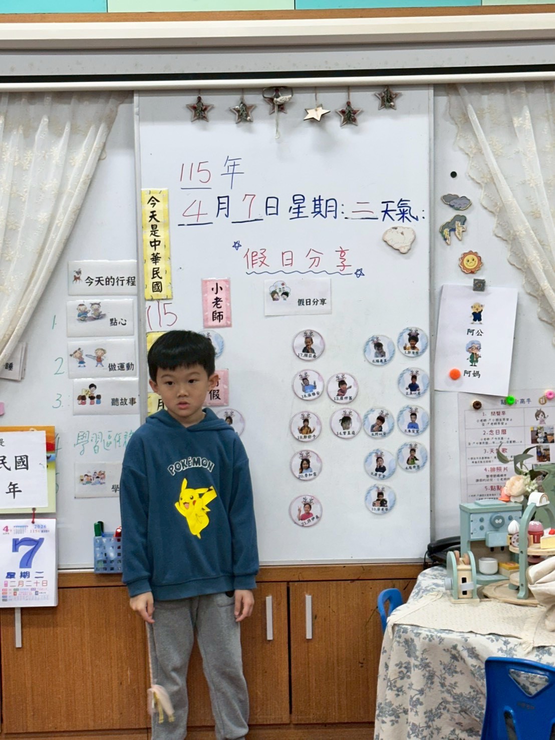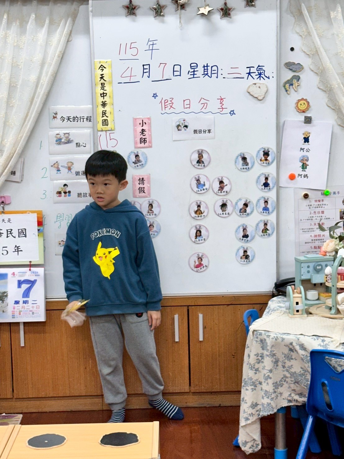 清明~想念與感恩 孩子夢想家 2026 年 4 月 9 日 4/7 延續上週的清明節,本週節氣小班長~清明,將從氣候、景緻、習俗…帶入生命教育的關懷。四月學習區任務,結合清明節過後,生氣盎然的春天意象,融入可愛的小昆蟲,一起走進春天的合奏曲~ 晨光活動 大肌肉活動 清明~想念的故事 學習區任務 學習區活動 4/8 晨光活動 大肌肉活動 故事~雲上的阿里 台語兒歌~虹 學習區活動 4/9 晨光活動 大肌肉活動 短片~認識台灣紫斑蝶(清明蝶) 作品分享 學習區活動 4/10 晨光活動 戶外散步與觀察 主題學習單~虹 學習區紀錄畫 114上