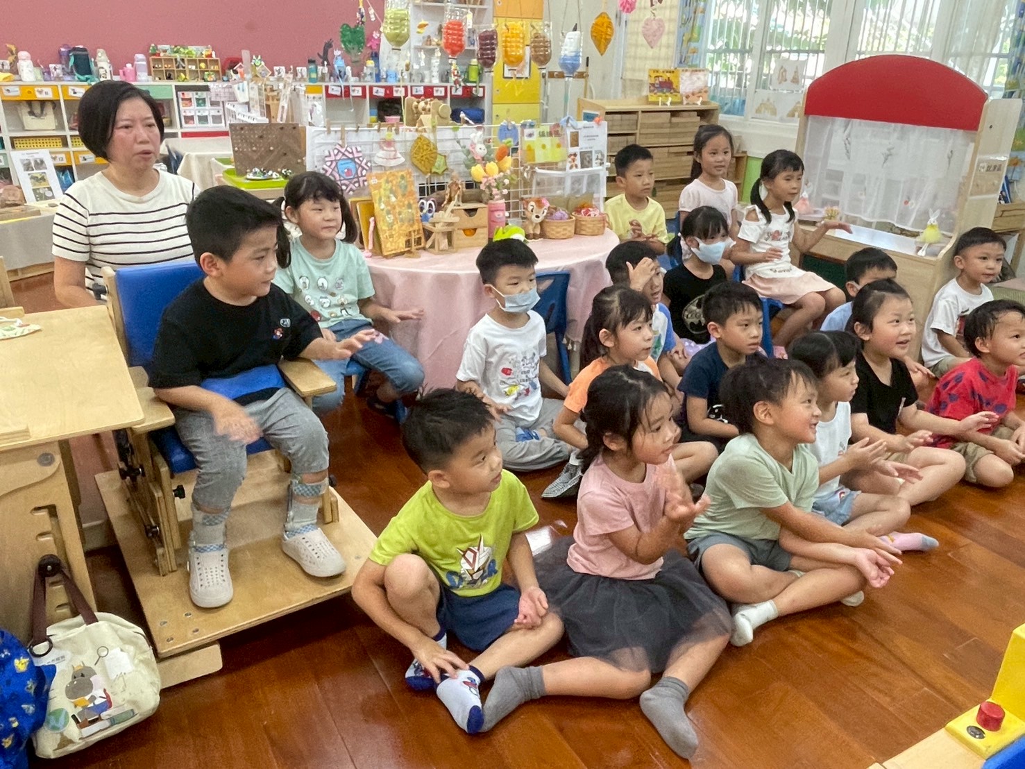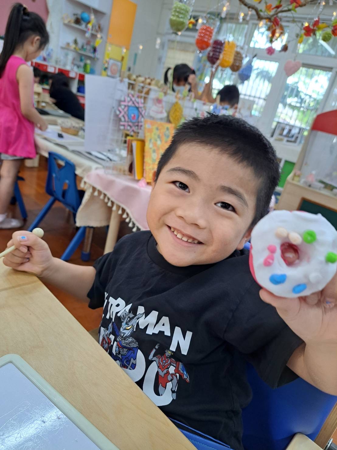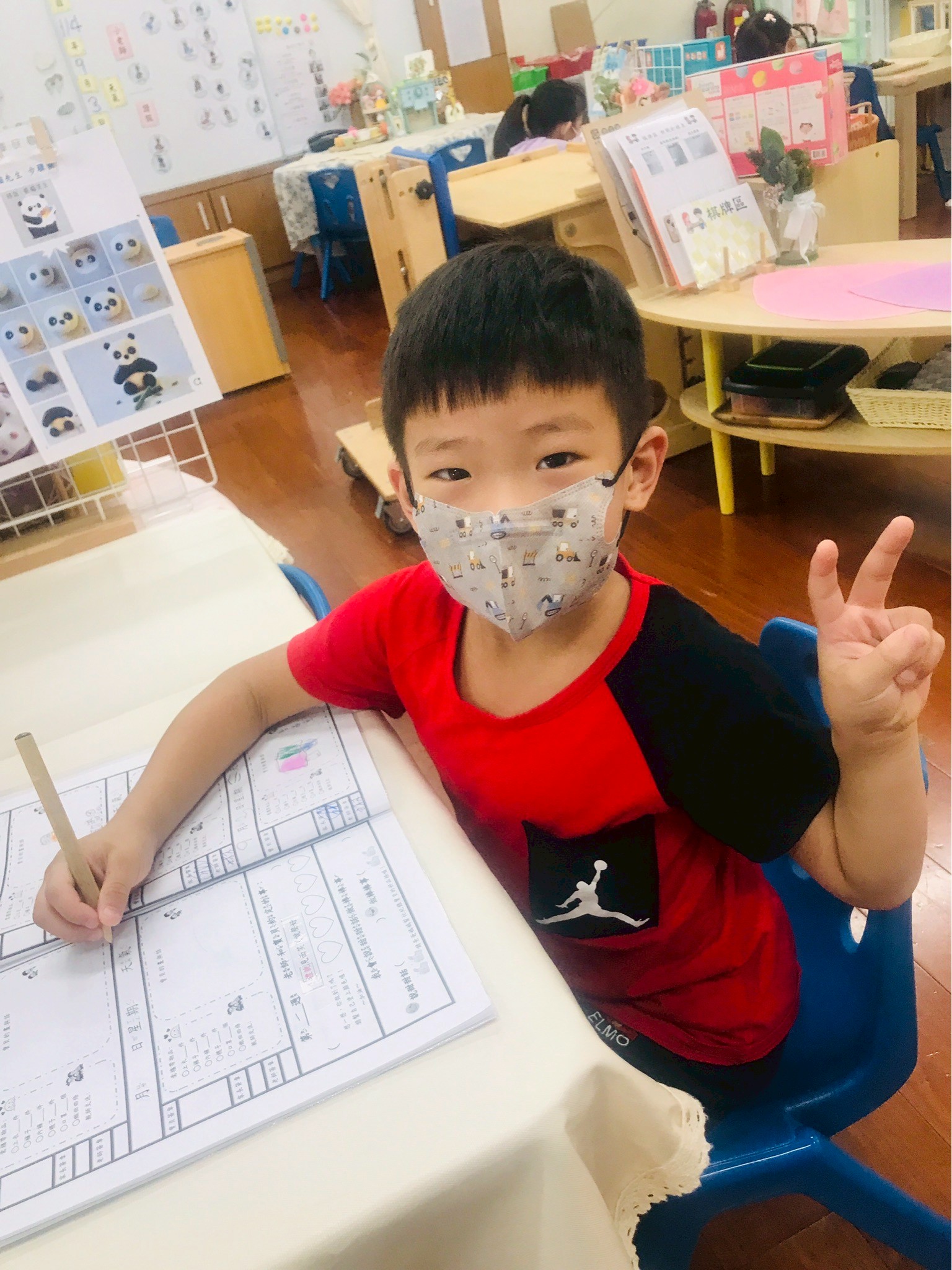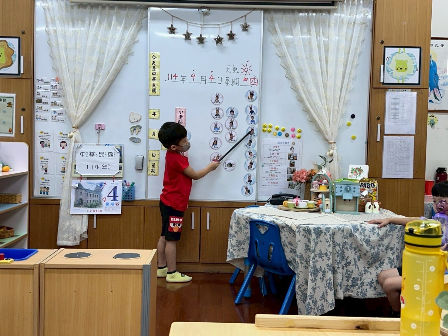 9/2 今天分享一本可愛的繪本<拜託,熊貓先生>,為這兩週的「禮貌」主題暖身,故事中的熊貓先生要分享甜甜圈,誰可以得到這些禮物呢?透過討論開始練習問答與思考,為本學期主題課程「我思 我詩 故我在~作伙來讀冊」揭開序幕囉!