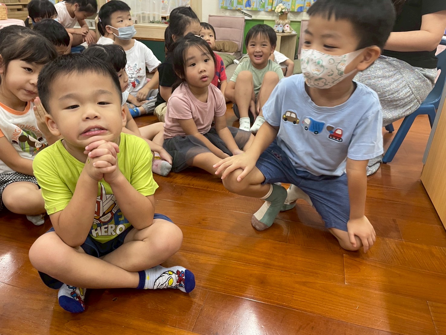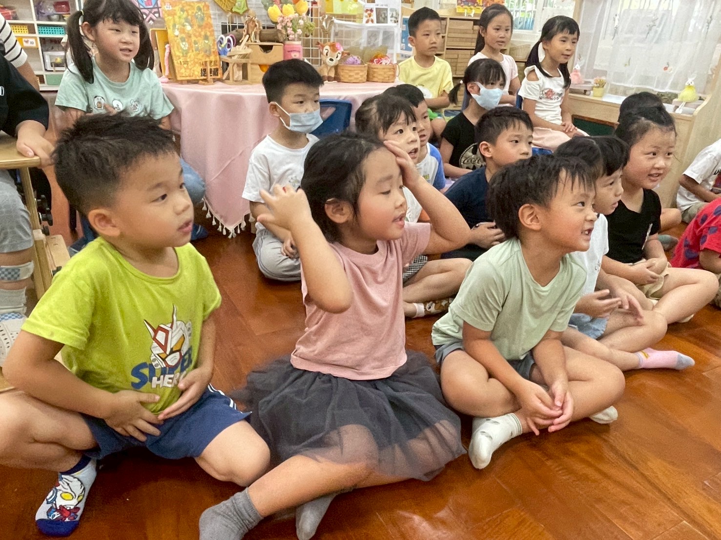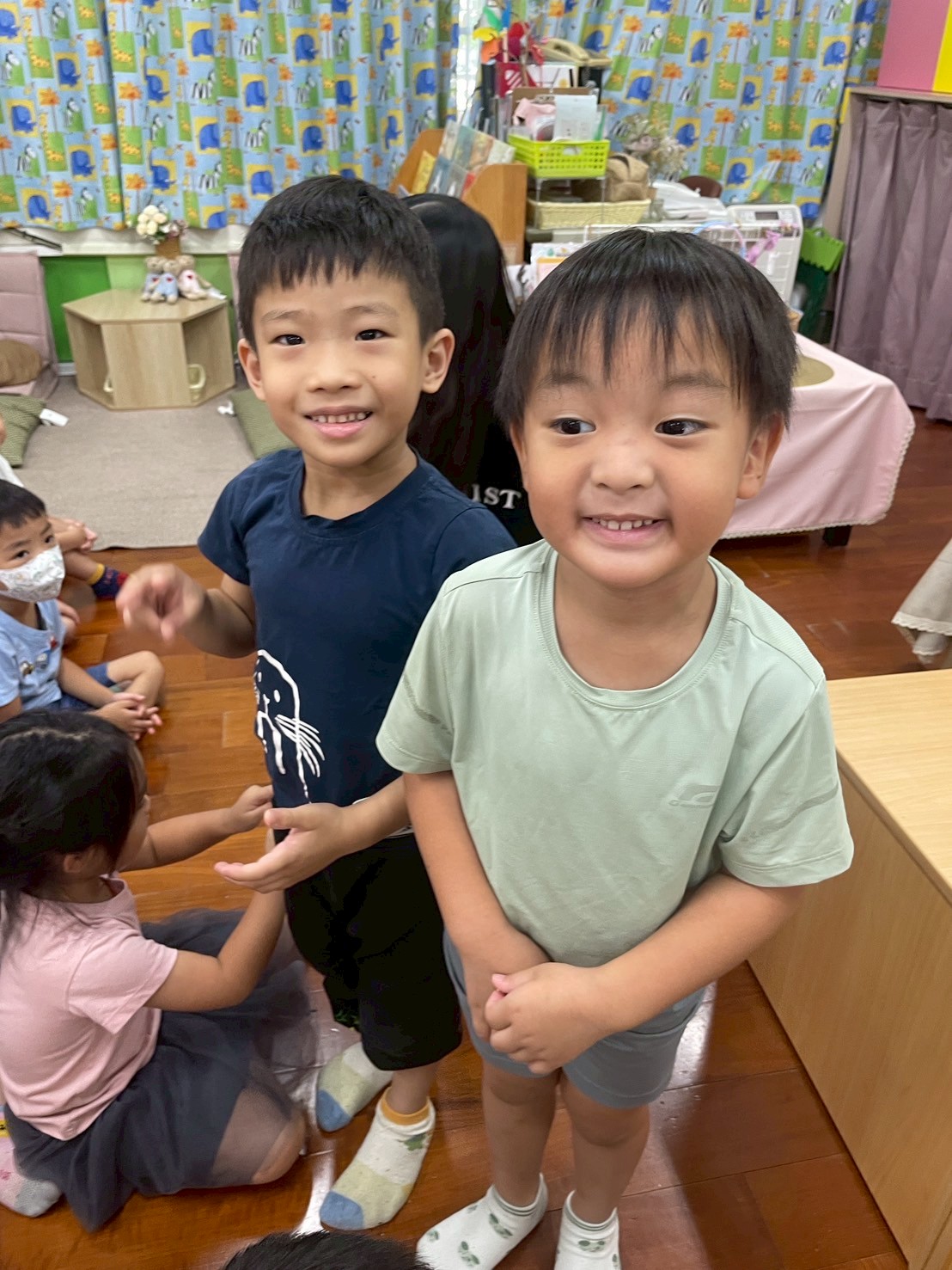 9/4 今天孩子們一起幫<禮貌歌 >編動作,簡單好記兼具活潑可愛的手勢,展現出對歌詞內容的認知,大家都很喜歡這首歌喔!