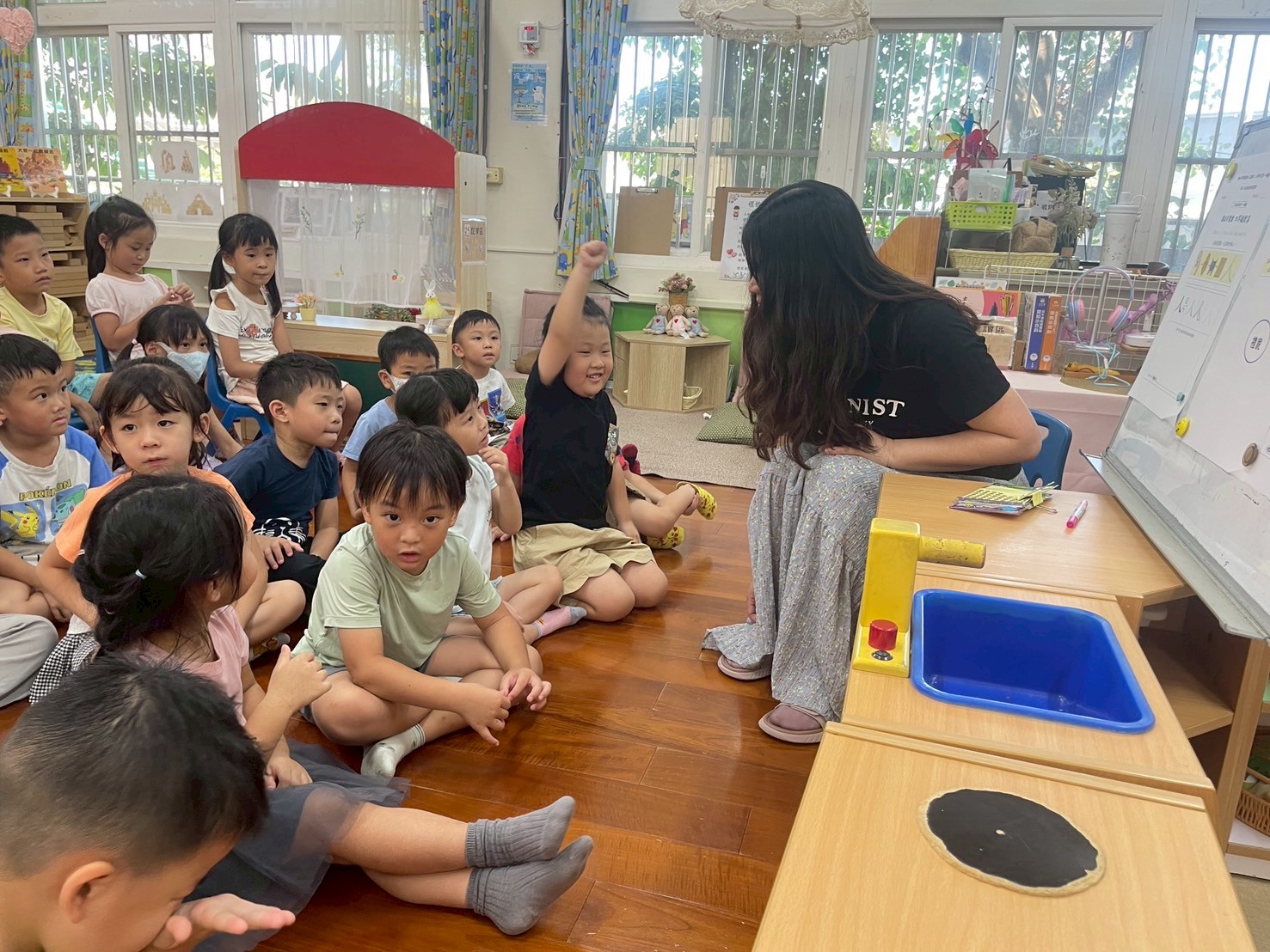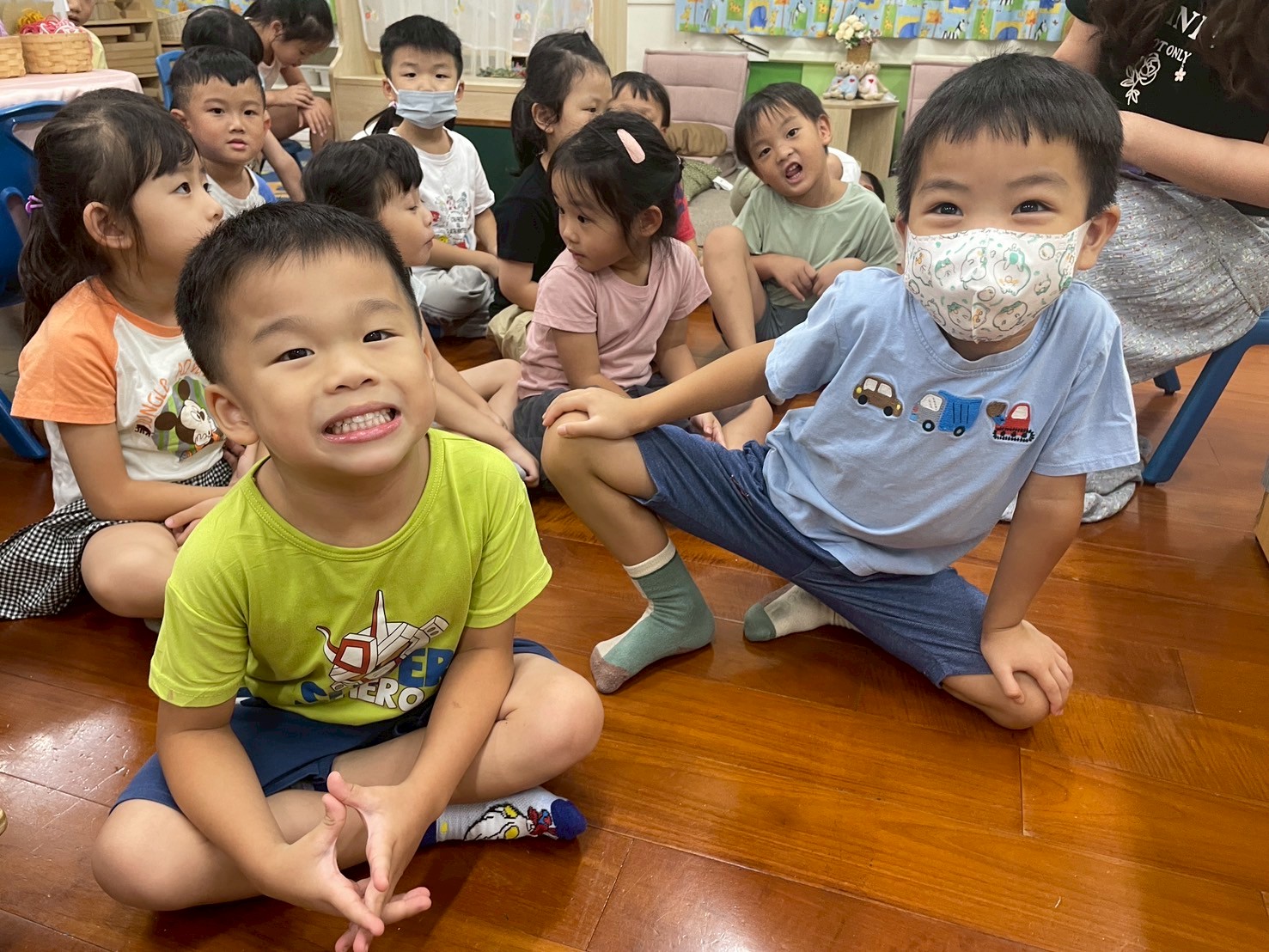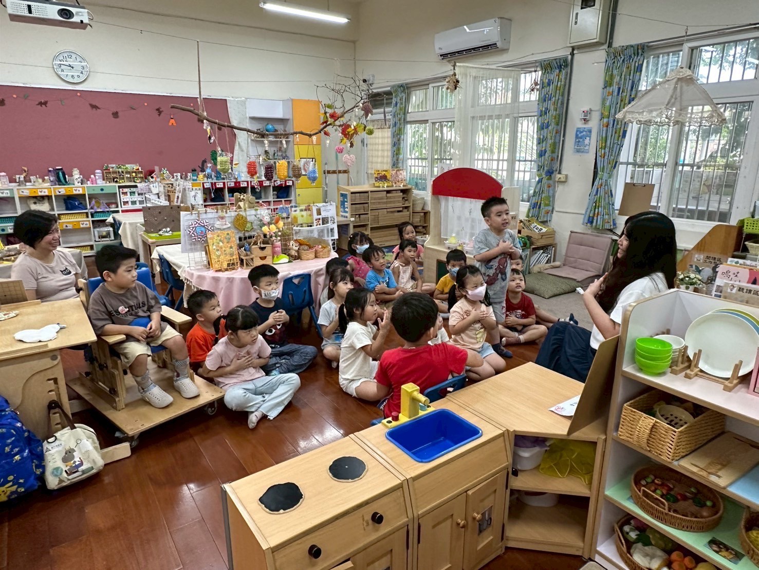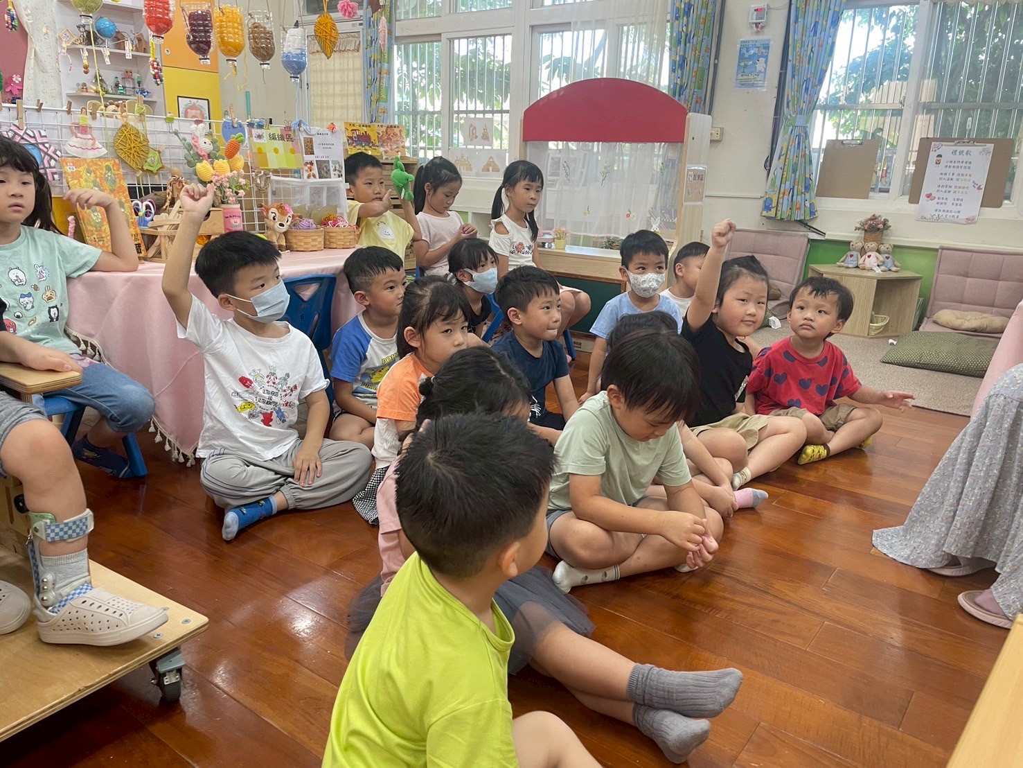 9/4 今天孩子們一起幫<禮貌歌 >編動作,簡單好記兼具活潑可愛的手勢,展現出對歌詞內容的認知,大家都很喜歡這首歌喔!